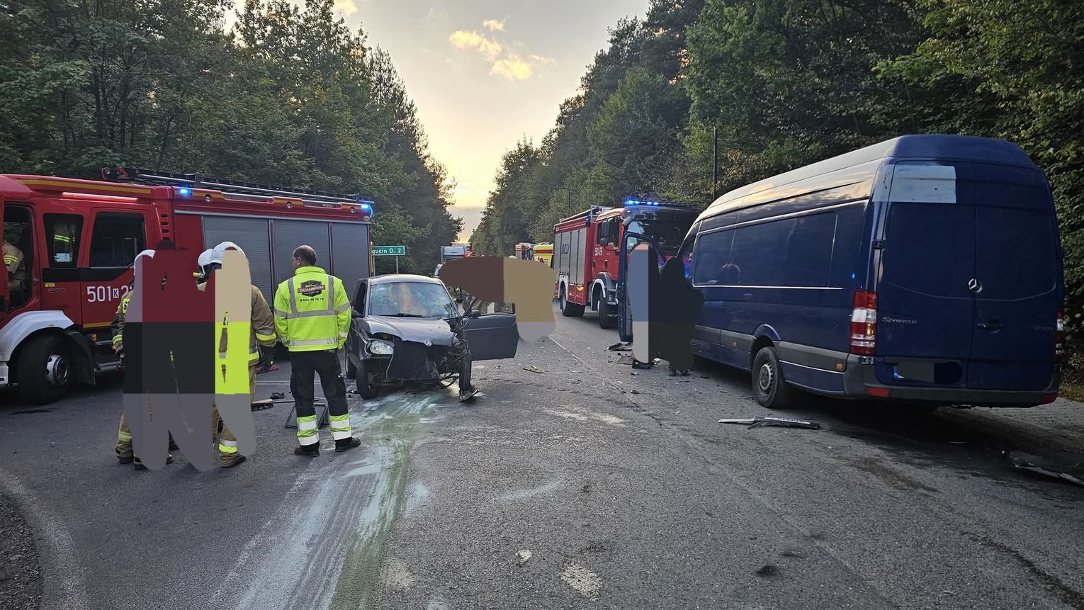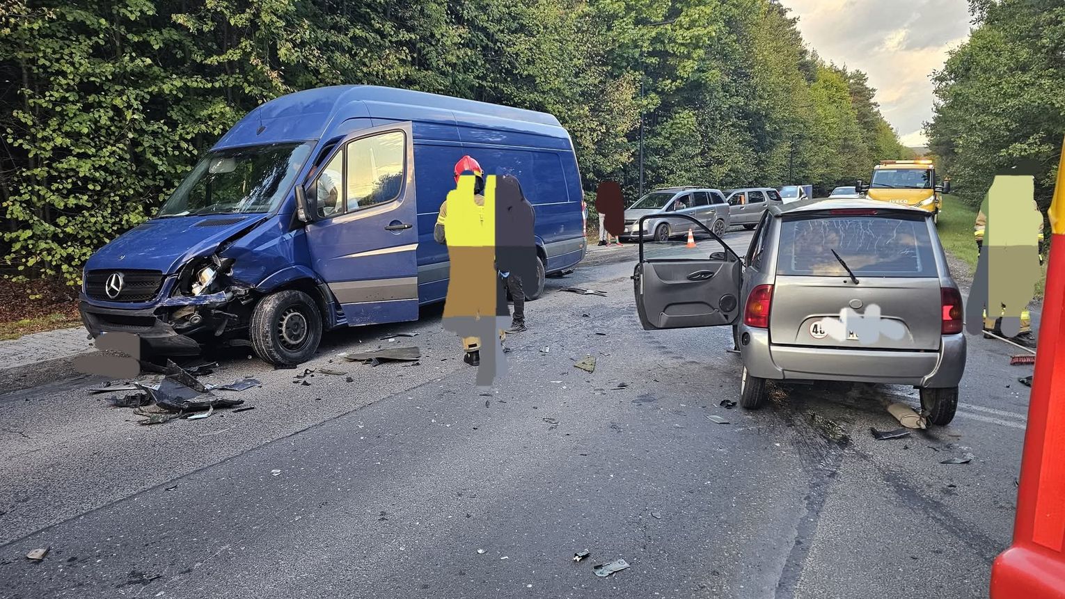 Do zdarzenia doszło w środowe popołudnie 17 września na drodze łączącej miejscowości Klucze i Jaroszowiec w powiecie olkuskim. Na skrzyżowaniu drogi prowadzącej do Bogucina zderzyły się samochód osobowy oraz bus dostawczy.