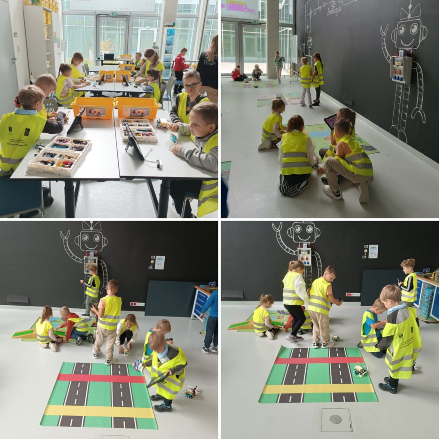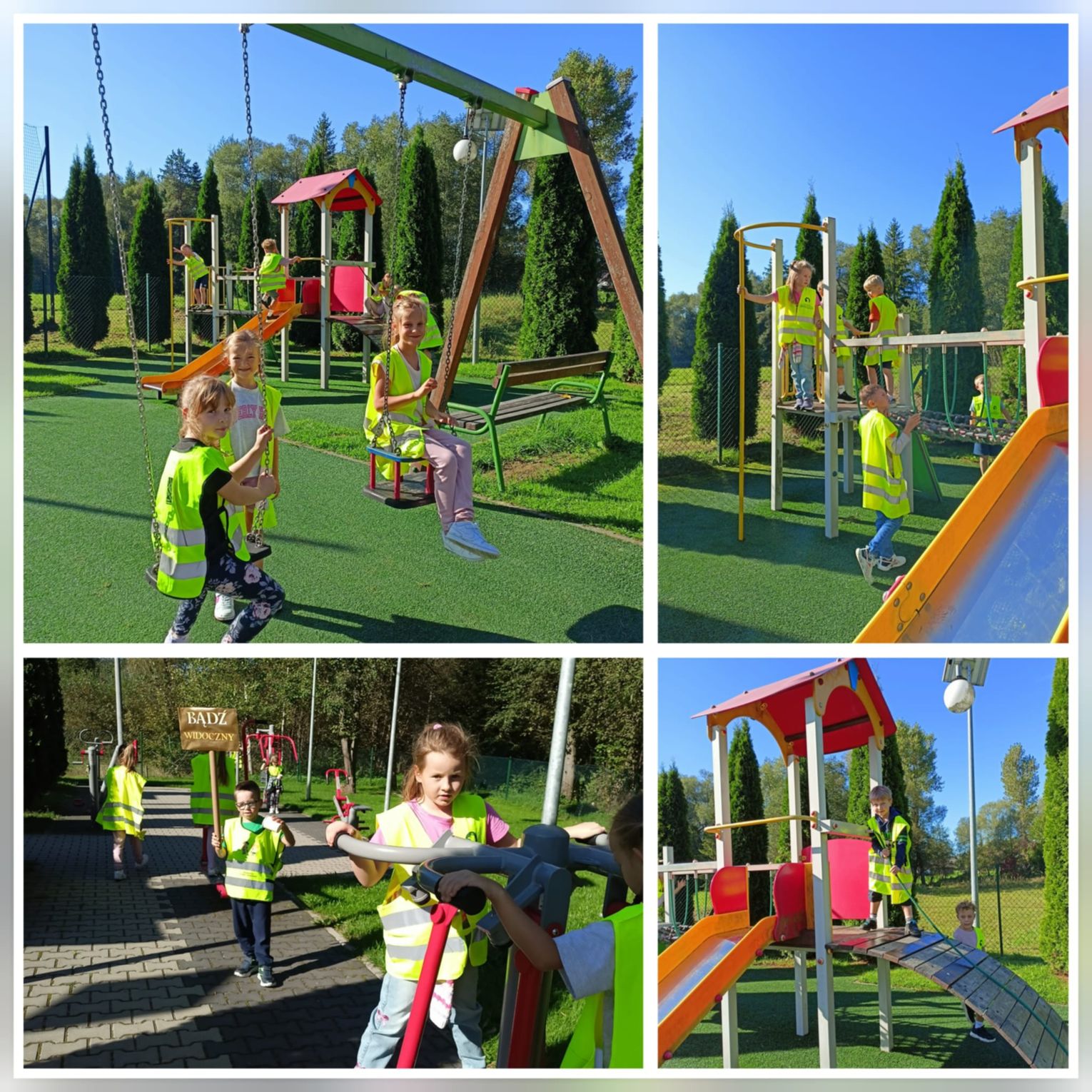 Centralnym punktem obchodów była gra terenowa po terenie szkoły. Zadaniem dzieci było odnalezienie ukrytych znaków drogowych. Ta dynamiczna aktywność nie tylko dostarczyła mnóstwo radości i zdrowej rywalizacji, ale przede wszystkim w naturalny sposób utrwaliła wiedzę o przepisach ruchu drogowego – kluczową na początku roku szkolnego.