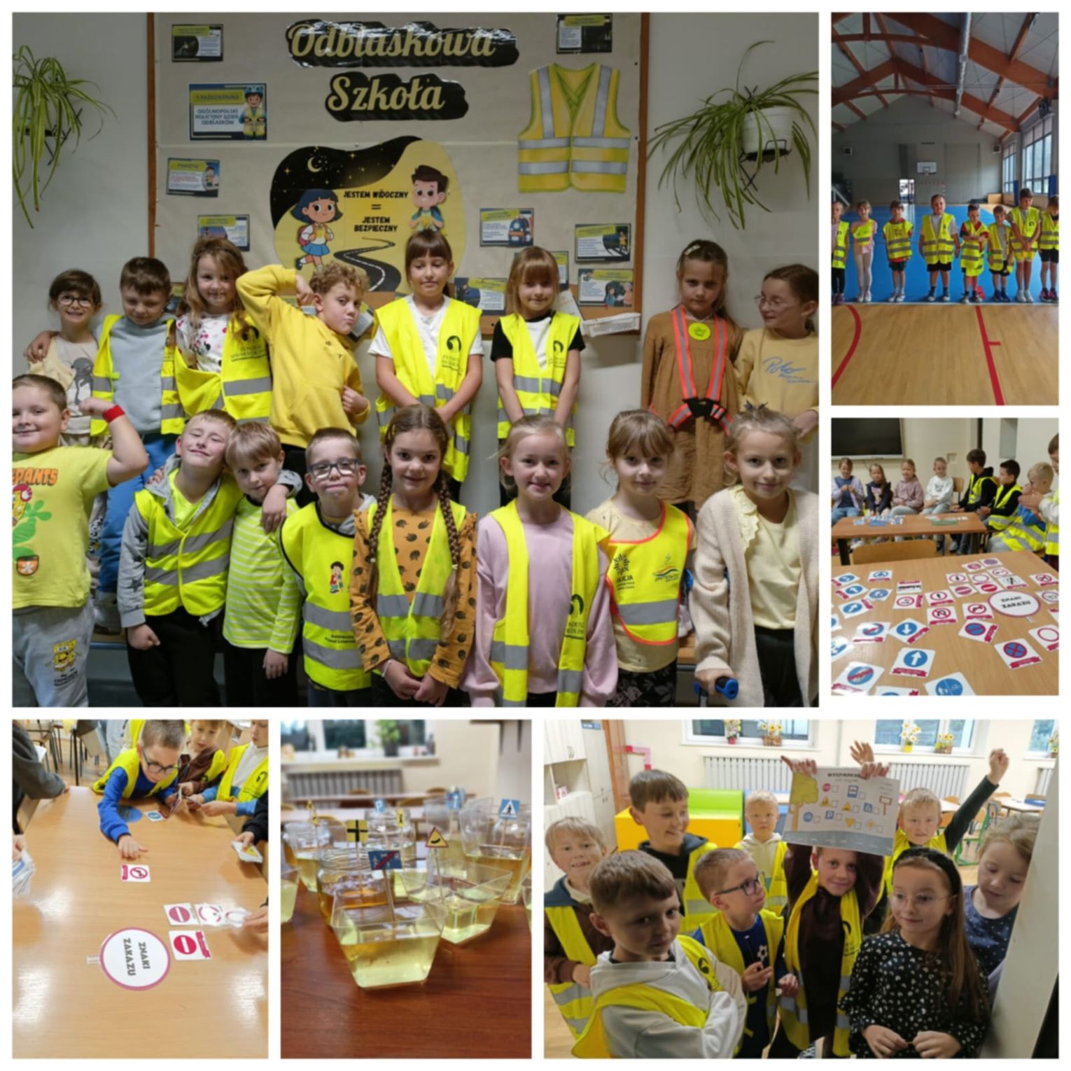 Wyjątkowo innowacyjnym elementem okazał się „odblaskowy WF” dla najmłodszych, czyli uczniów klasy pierwszej. Podczas zajęć sportowych wykorzystano elementy odblaskowe do ćwiczeń, które miały na celu rozwijanie refleksu i koordynacji ruchowej – umiejętności niezbędnych do szybkiej i bezpiecznej reakcji w sytuacjach drogowych.