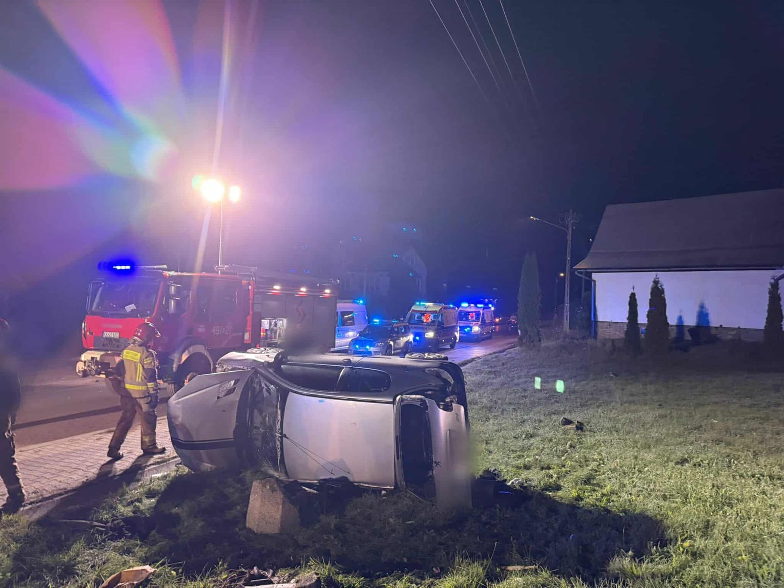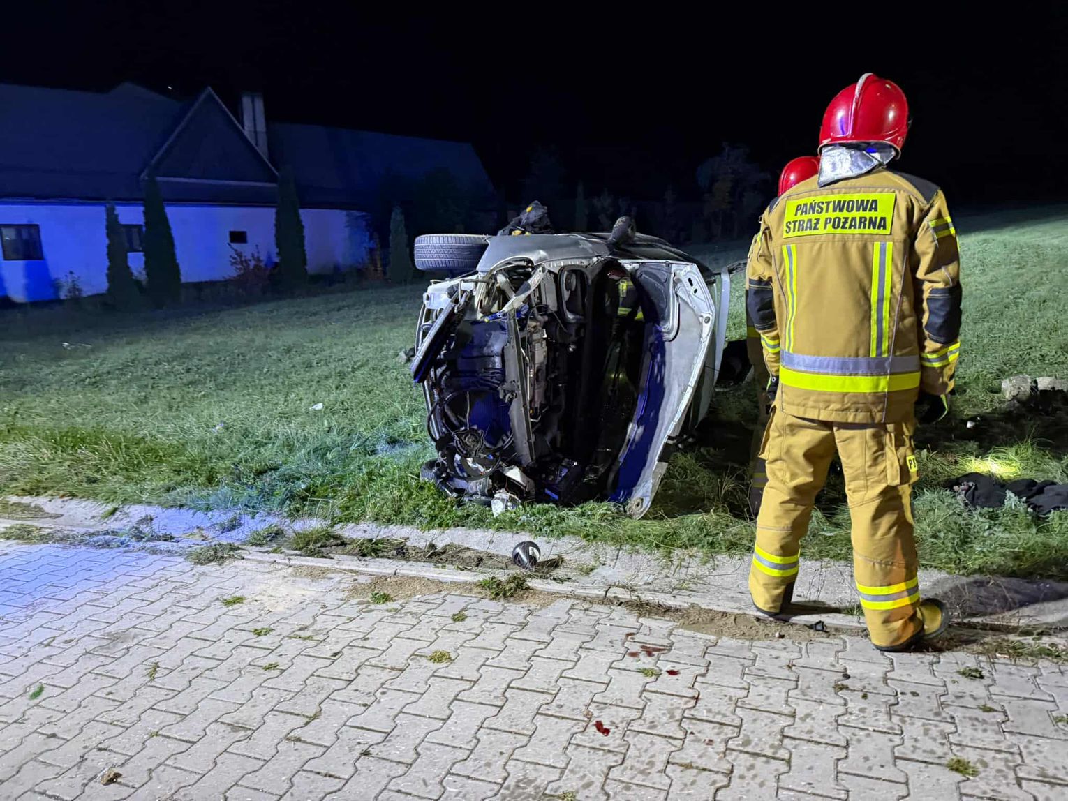 Zgłoszenie o wypadku wpłynęło do służb ratunkowych o godzinie 23:58. Zdarzenie, które miało miejsce niemalże w samym środku nocy, postawiło na nogi lokalne jednostki OSP oraz JRG z Nowego Targu. Nagłe i niekontrolowane dachowanie samochodu osobowego zawsze niesie ze sobą wysokie ryzyko poważnych obrażeń, dlatego priorytetem była szybka interwencja i zabezpieczenie poszkodowanych.