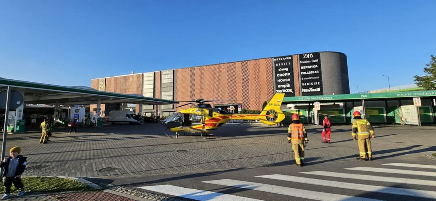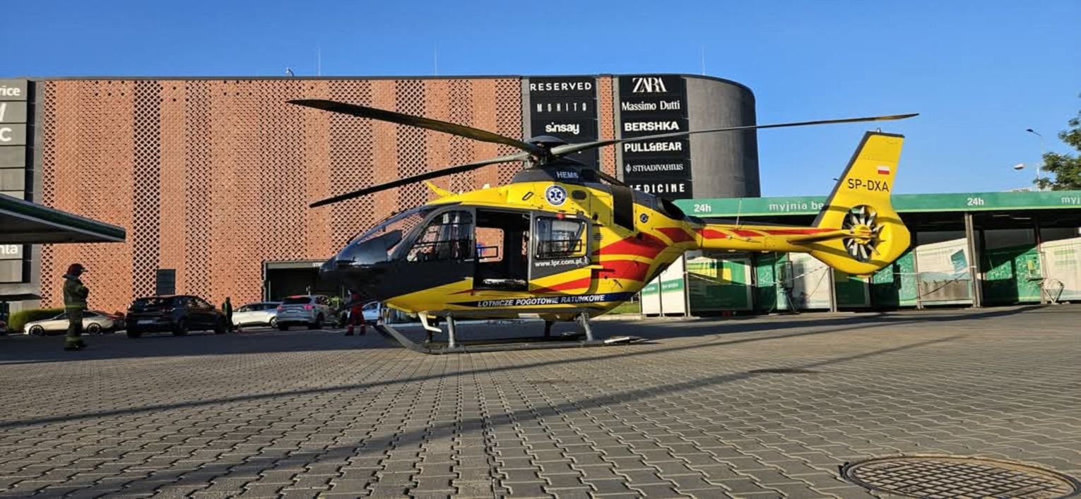 Najpoważniejszym elementem akcji ratunkowej było włączenie do działań Lotniczego Pogotowia Ratunkowego. Śmigłowiec LPR wylądował w rejonie zdarzenia, przy pobliskiej stacji paliw, aby zapewnić poszkodowanemu motocykliście jak najszybszą i najbardziej zaawansowaną pomoc medyczną oraz ewentualny transport do szpitala.