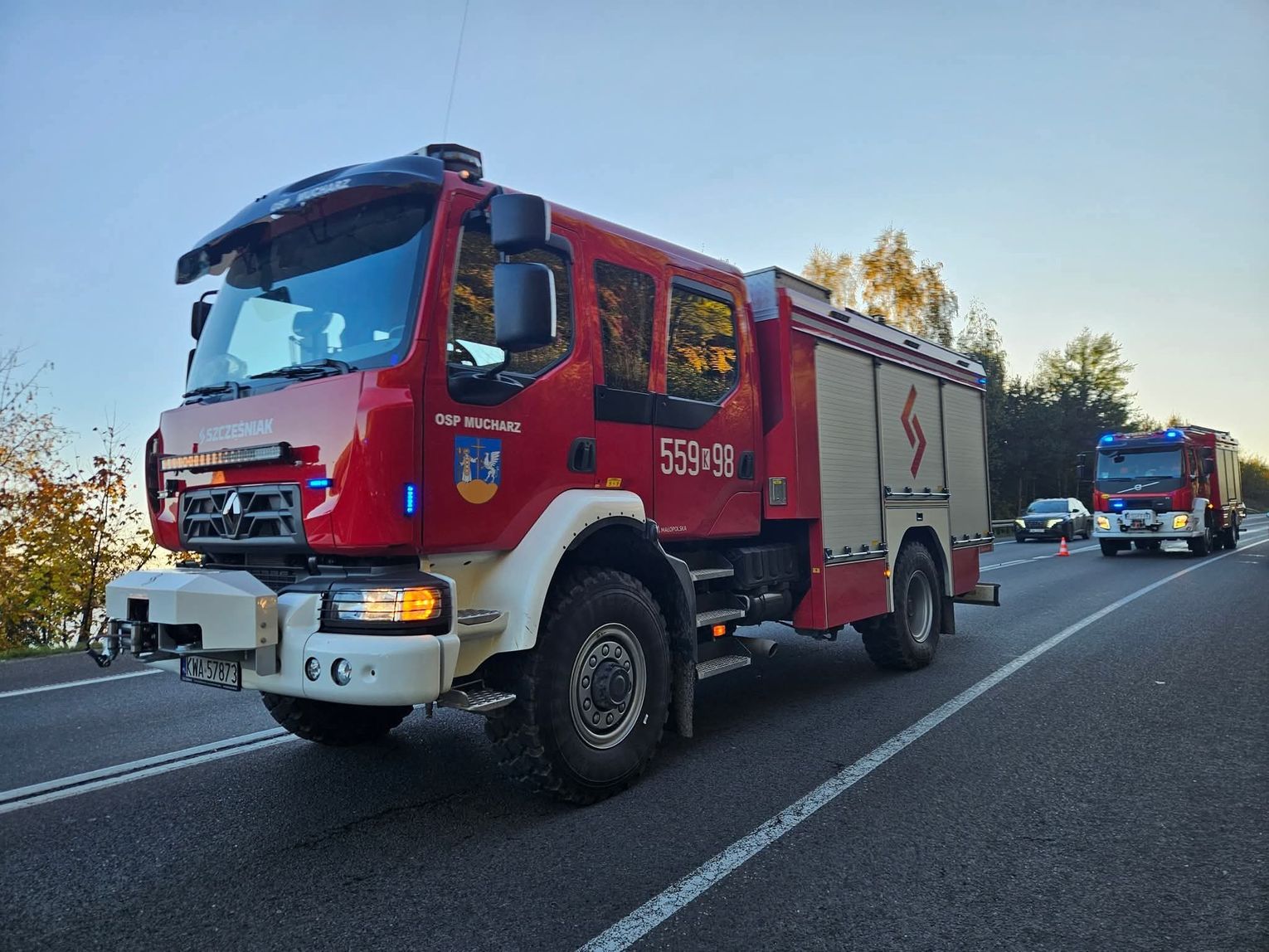 W akcji wzięły udział zastępy straży pożarnej z Ochotniczej Straży Pożarnej w Mucharzu, a także Jednostek Ratowniczo -Gaśniczych w Wadowicach i Suchej Beskidzkiej, a także Zespół Ratownictwa Medycznego oraz funkcjonariusze Policji, którzy ustalali okoliczności i przyczyny zdarzenia. Rowerzysta został przetransportowany do szpitala.