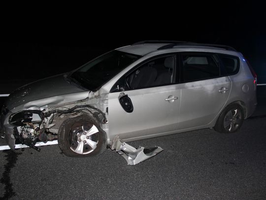 Na miejscu zdarzenia funkcjonariusze zastali samochód marki Hyundai unieruchomiony na środku jezdni, z widocznymi uszkodzeniami i włączonymi światłami awaryjnymi. W bezpośrednim sąsiedztwie pojazdu zauważono mężczyznę, który na widok zbliżającego się radiowozu podjął próbę ucieczki, oddalając się w kierunku pobliskiego lasu. Po krótkim pościgu został on jednak szybko zatrzymany przez funkcjonariuszy.