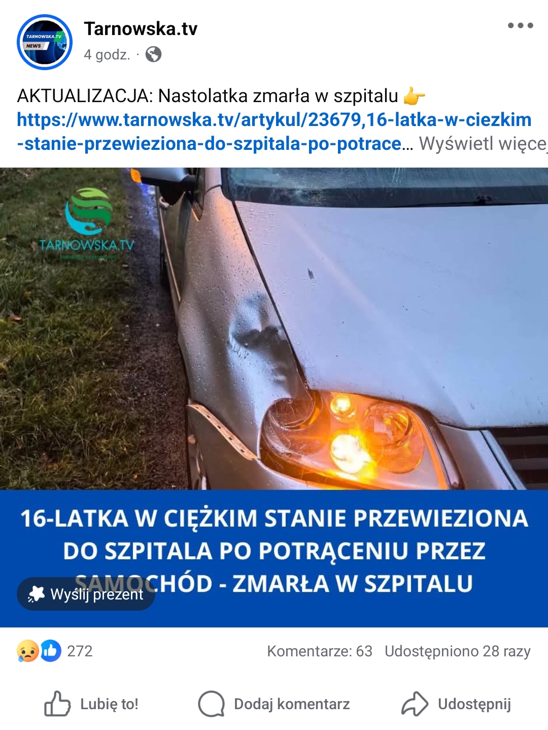 Niestety, obrażenia wewnętrzne i zewnętrzne, których doznała nastolatka, okazały się zbyt rozległe. Mimo zaangażowania i starań personelu medycznego, nastolatka zmarła w szpitalu. Ta smutna wiadomość pogłębia poczucie straty i stawia pytania o bezpieczeństwo na lokalnych drogach.