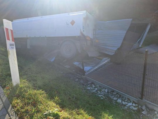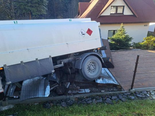 Ciężarówka wypadła z drogi i staranowała samochód w garażu