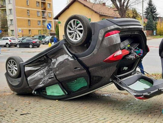 Osobówka wylądowała na dachu