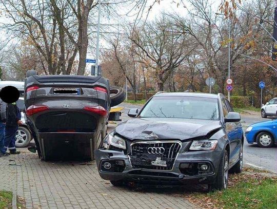 Do kolizji, po której jeden z samochodów przewrócił się na dach, doszło na ruchliwym skrzyżowaniu w centrum miasta. W dachującym pojeździe podróżowały trzy osoby. Na szczęście, dzięki szybkiej reakcji i prawdopodobnie sprzyjającym okolicznościom, cała trójka zdołała opuścić wrak o własnych siłach jeszcze przed przybyciem służb ratunkowych.