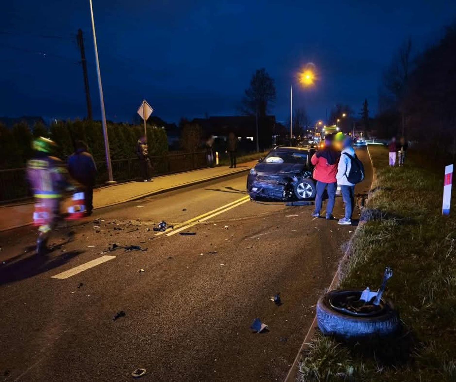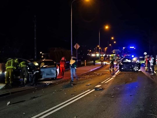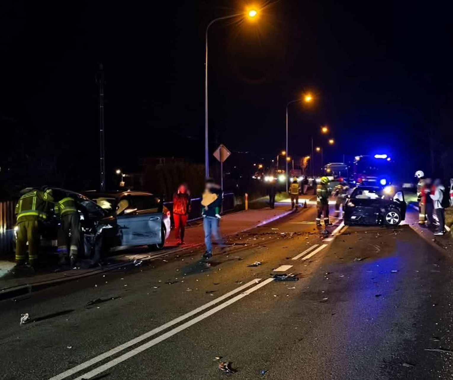 Siła uderzenia była na tyle duża, że elementy pojazdów znajdowały się na dużym obszarze drogi wojewódzkiej. Jeden z pojazdów wylądował na poboczu. Na całe szczęście w pobliżu nie było przechodniów. Strażacy zabezpieczyli miejsce zdarzenia, a poszkodowani trafili pod opiekę ratowników medycznych. Nie ma jednak dokładnych informacji na temat stanu ich zdrowia.