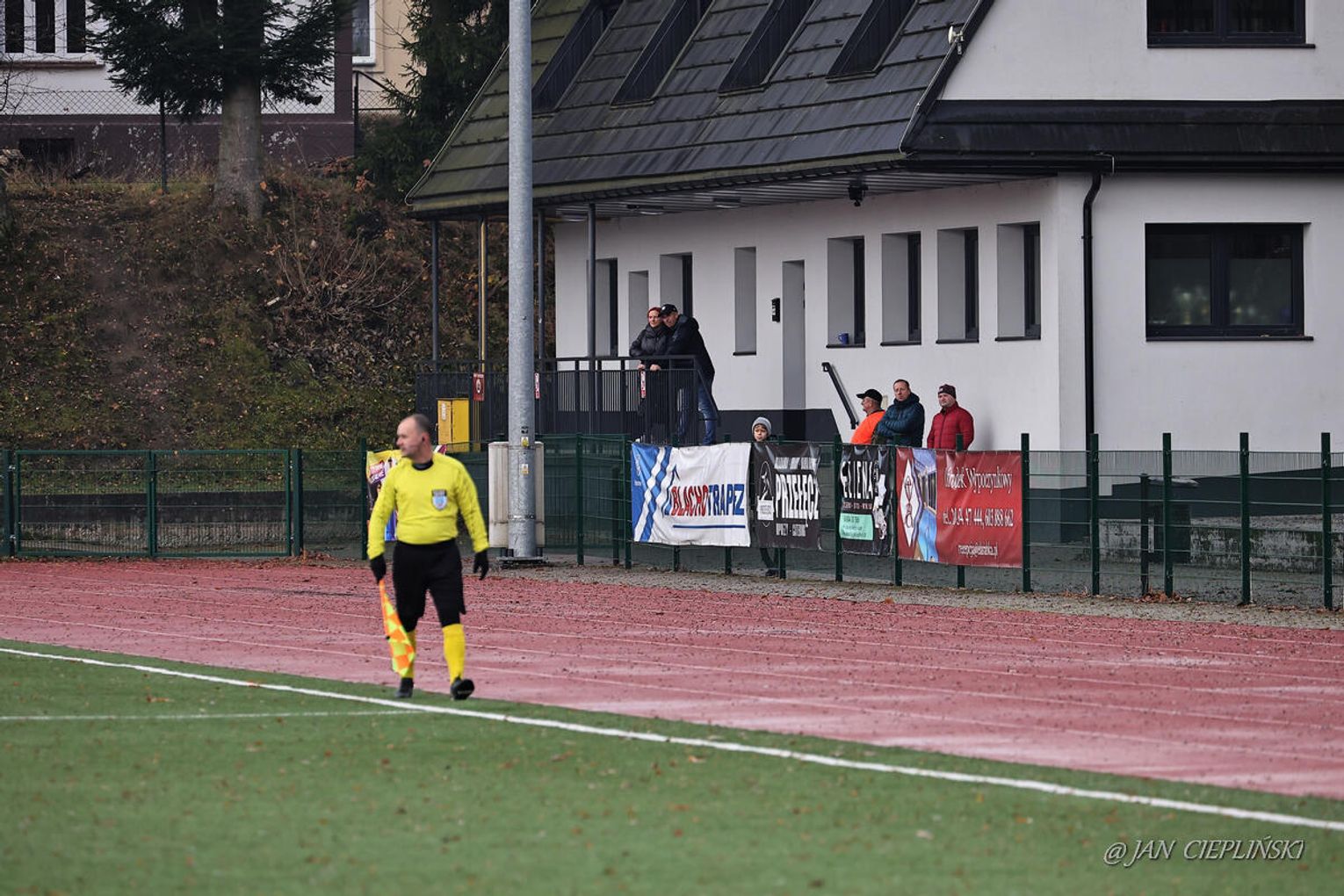 Demony rundy jesiennej pojawiły się na początku drugiej części spotkania. Piłkarze Gorców Kamienica rozpoczęły bardzo aktywnie i raz po raz groźnie atakowali, a co najważniejsze dla nich strzelili kontaktowego gola. Wybitą piłkę mocno uderzył jeden z graczy gości, zdobywając bramkę, po której sam był zdziwiony.