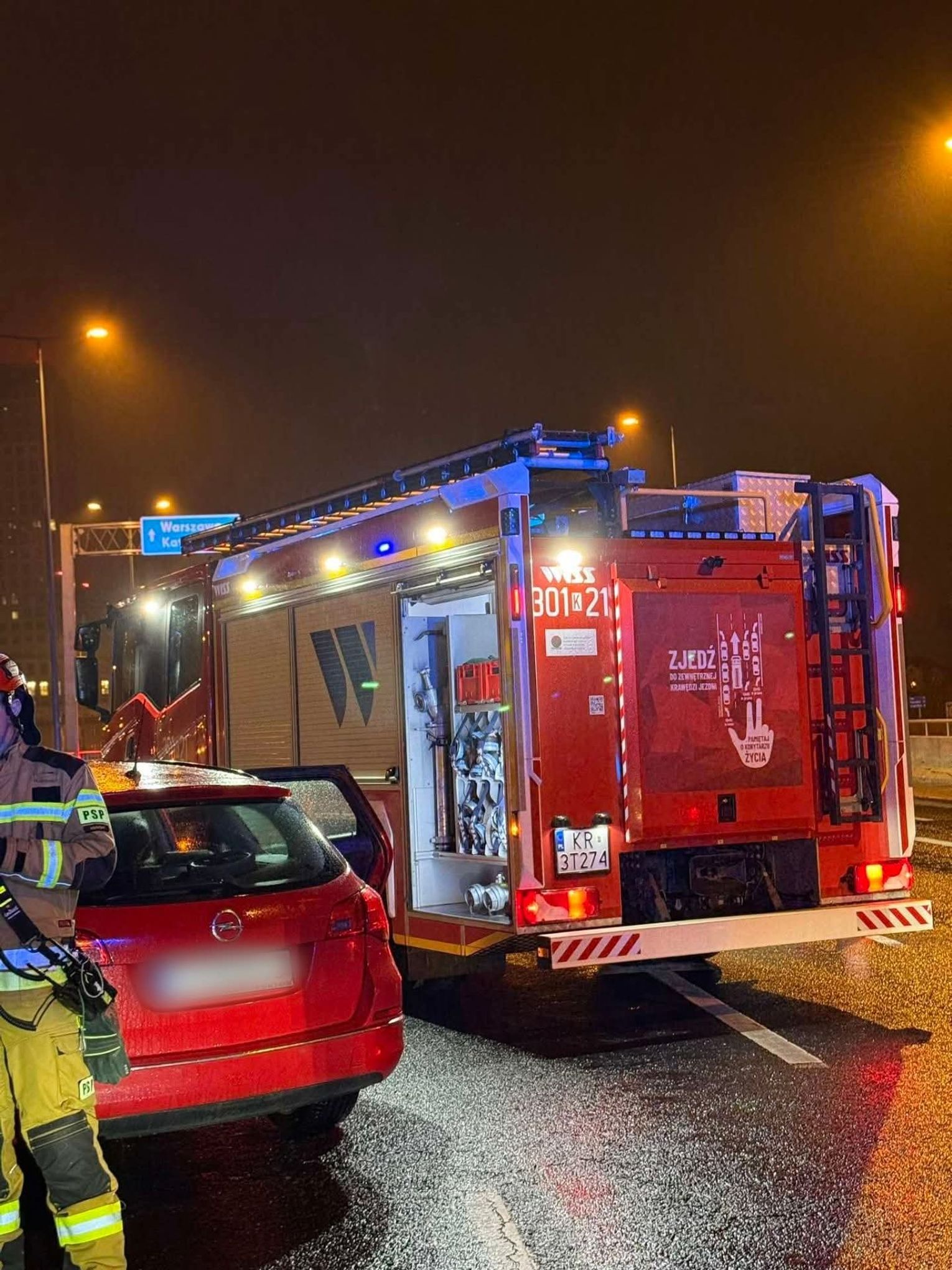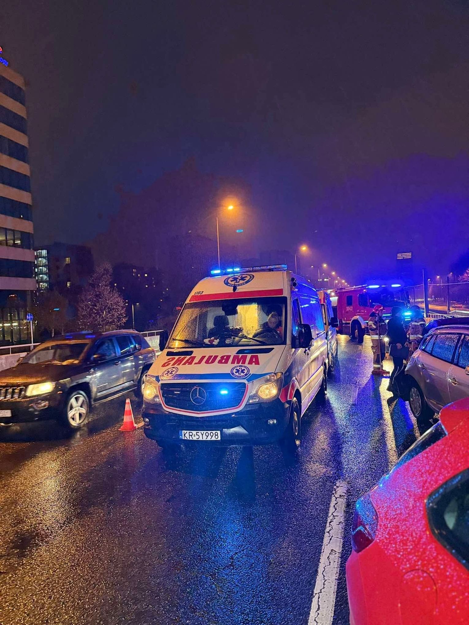 W poniedziałkowy wieczór 10 listopada przed godziną 20:00 na Rondzie Mogilskim w Krakowie doszło do karambolu drogowego z udziałem trzech samochodów osobowych. Na miejsce natychmiast zadysponowano służby ratunkowe: zastępy straży pożarnej z JRG 1 Kraków, naziemne Zespoły Ratownictwa Medycznego oraz funkcjonariusze policji, którzy ustalali okoliczności i przyczyny zdarzenia.