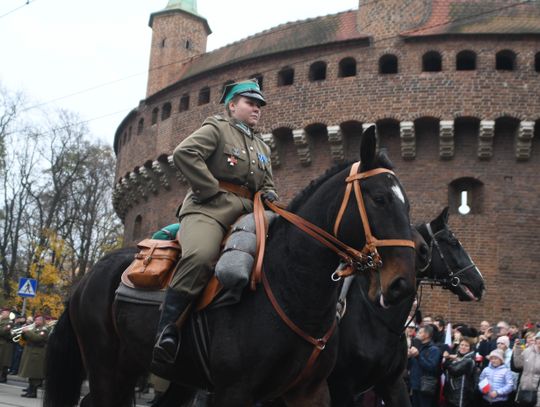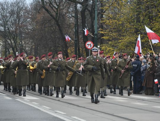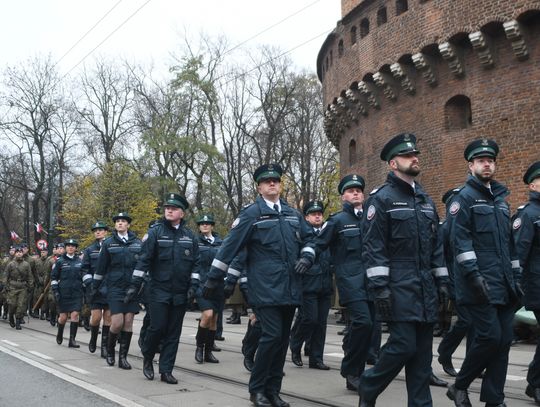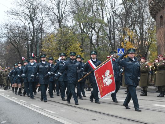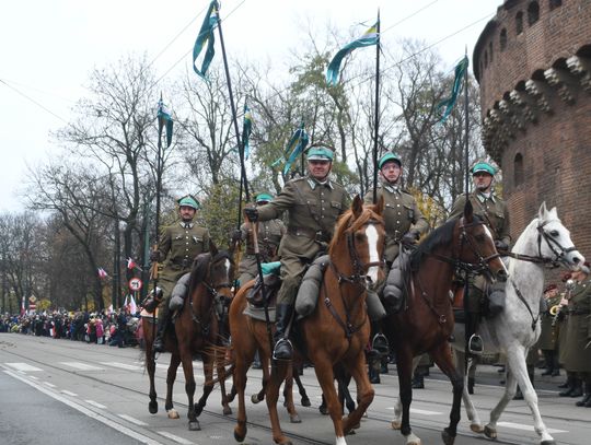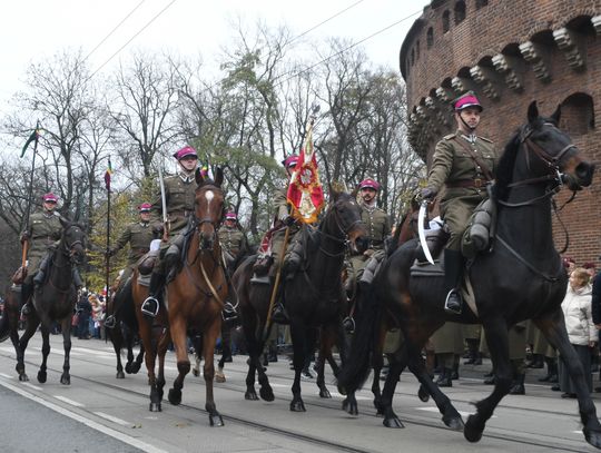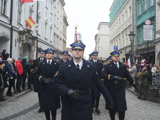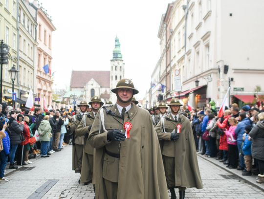 Z Wawelu wyruszył wielki biało-czerwony pochód patriotyczny, który przemierzył trakt królewski, stając się kulminacją obchodów. Korowód otworzyły historyczne grupy rekonstrukcyjne w strojach z XVII wieku oraz imponujące formacje konne, w tym Poczet Krakowskiej Chorągwi Husarskiej, Krakowski Szwadron Ułanów im. J. Piłsudskiego oraz II Szwadron 21 Pułku Ułanów Nadwiślańskich. Za nimi maszerowały Orkiestra Wojska Polskiego i kompanie honorowe wystawione przez Wojsko Polskie, Policję, Straż Pożarną, Straż Graniczną, Straż Miejską i Krajową Administrację Skarbową, a także liczne poczty sztandarowe, bracia kurkowi, młodzież i mieszkańcy. Ulicami Grodzką, Rynkiem Głównym i Floriańską, pochód dotarł na plac o. Adama Studzińskiego, gdzie złożono wieńce pod Krzyżem Katyńskim, by ostatecznie zatrzymać się na placu Jana Matejki, przed Grobem Nieznanego Żołnierza.