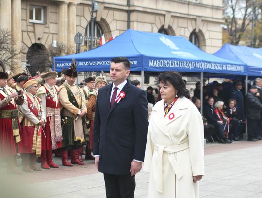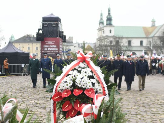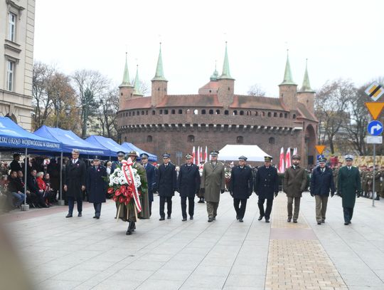 Dzień rozpoczął się od symbolicznych gestów wdzięczności. Delegacje z udziałem parlamentarzystów, samorządowców, korpusu dyplomatycznego oraz przedstawicieli służb mundurowych złożyły kwiaty przy pomniku Żołnierzy Polski Walczącej na Powiślu. Następnie uroczystości przeniosły się na Wawel, gdzie hołd oddano w krypcie pod Wieżą Srebrnych Dzwonów, przy sarkofagu Marszałka Józefa Piłsudskiego, oraz pod tablicą upamiętniającą Wincentego Witosa w krypcie św. Leonarda, w symbolicznym geście łączącym główne postaci odrodzenia państwa.