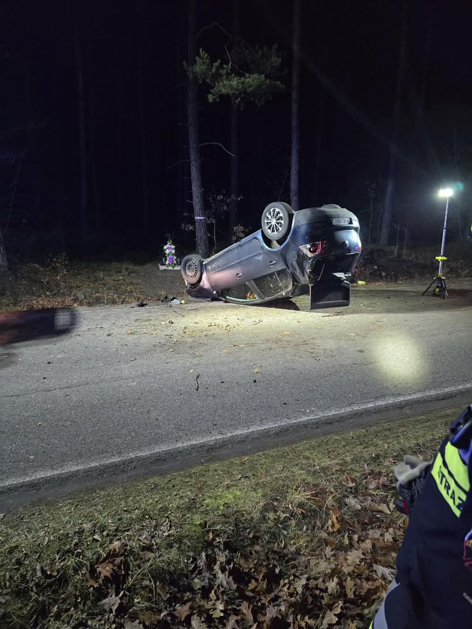 We wtorek późnym wieczorem 18 listopada, przed godziną 22:00 na trasie prowadzącej z Olkusza do miejscowości Gorenice w gminie Olkusz doszło do zdarzenia drogowego z udziałem jednego pojazdu. Kierowca samochodu osobowego z nieznanych przyczyn stracił nad nim panowanie i osobówka wylądowała na dachu.