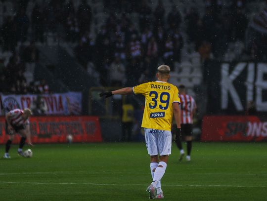 Początek spotkania pokazał, że obie drużyny miały zamiar grać ofensywnie i dążyć do dominacji, jednak w pierwszej połowie przeważała ostrożność. Akcje budowane były mozolnie, a priorytetem wydawało się unikanie błędów. Cracovia liczyła na błyskotliwe kontrataki, w których siłą napędową miał być szybki Filip Stojilković, choć przy jednym z rajdów zgubił piłkę. Odnotować można strzał z woleja Mateusza Klicha po rzucie rożnym i próbę ataku gości, gdzie uderzenie Karola Czubaka zostało zablokowane przez Al-Ammariego. Niestety, pierwsza odsłona meczu szczególnie rozczarowała pod kątem celności – Cracovia nie oddała ani jednego celnego strzału, podczas gdy goście mieli dwie takie próby.
