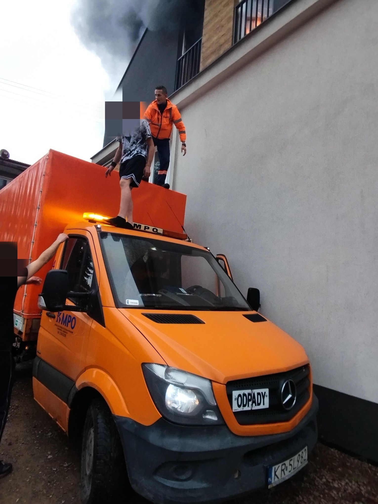 Jeden z czytelników wysłał na skrzynkę mailową redakcji M jak Małopolska zdjęcia z miejsca wybuchu pożaru z komentarzem "Superbohater" z MPO ratuje chłopaka. Szybka decyzja i reakcja. Jeden z pracowników Miejskiego Przedsiębiorstwa Oczyszczania w Krakowie wykorzystując pojazd miejskiej spółki ewakuował z płonącego poddasza budynku chłopaka. Na całe szczęście był we właściwym miejscu i czasie.