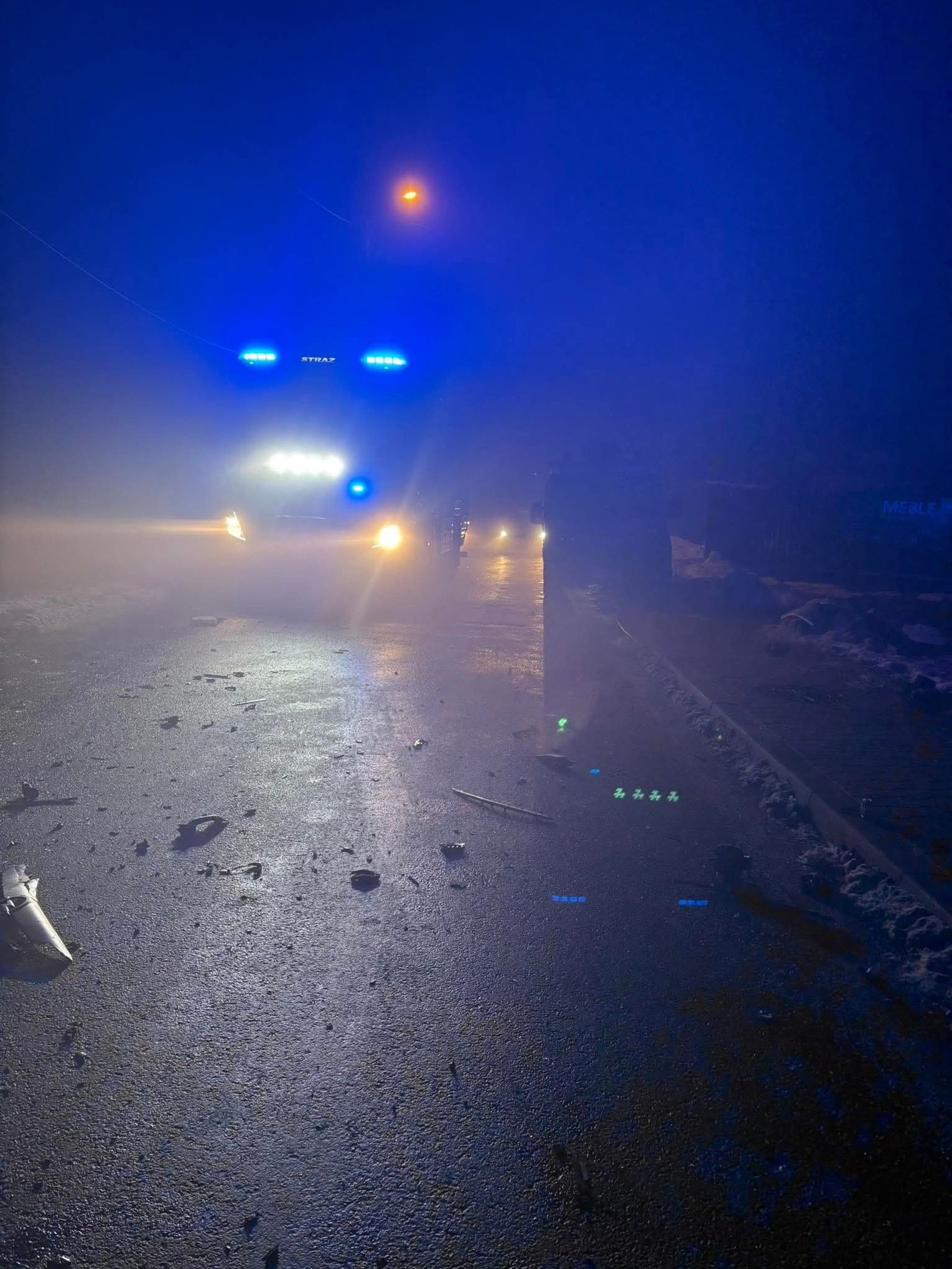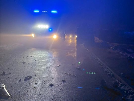 Informacja o wypadku wpłynęła do służb ratunkowych we wczesnych godzinach porannych. Na miejsce natychmiast zadysponowano zastępy straży pożarnej, Pogotowie Energetyczne oraz patrole Policji. Obraz zastany przez strażaków był jednoznaczny: Opel Insignia był poważnie uszkodzony w wyniku zderzenia z masywnym słupem energetycznym.
