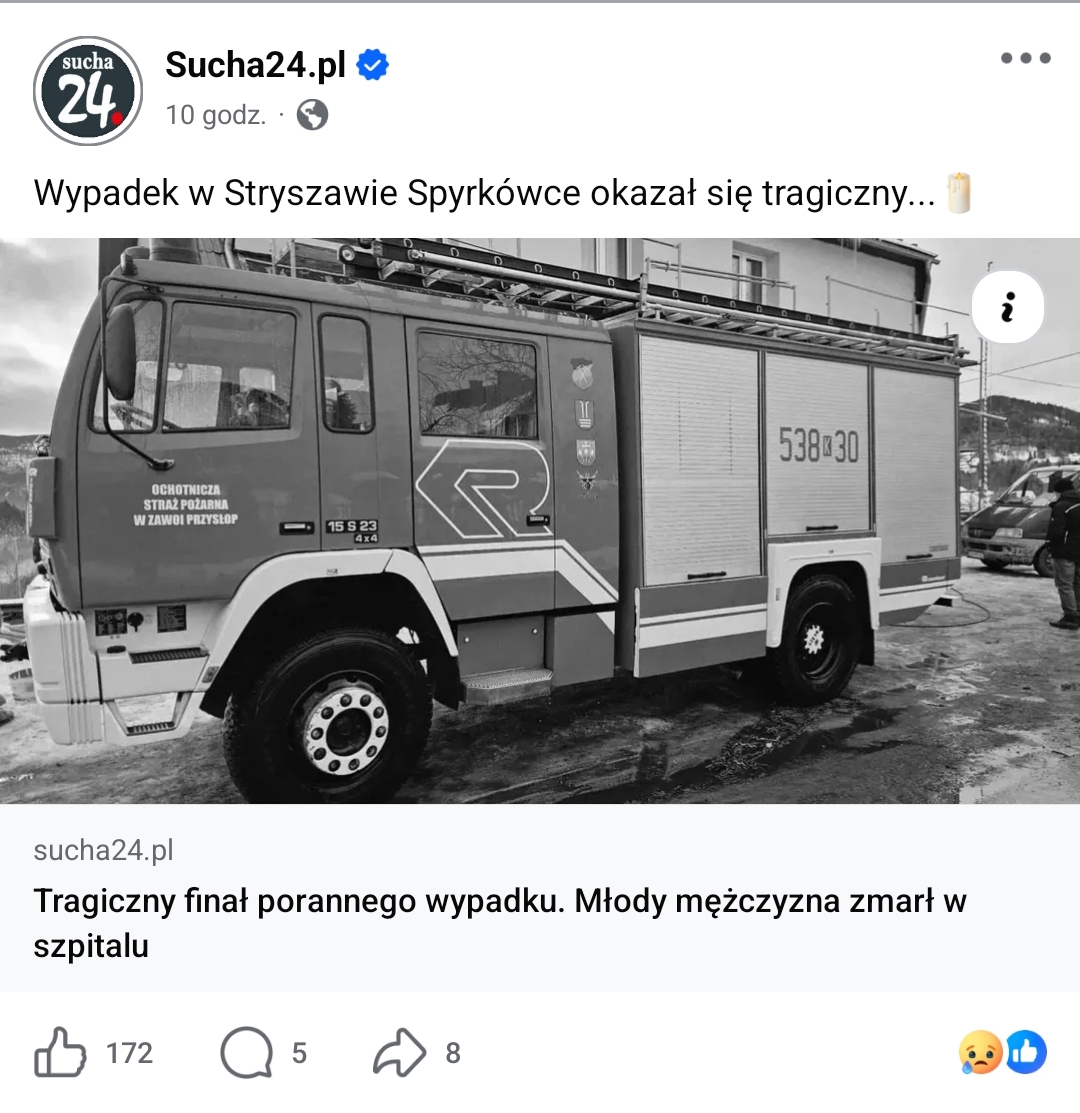 Informację o śmierci 21-latka potwierdził Oficer Prasowy Komendy Powiatowej Policji w Suchej Beskidzkiej, aspirant sztabowy Wojciech Copija. Młody wiek ofiary dodaje tragedii wyjątkowo bolesnego wymiaru.