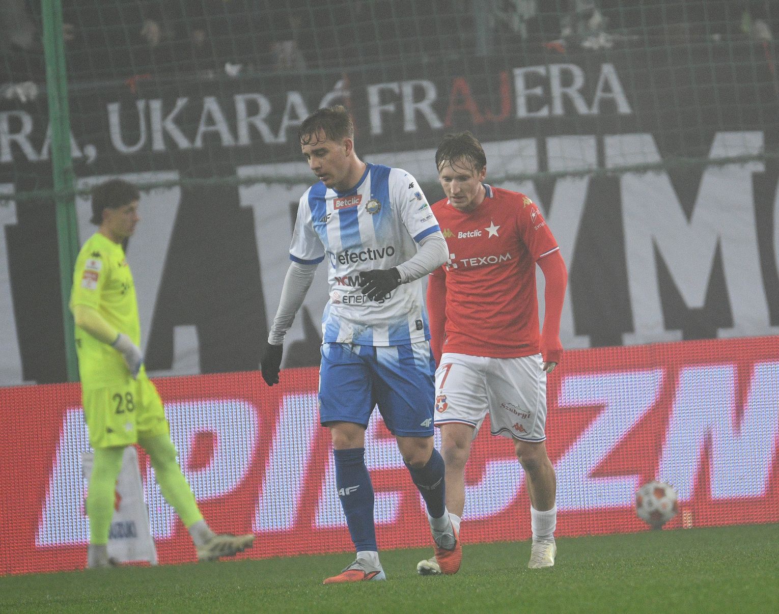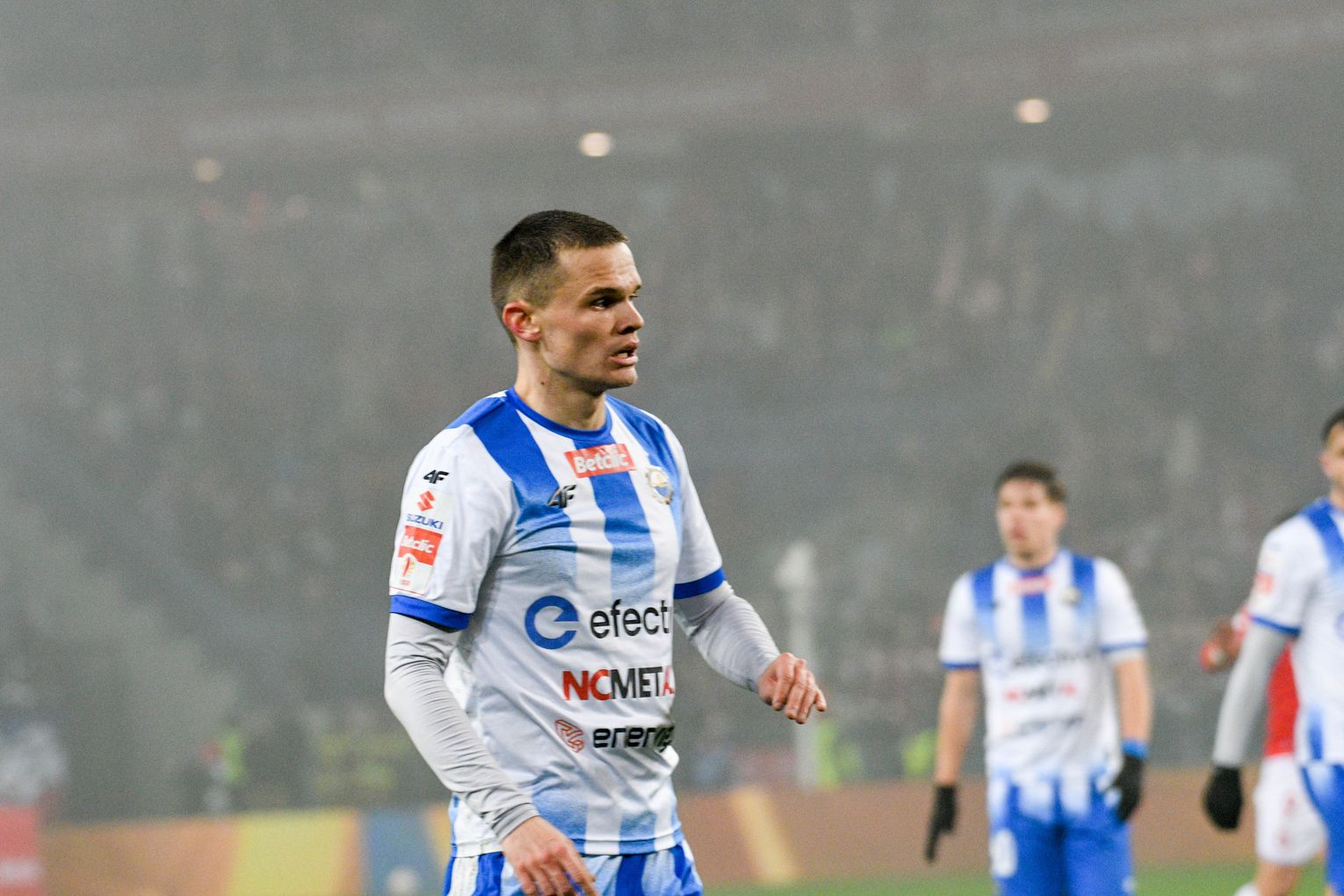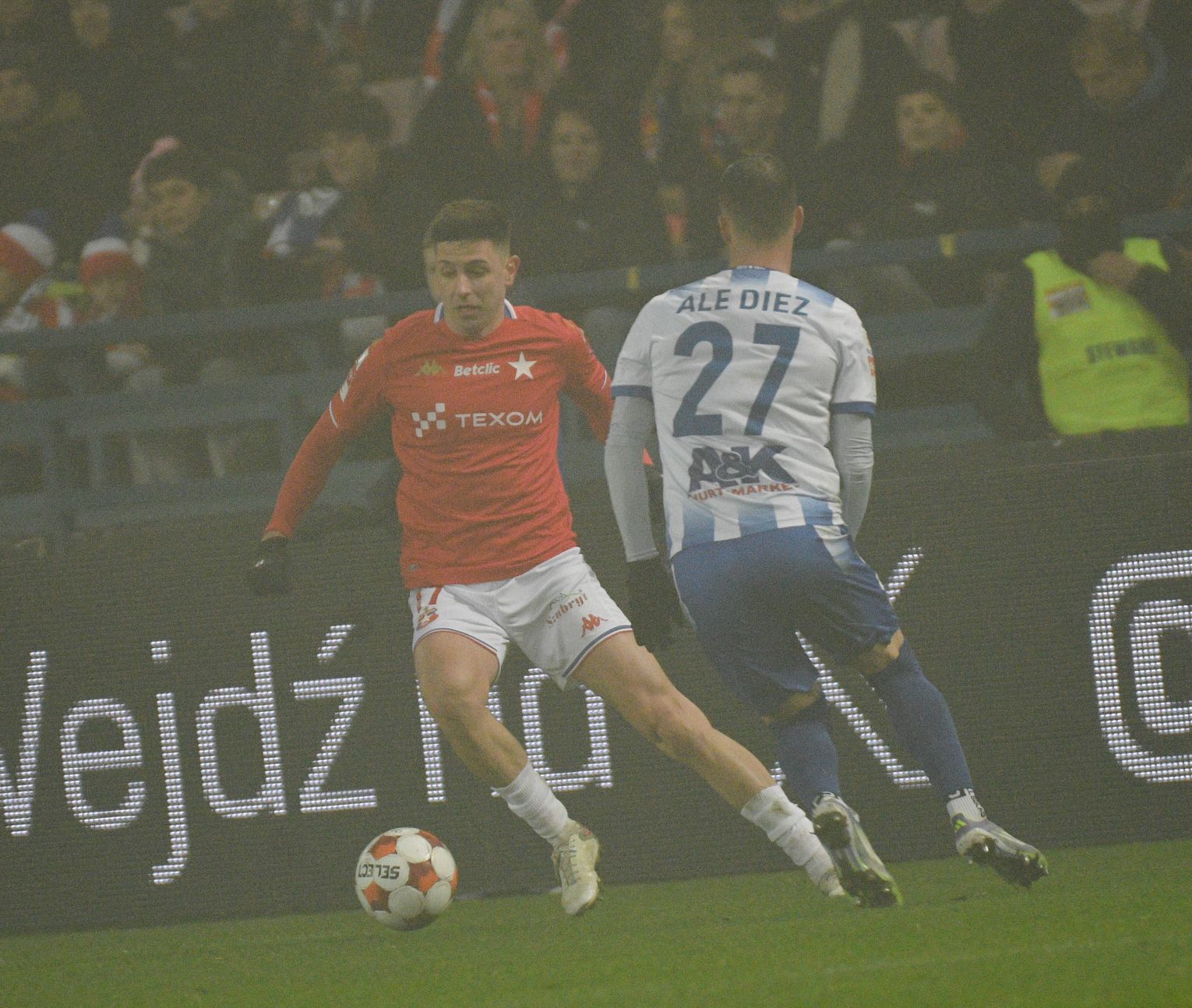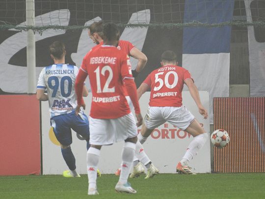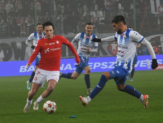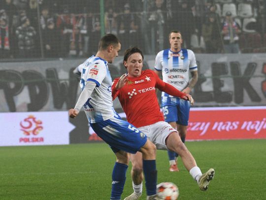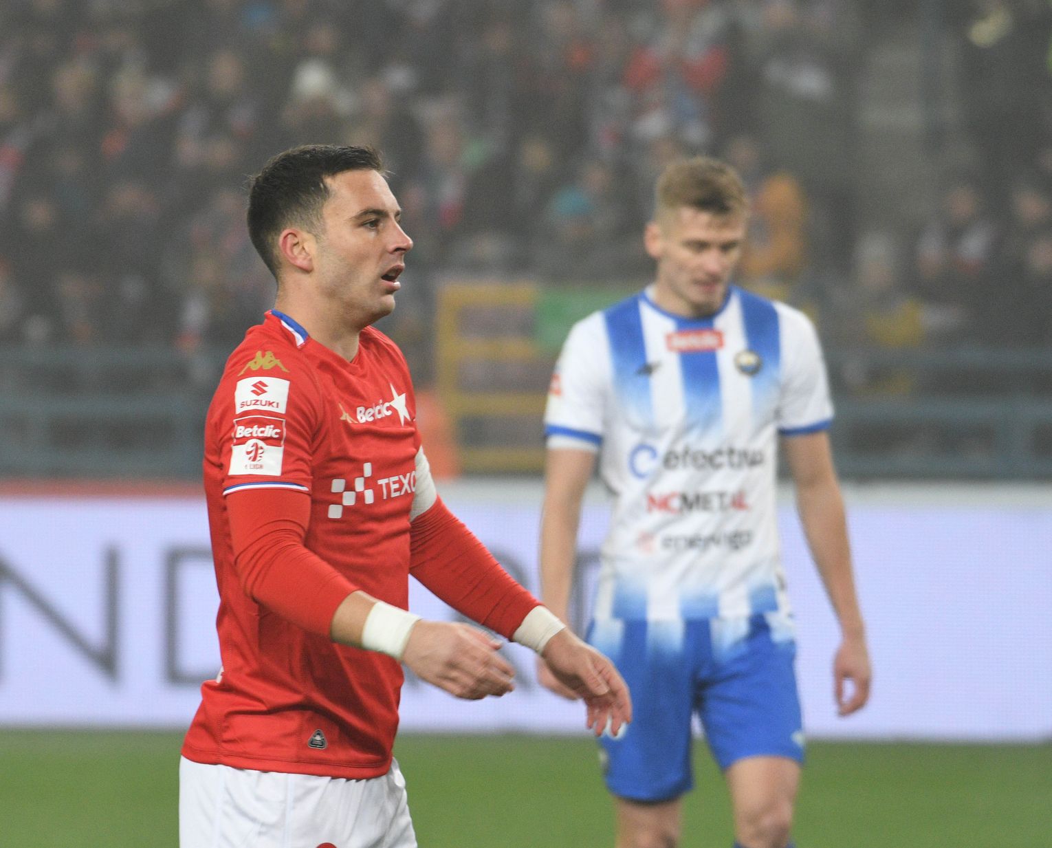 Defensywa gości pękła w 28. minucie. Po serii dynamicznych ataków Wisły, wynik na 1:0 otworzył Kacper Duda. Pomocnik wykorzystał precyzyjne podanie od Marko Bozicia, pokonując Matysa płaskim strzałem. Ten gol wyraźnie dodał wiatru w żagle krakowianom, którzy błyskawicznie podwyższyli prowadzenie.