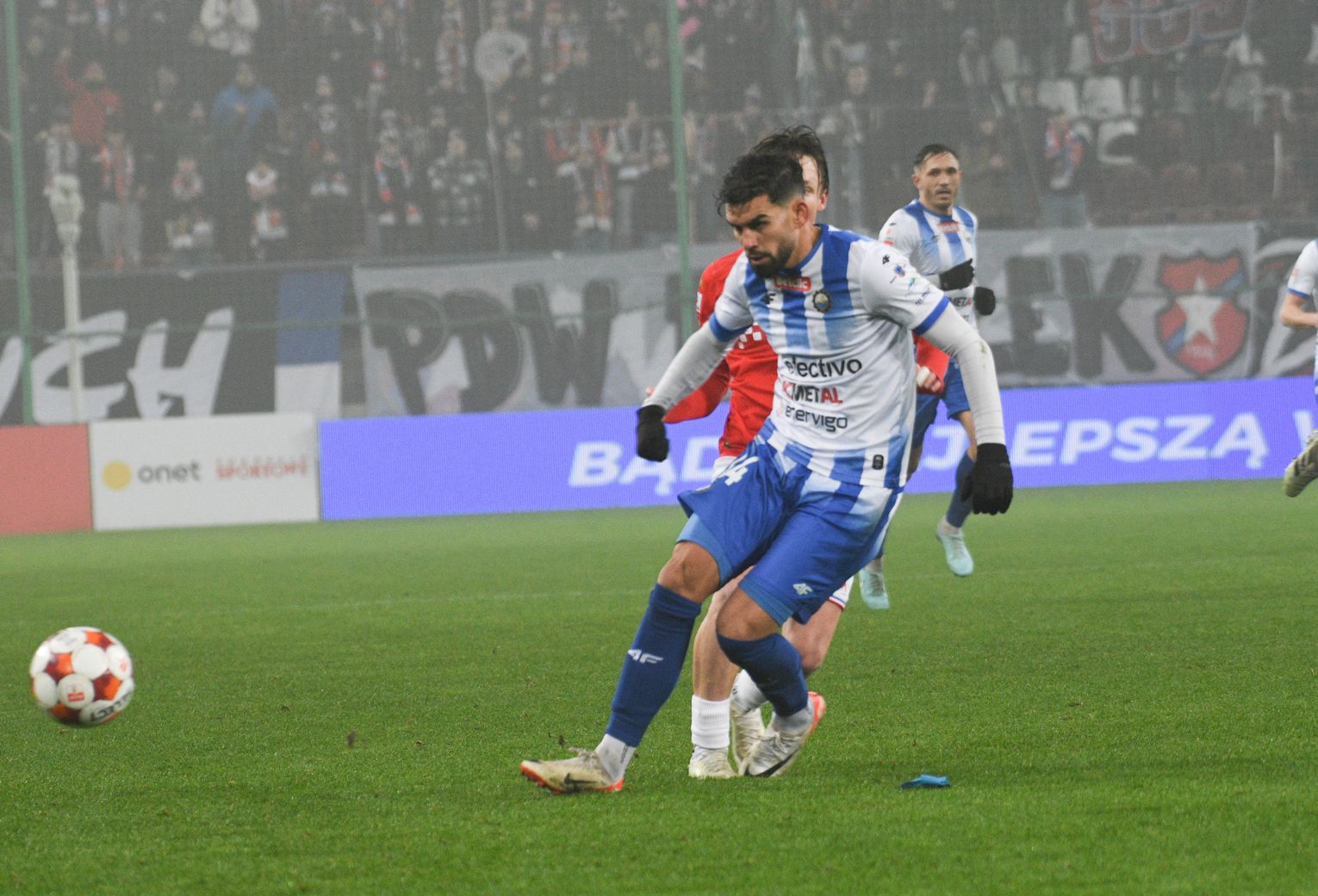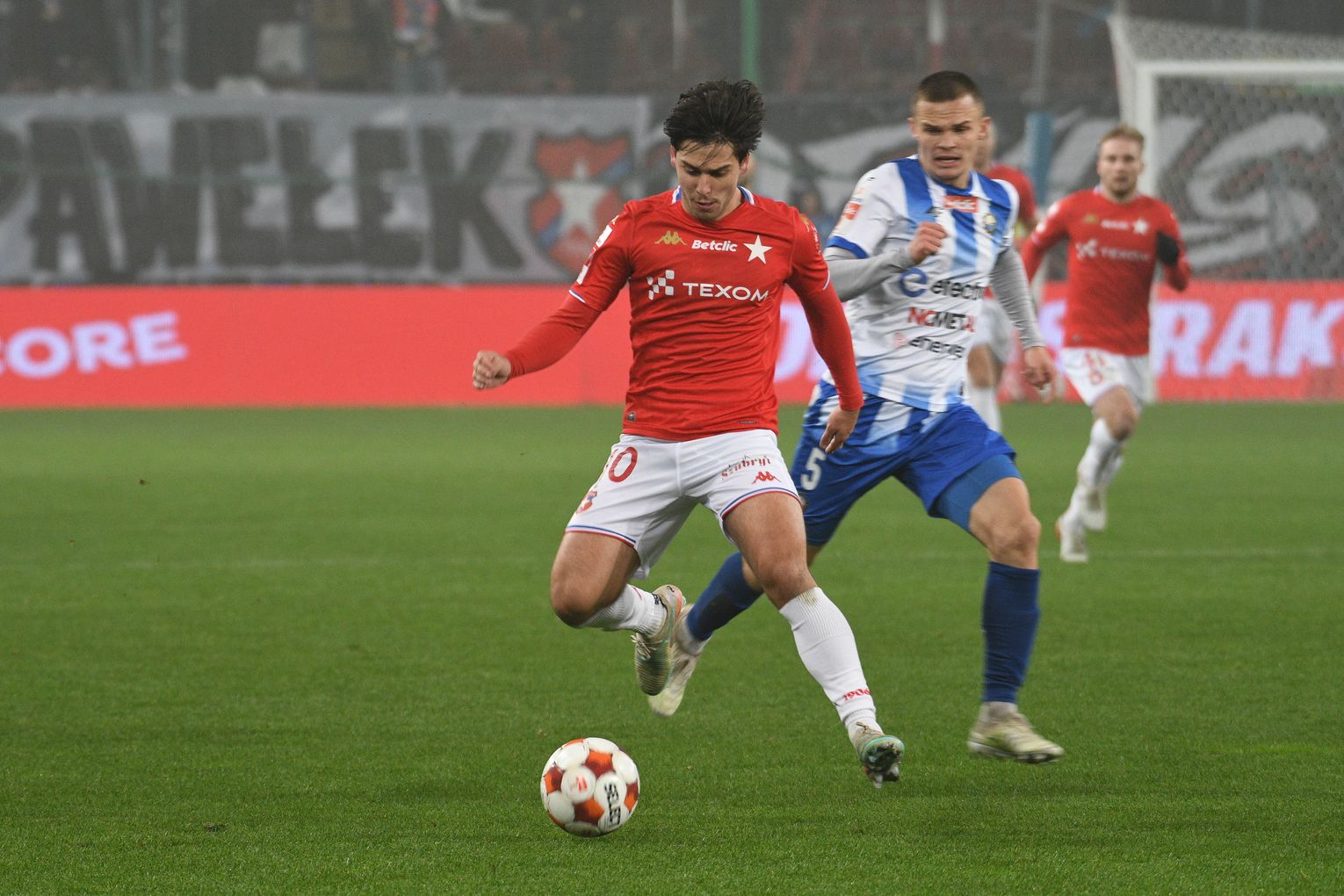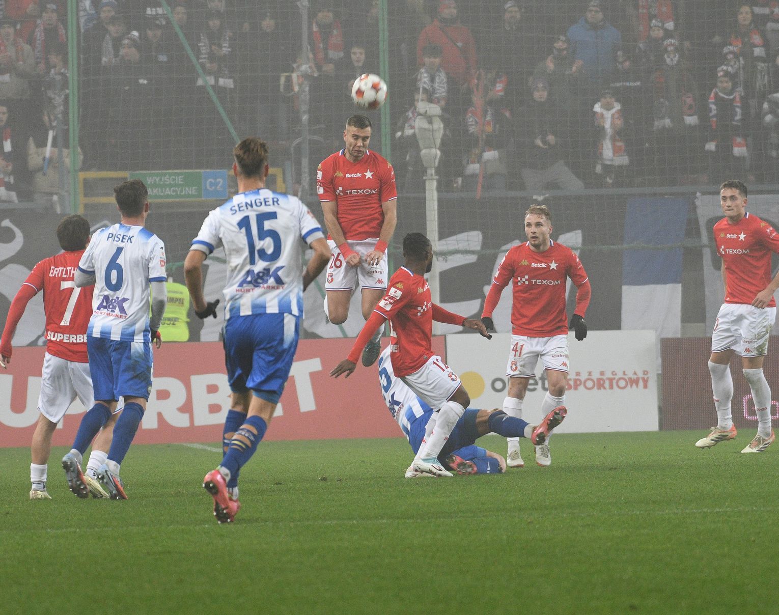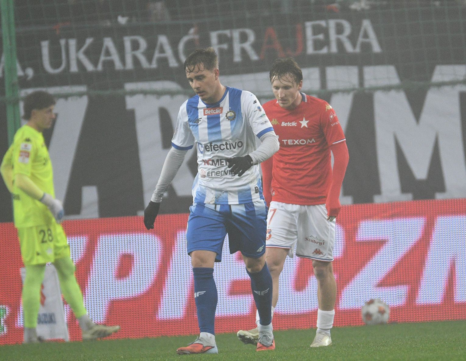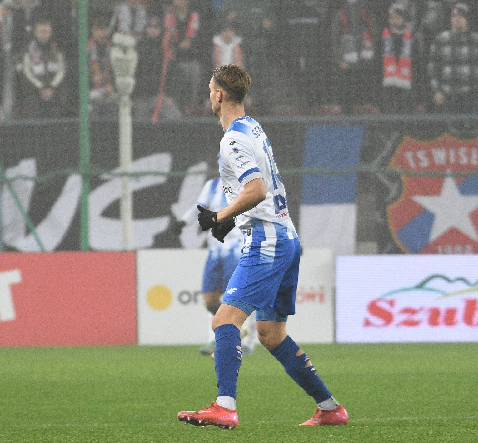 Defensywa gości pękła w 28. minucie. Po serii dynamicznych ataków Wisły, wynik na 1:0 otworzył Kacper Duda. Pomocnik wykorzystał precyzyjne podanie od Marko Bozicia, pokonując Matysa płaskim strzałem. Ten gol wyraźnie dodał wiatru w żagle krakowianom, którzy błyskawicznie podwyższyli prowadzenie.