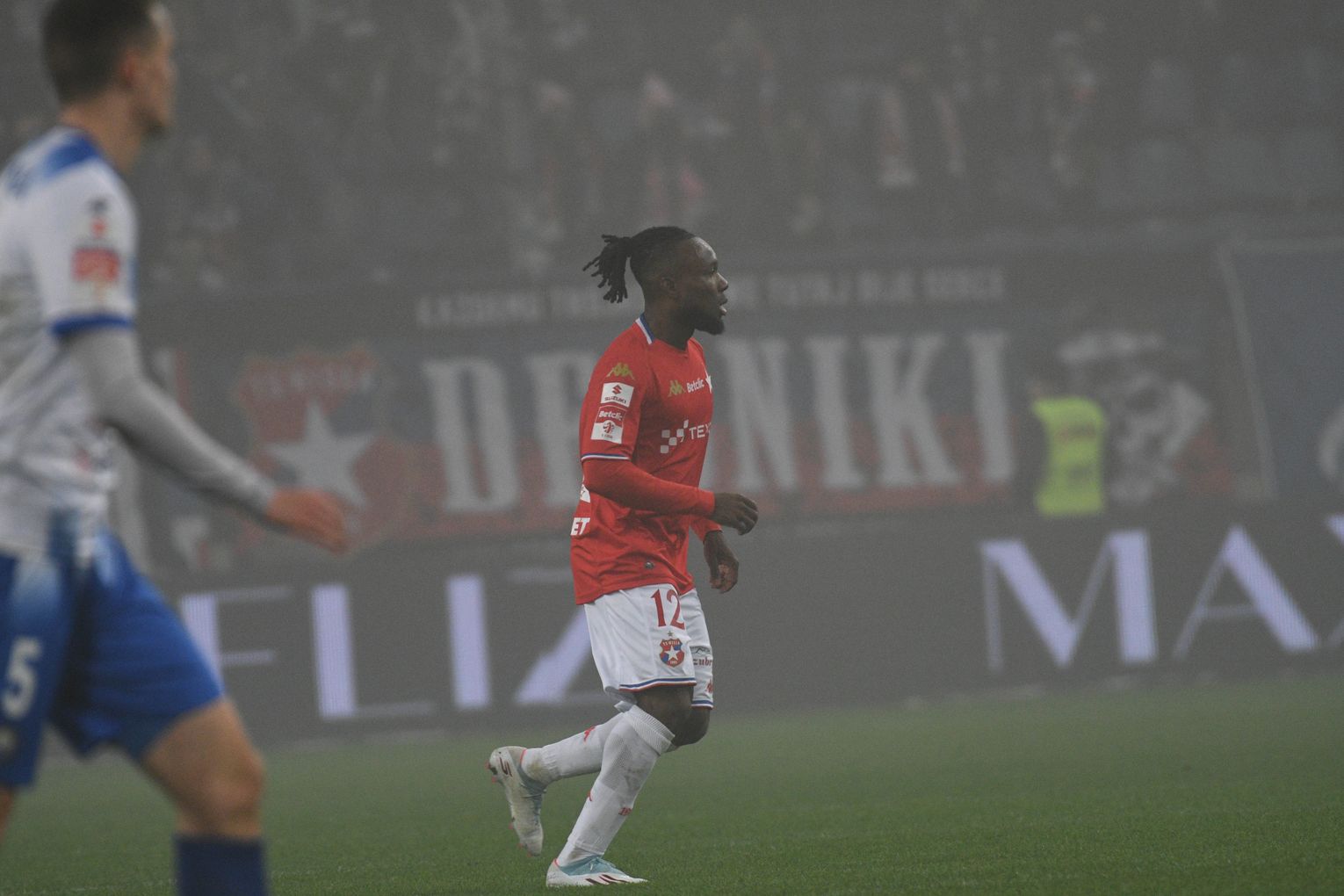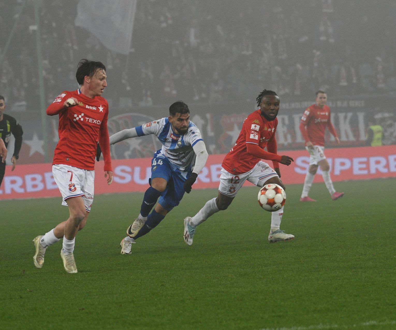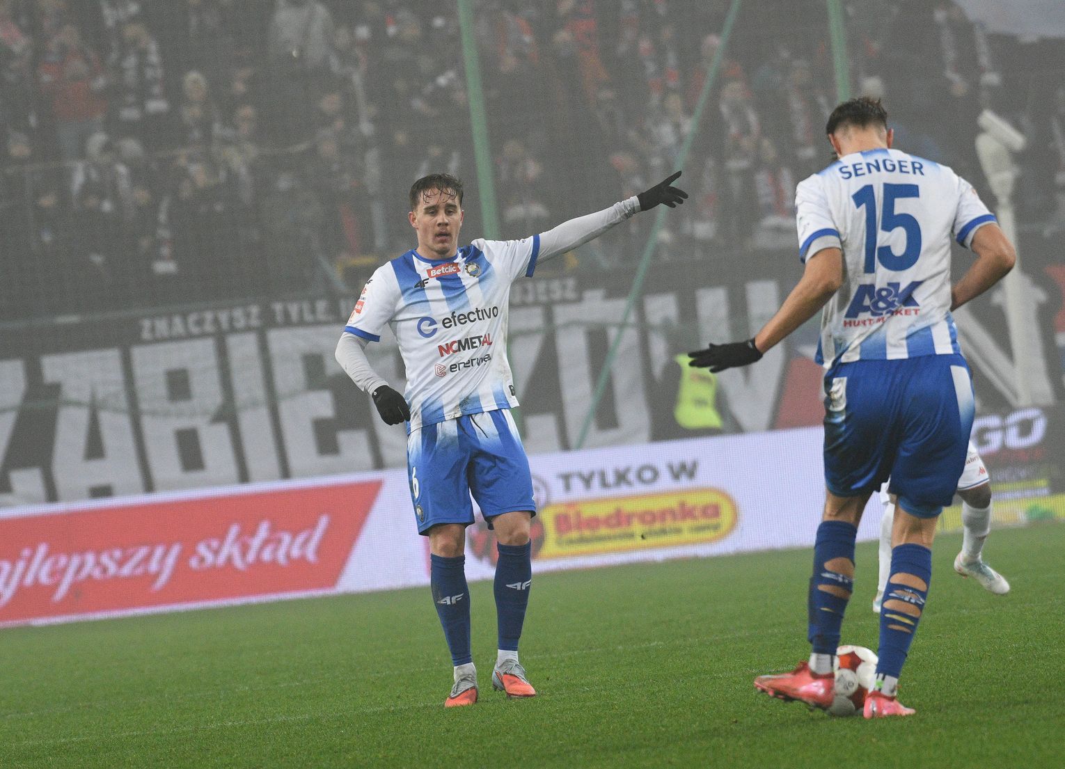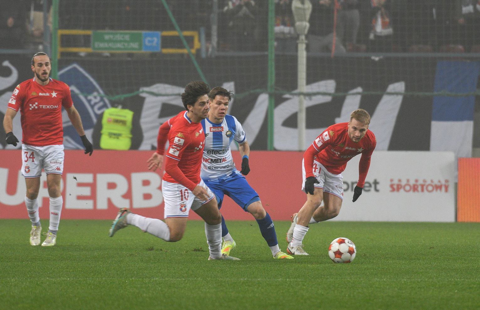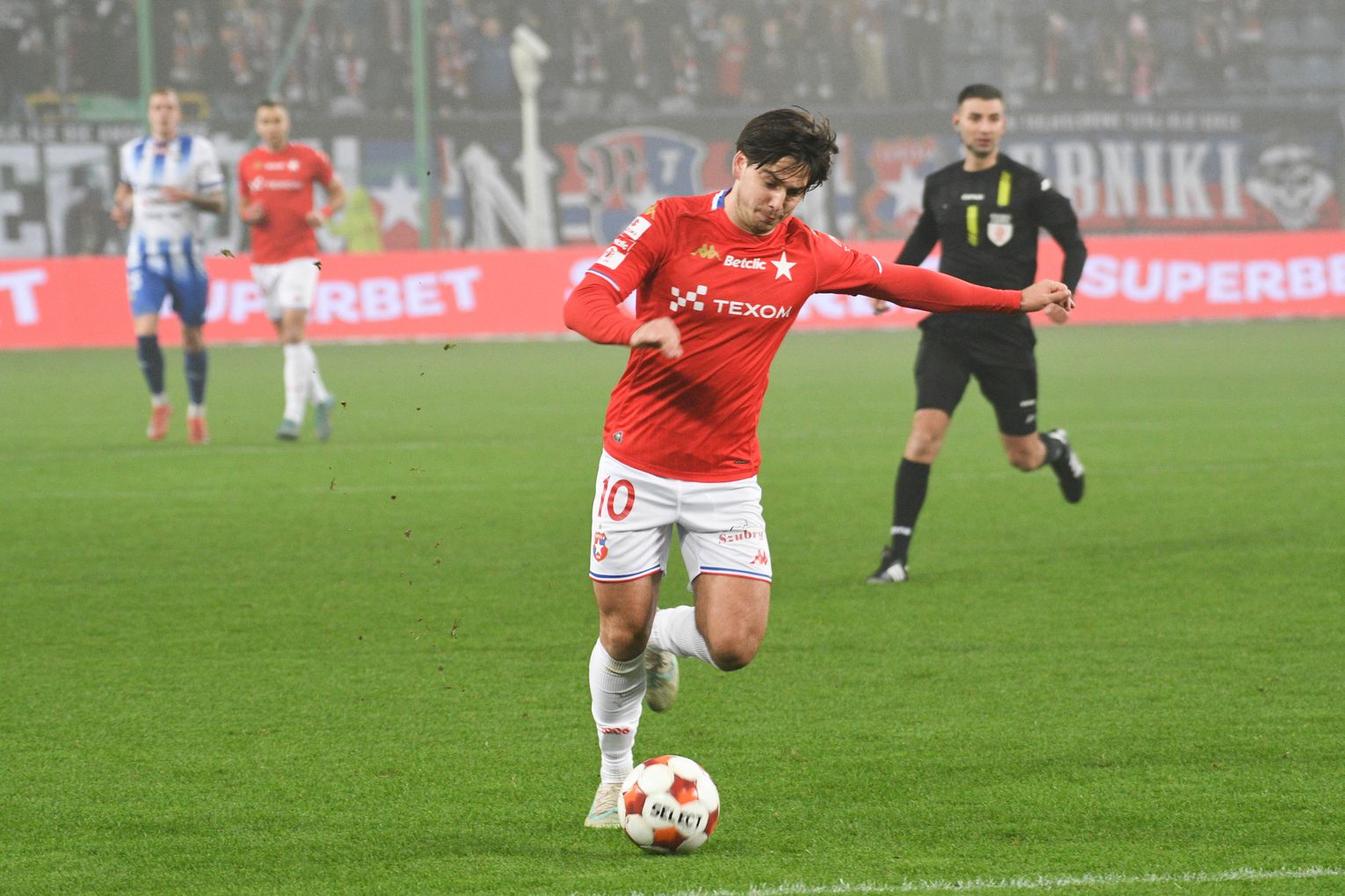 Defensywa gości pękła w 28. minucie. Po serii dynamicznych ataków Wisły, wynik na 1:0 otworzył Kacper Duda. Pomocnik wykorzystał precyzyjne podanie od Marko Bozicia, pokonując Matysa płaskim strzałem. Ten gol wyraźnie dodał wiatru w żagle krakowianom, którzy błyskawicznie podwyższyli prowadzenie.