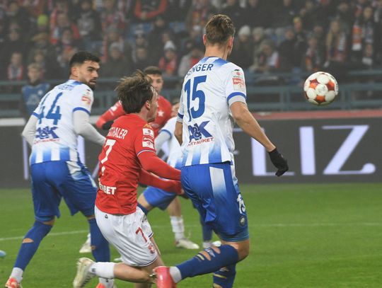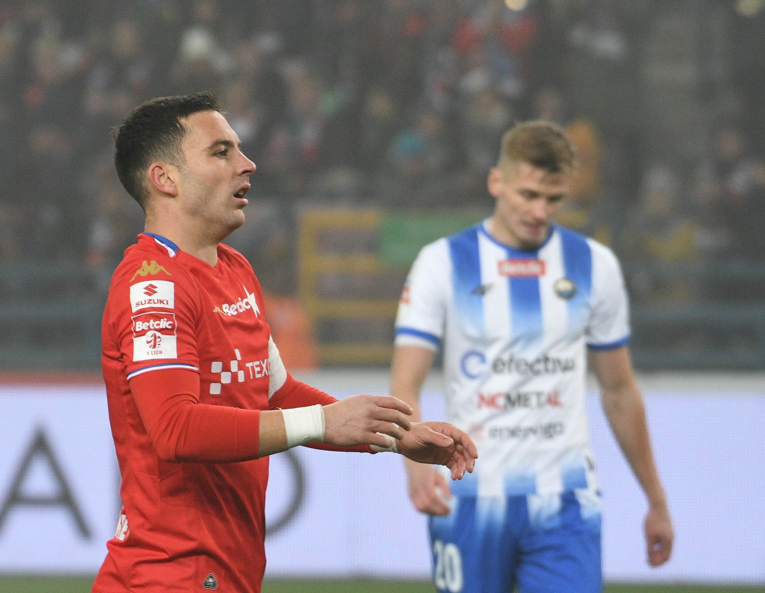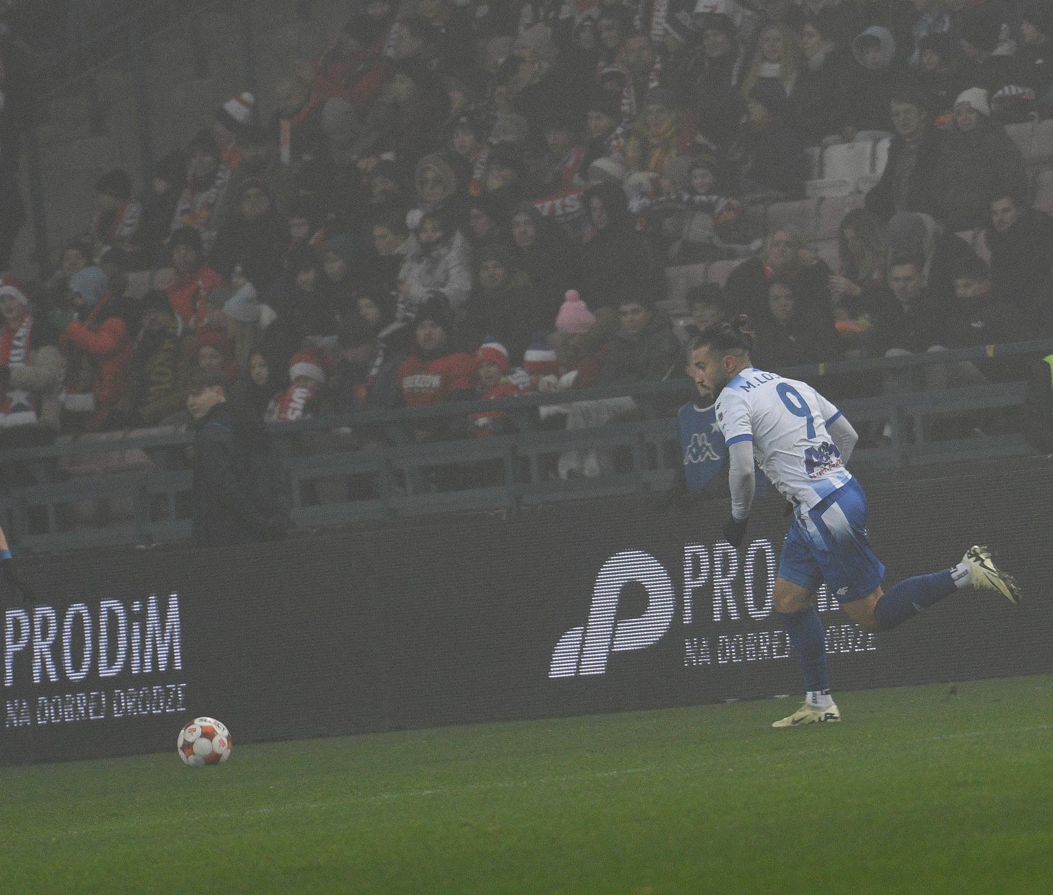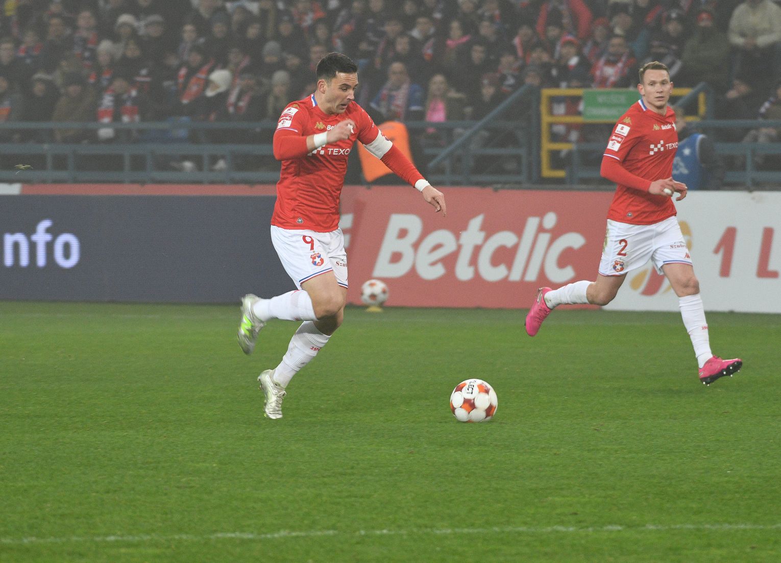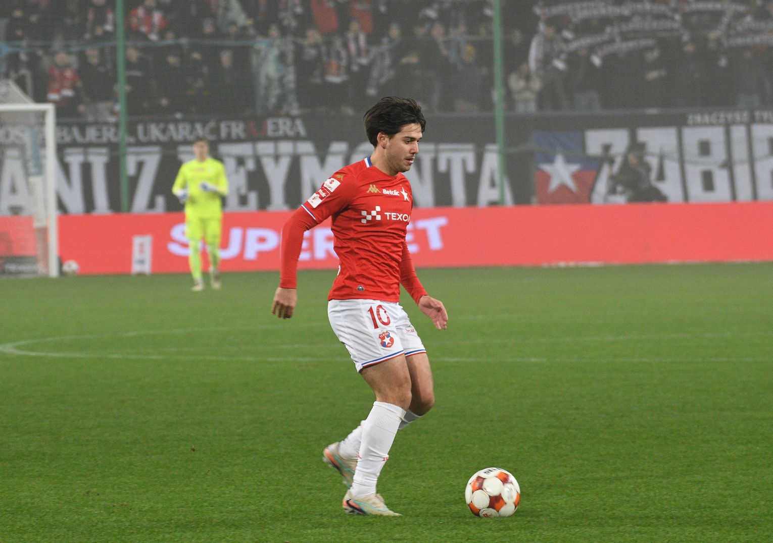 Defensywa gości pękła w 28. minucie. Po serii dynamicznych ataków Wisły, wynik na 1:0 otworzył Kacper Duda. Pomocnik wykorzystał precyzyjne podanie od Marko Bozicia, pokonując Matysa płaskim strzałem. Ten gol wyraźnie dodał wiatru w żagle krakowianom, którzy błyskawicznie podwyższyli prowadzenie.