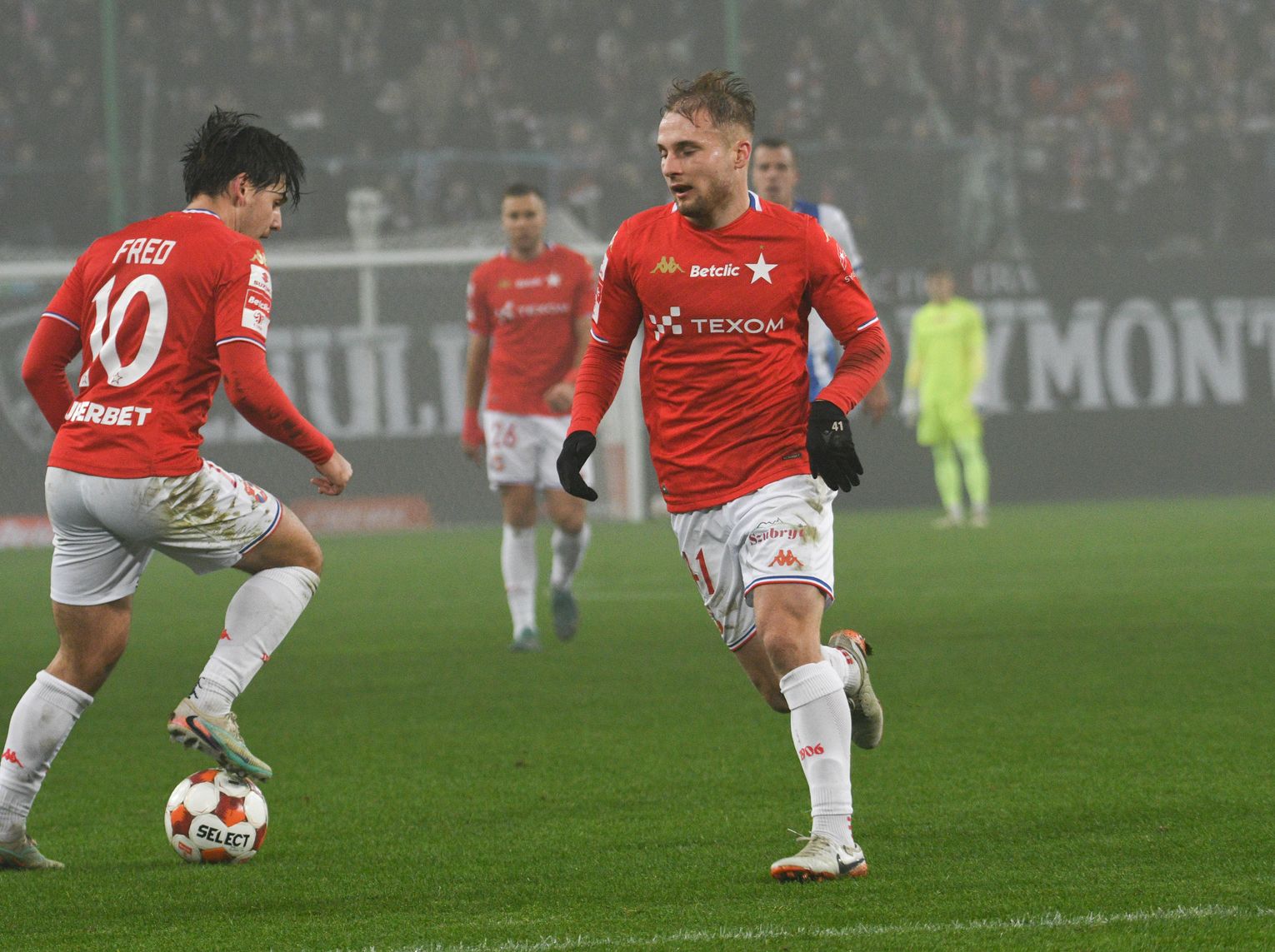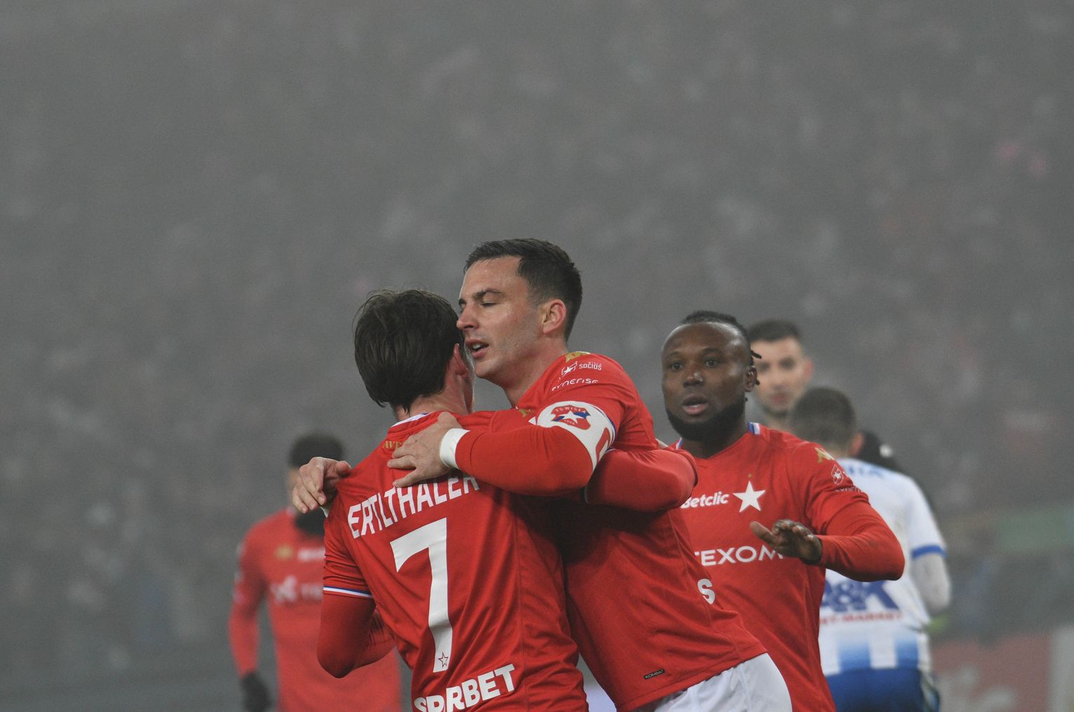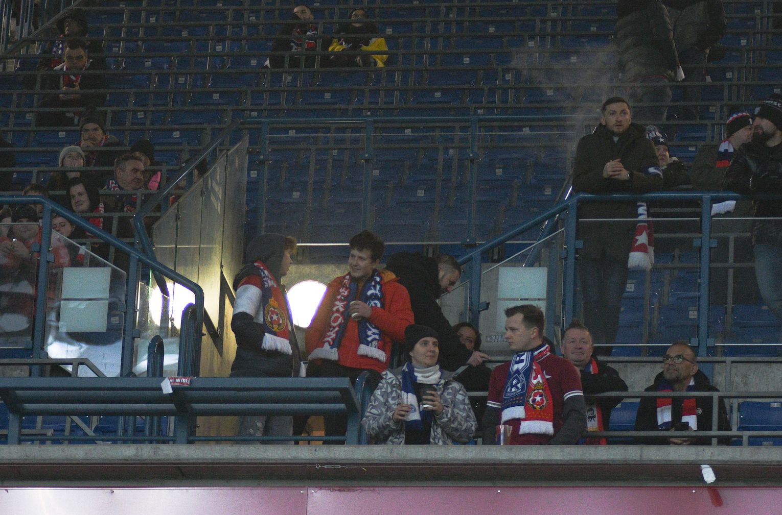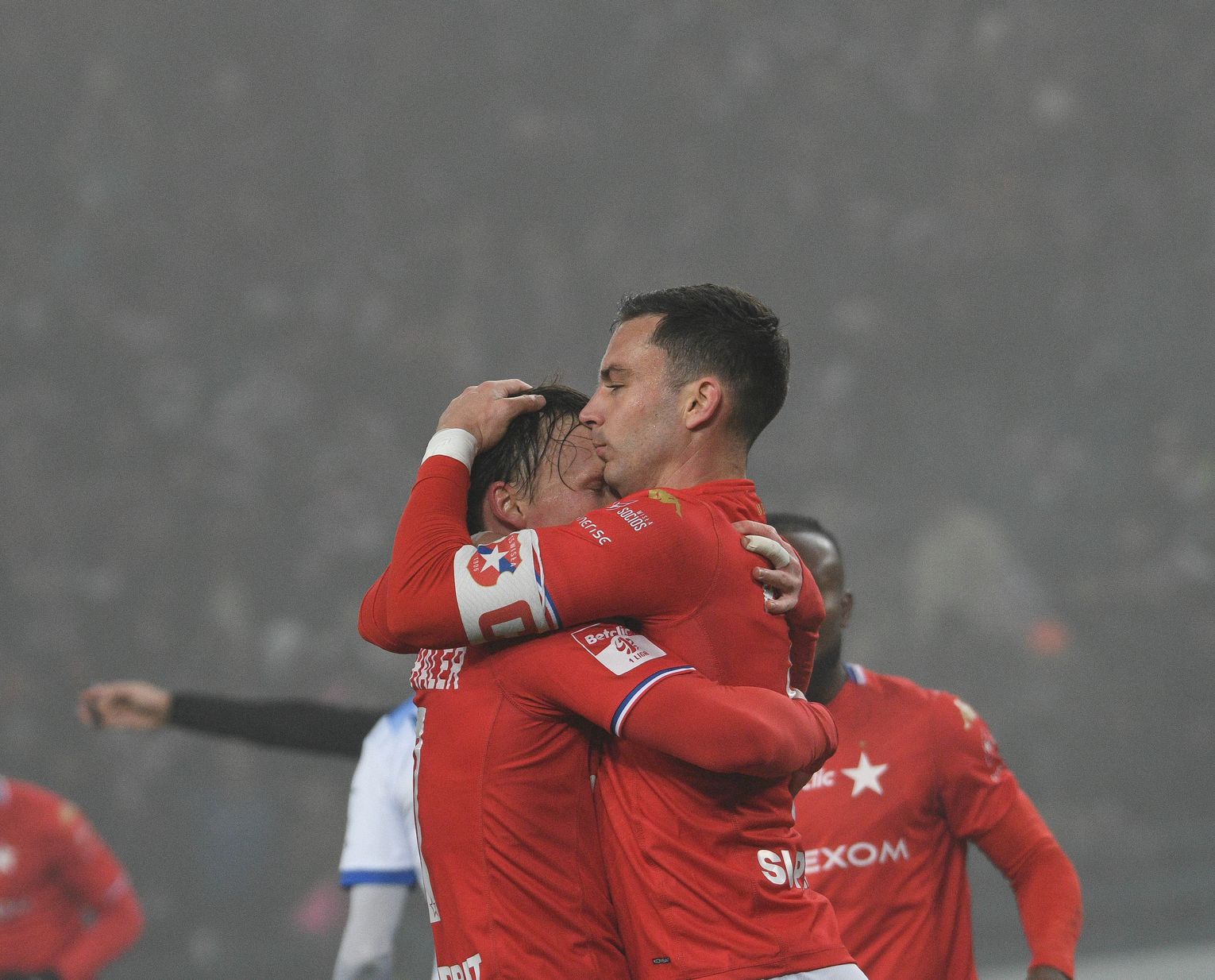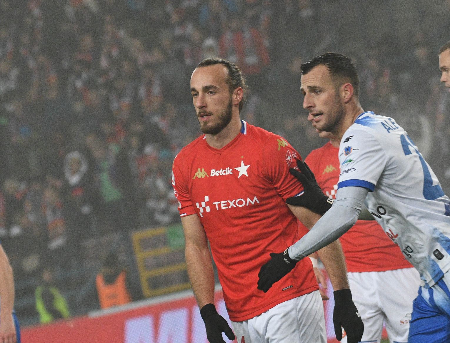 Defensywa gości pękła w 28. minucie. Po serii dynamicznych ataków Wisły, wynik na 1:0 otworzył Kacper Duda. Pomocnik wykorzystał precyzyjne podanie od Marko Bozicia, pokonując Matysa płaskim strzałem. Ten gol wyraźnie dodał wiatru w żagle krakowianom, którzy błyskawicznie podwyższyli prowadzenie.