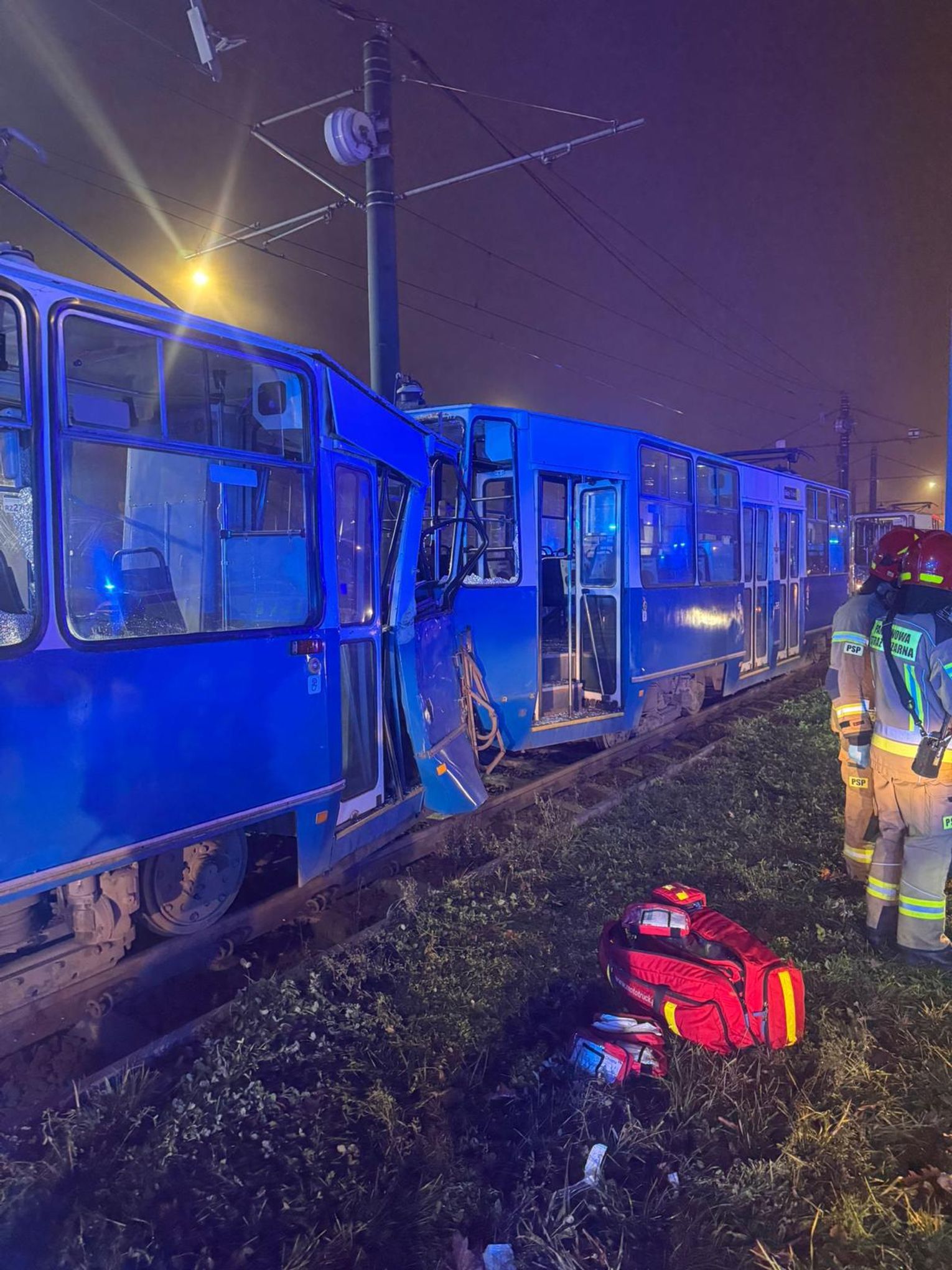 Według najnowszych informacji przekazanych przez kpt. Huberta Ciepłego dwie osoby: pasażer oraz motorniczy w stanie poważnym trafili do szpitala. Oprócz nich fachowej opieki lekarskiej potrzebowało 9 pasażerów tramwajów.