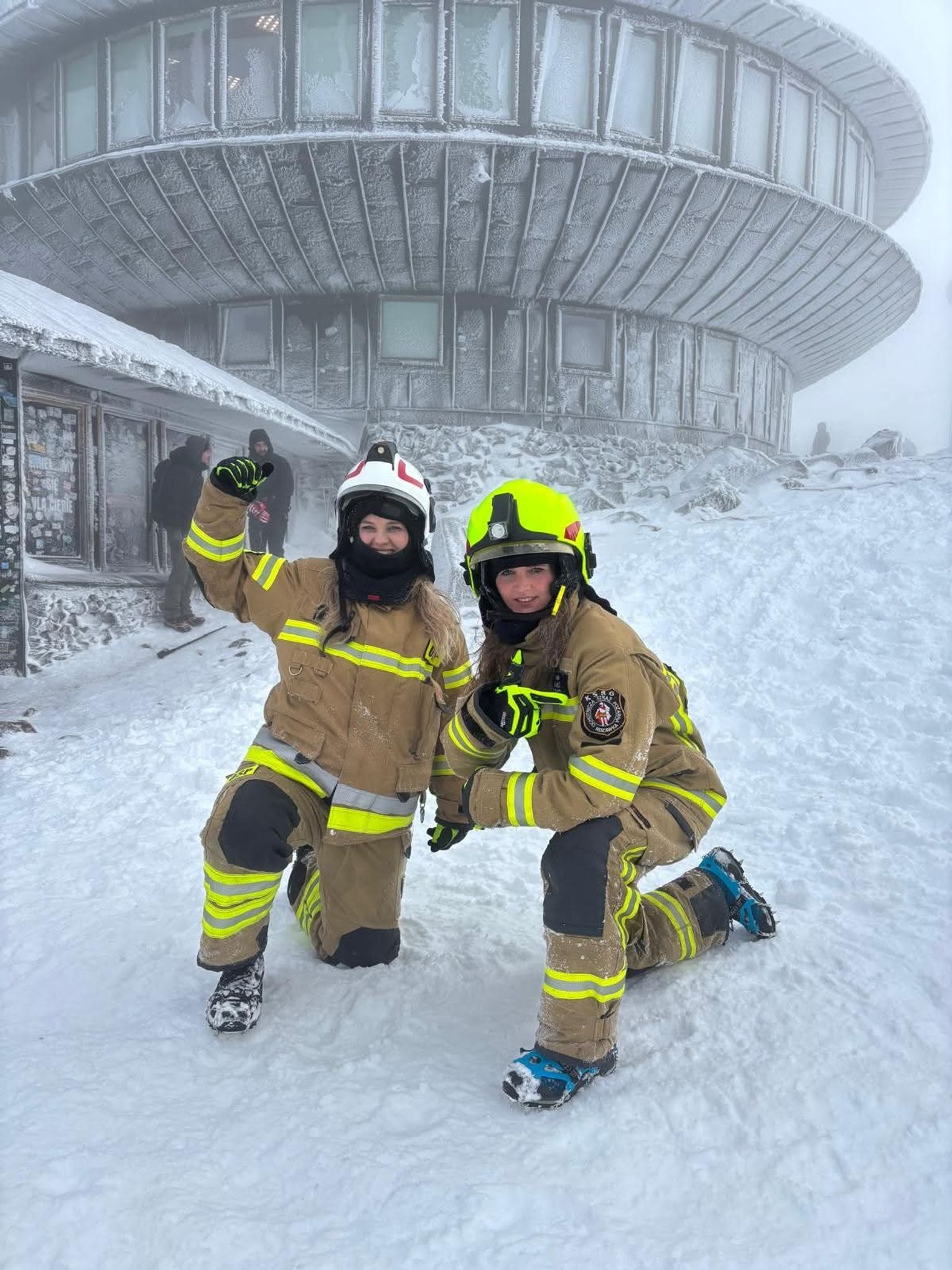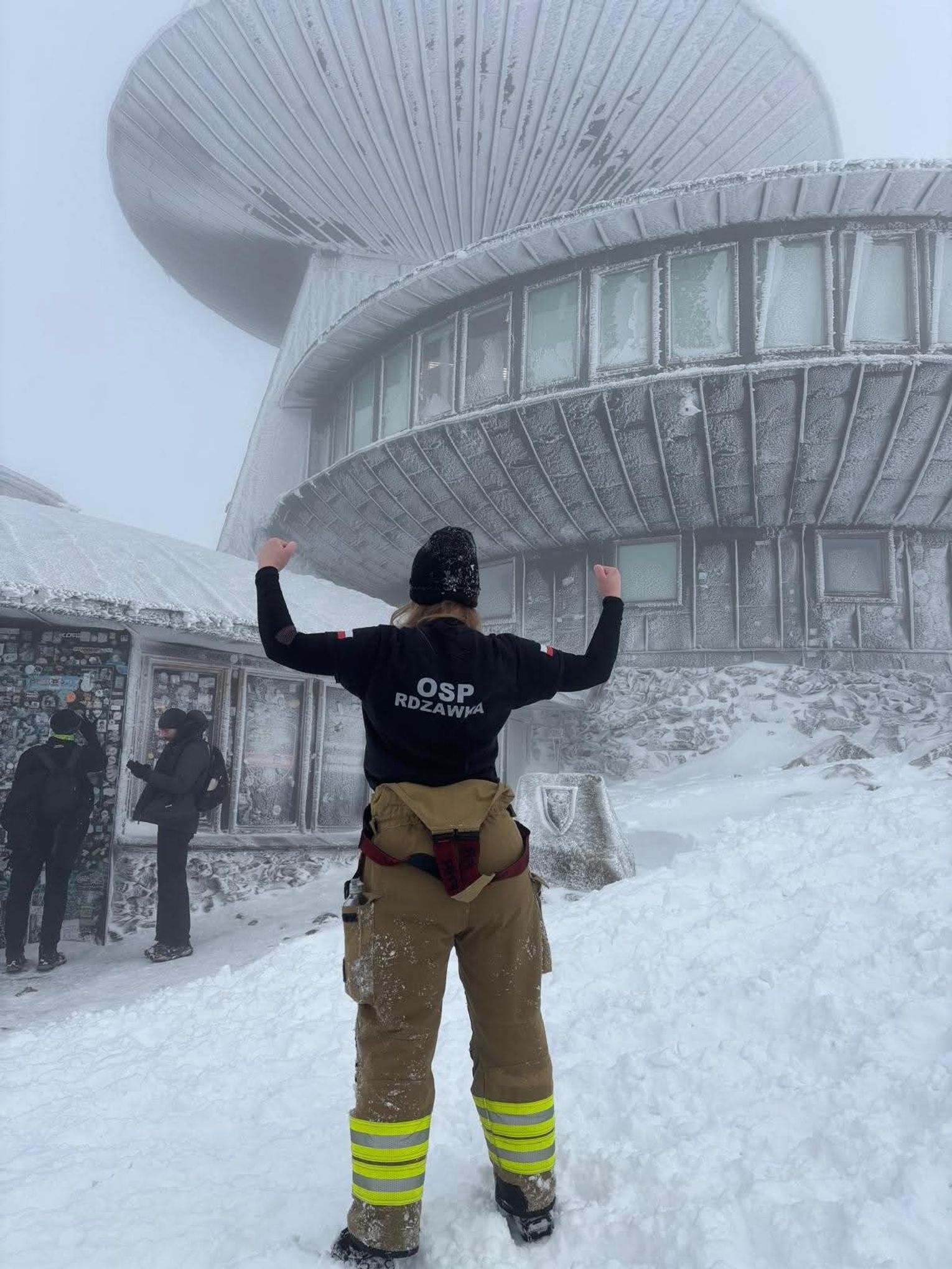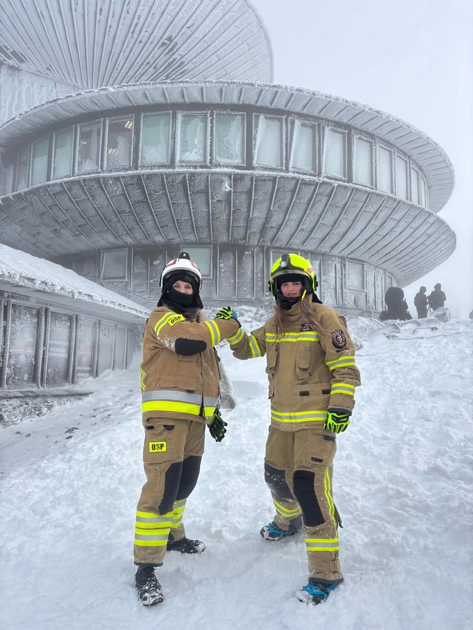 Wyzwaniem dla strażaków była nie tylko długa i stroma trasa. Wejście na Śnieżkę odbyło się w pełnym umundurowaniu bojowym, którego waga, wraz ze sprzętem, może sięgać nawet 25 kilogramów. Dodatkowo, panujące warunki zimowe były wyjątkowo wymagające: silny wiatr, oblodzone podejścia i bardzo niska temperatura dodatkowo utrudniały każdy krok. Mimo tych przeszkód, druhny z Rdzawki wykazały się ogromną determinacją, hartem ducha i niesamowitą sprawnością fizyczną, pomyślnie osiągając szczyt i udowadniając, że gotowość do poświęceń to nieodłączna cecha służby.