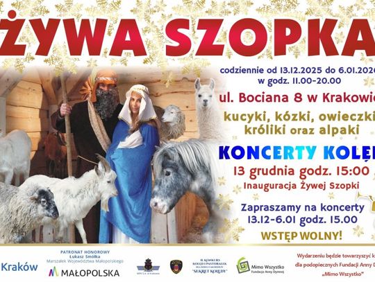 Żywa Szopka przy ulicy Bociana 8 zaprasza gości codziennie w godzinach od 11:00 do 20:00 na niezwykłe doświadczenie bożonarodzeniowej tradycji w ciepłej, rodzinnej atmosferze. Centralnym punktem wydarzenia jest naturalnych rozmiarów stajenka betlejemska, która pozwala odwiedzającym przenieść się w unikalny, świąteczny klimat.