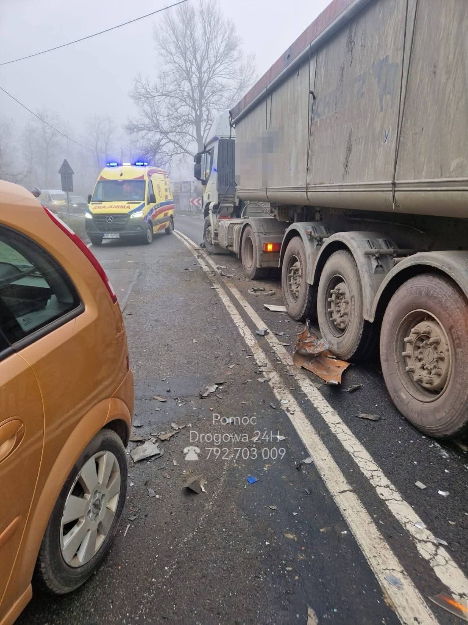Strona Małopolska Alarmowo informuje o wypadku, do którego doszło w poniedziałkowe popołudnie 15 grudnia na drodze wojewódzkiej DW956. W miejscowości Sułkowice zderzyły się samochód osobowy z ciężarowym. Według najnowszych informacji jedna osoba została poszkodowana i trafiła pod opiekę ratowników medycznych.