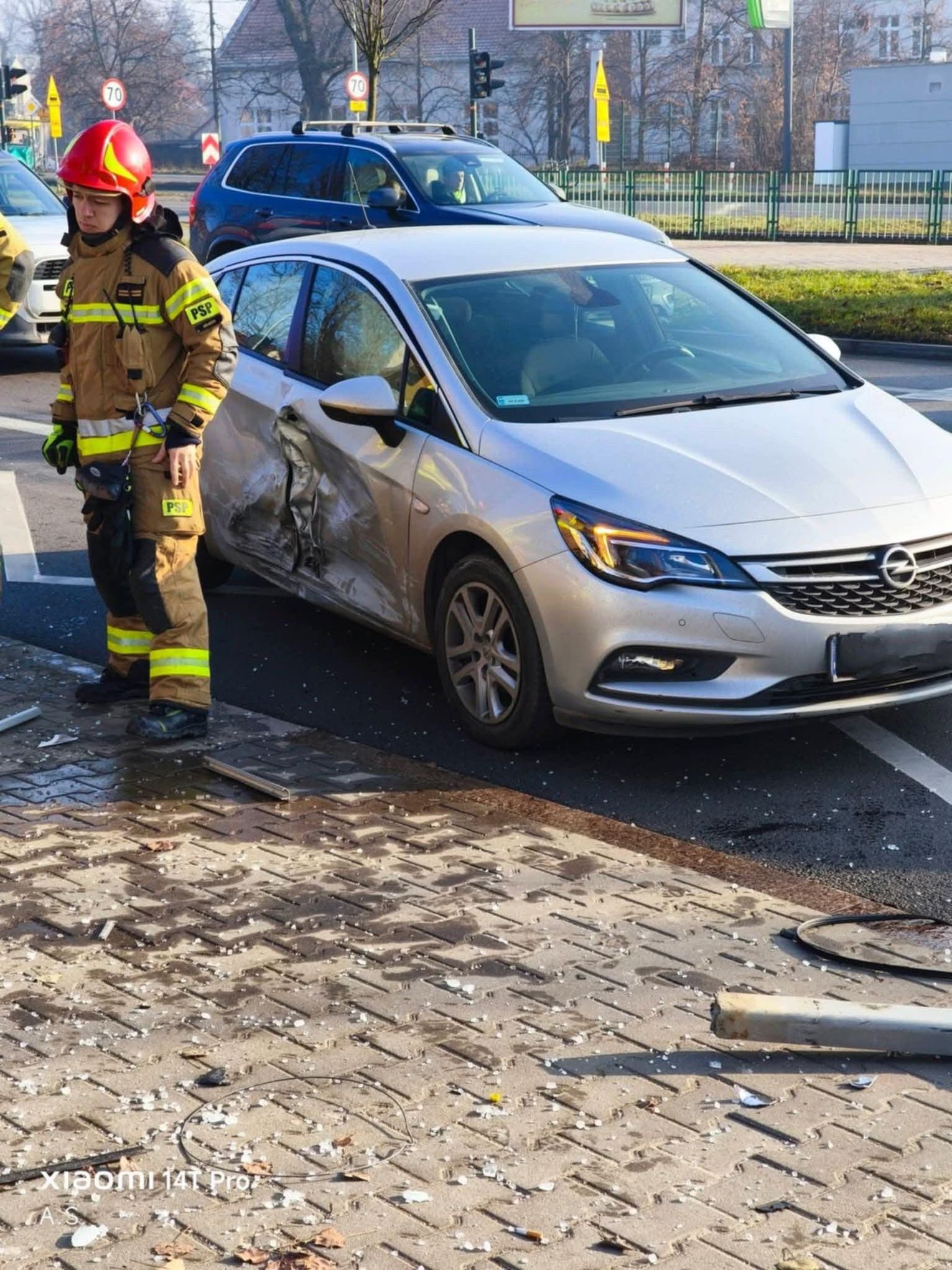 W piątkowe południe 19 grudnia na skrzyżowaniu Alei Pokoju z ulicą Gałczyńskiego w Krakowie doszło do groźnie wyglądającego zdarzenia drogowego. Po zderzeniu dwóch samochodów osobowych, jeden z pojazdów wypadł z drogi i uderzył w przystanek MPK. Na całe szczęście nikt z podróżujących osobówkami, ani pasażerów czekających na autobus komunikacji miejskiej nie odniósł obrażeń.