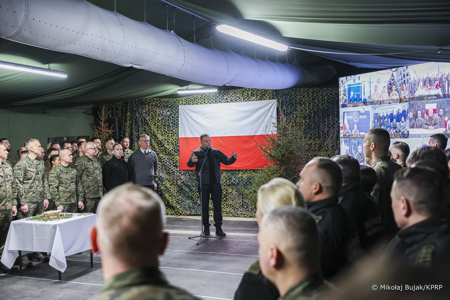 Zwierzchnik Sił Zbrojnych wyraził swój głęboki szacunek do polskiego munduru, wskazując, że obecność Prezydenta na wigilii wśród żołnierzy jest najbardziej wymownym sposobem na wypowiedzenie słowa „dziękuję”. Podkreślił przy tym, że duma narodu z postawy funkcjonariuszy i żołnierzy jest w pełni zasłużona, gdyż to dzięki ich poświęceniu granice pozostają nienaruszone.