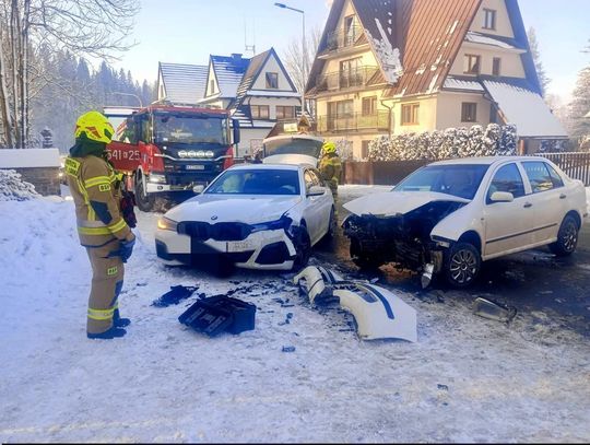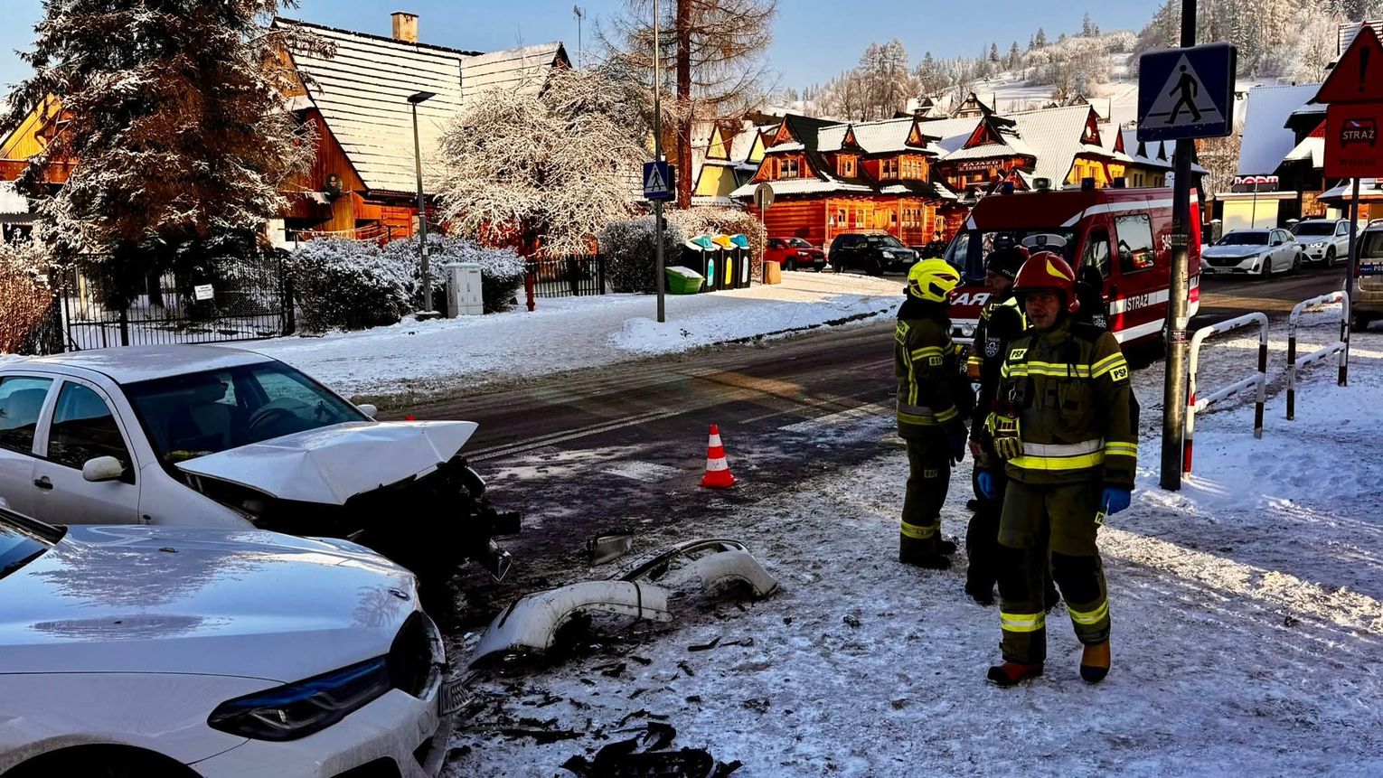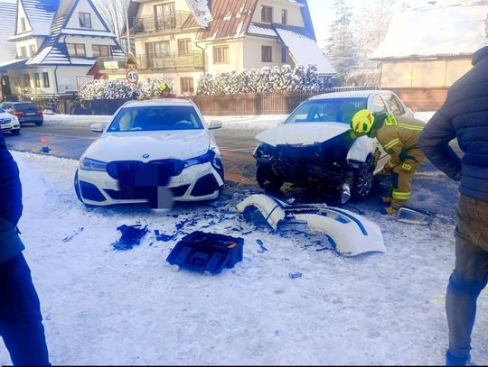 Czołowe zderzenie w sercu Poronina i akcja ratunkowa