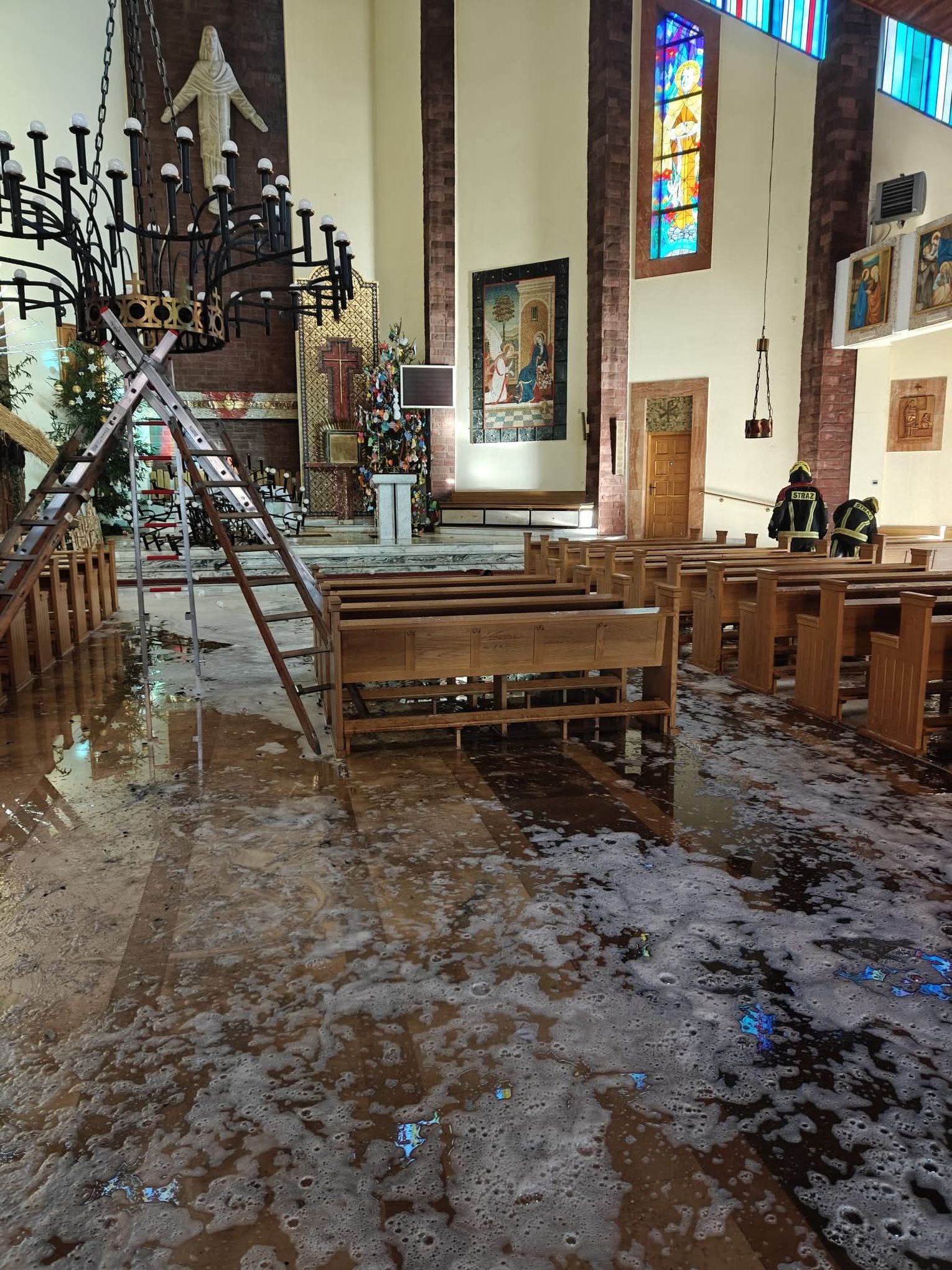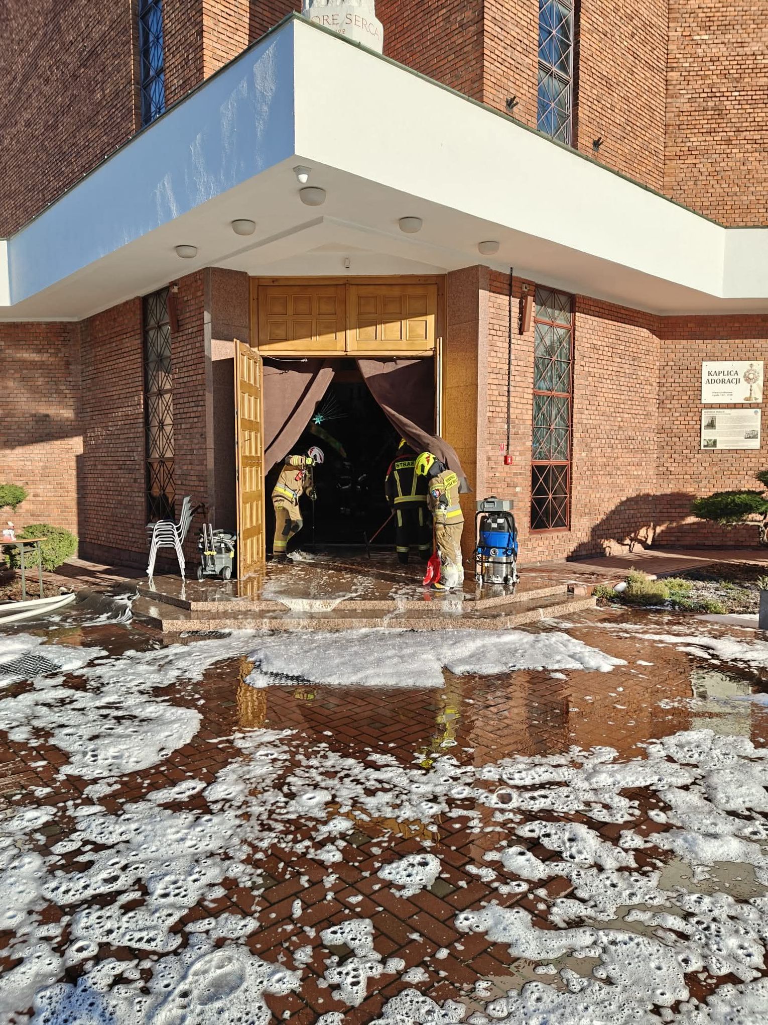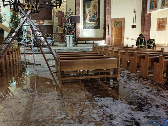 W piwnicach kościoła znajduje się kaplica, którą służby starały się za wszelką cenę uratować przed przesiąkającą wilgocią. Usunięcie ogromnych ilości wody było priorytetem, aby nie dopuścić do degradacji podziemnej części obiektu i uniknąć jeszcze większych strat materialnych. Strażacy starali się pracować precyzyjnie, kierując strumienie wody tak, aby jak najmniej ucierpiało serce parafii, jednak przy tak intensywnym pożarze dachu zalania okazały się nieuniknione.