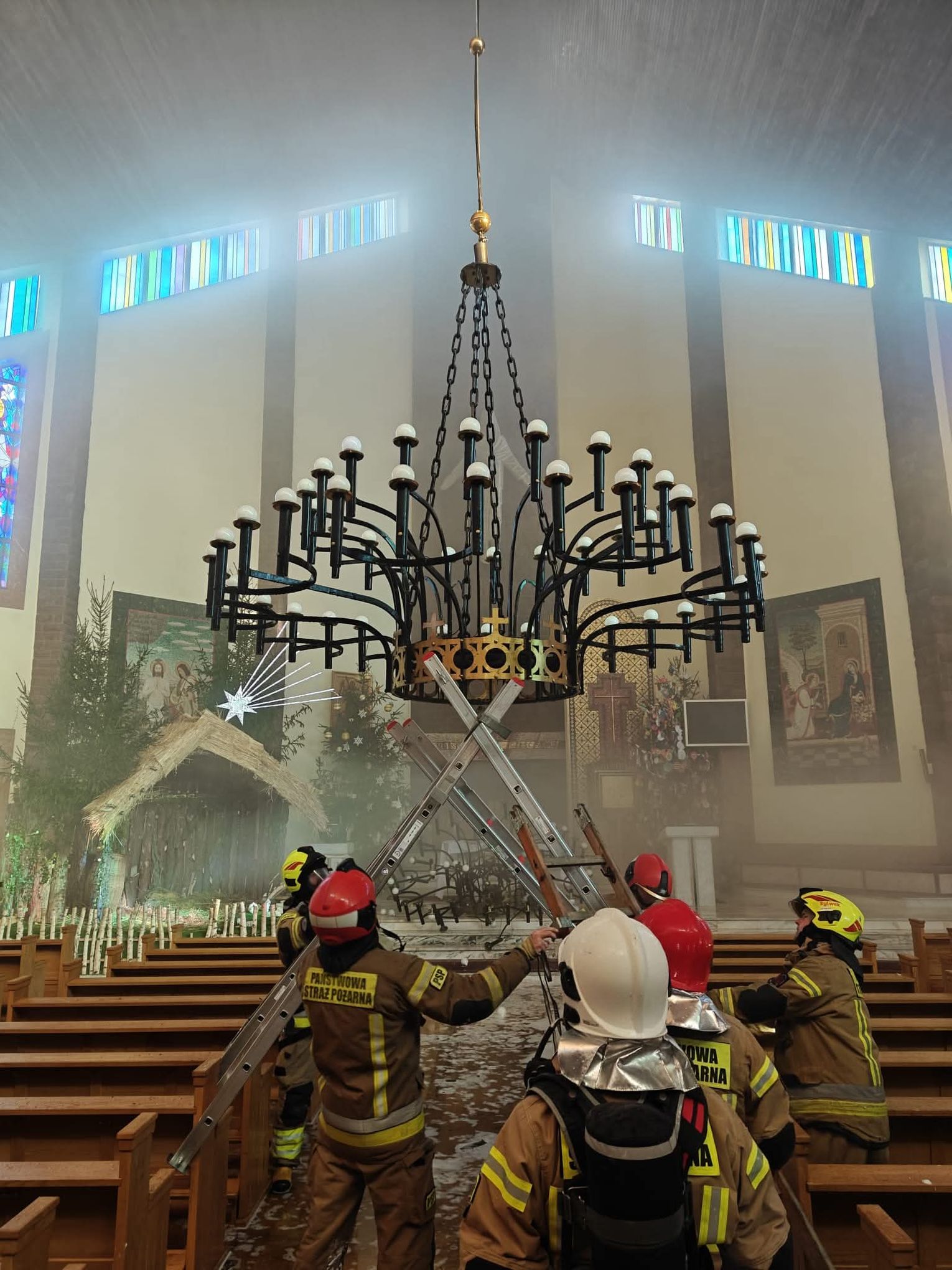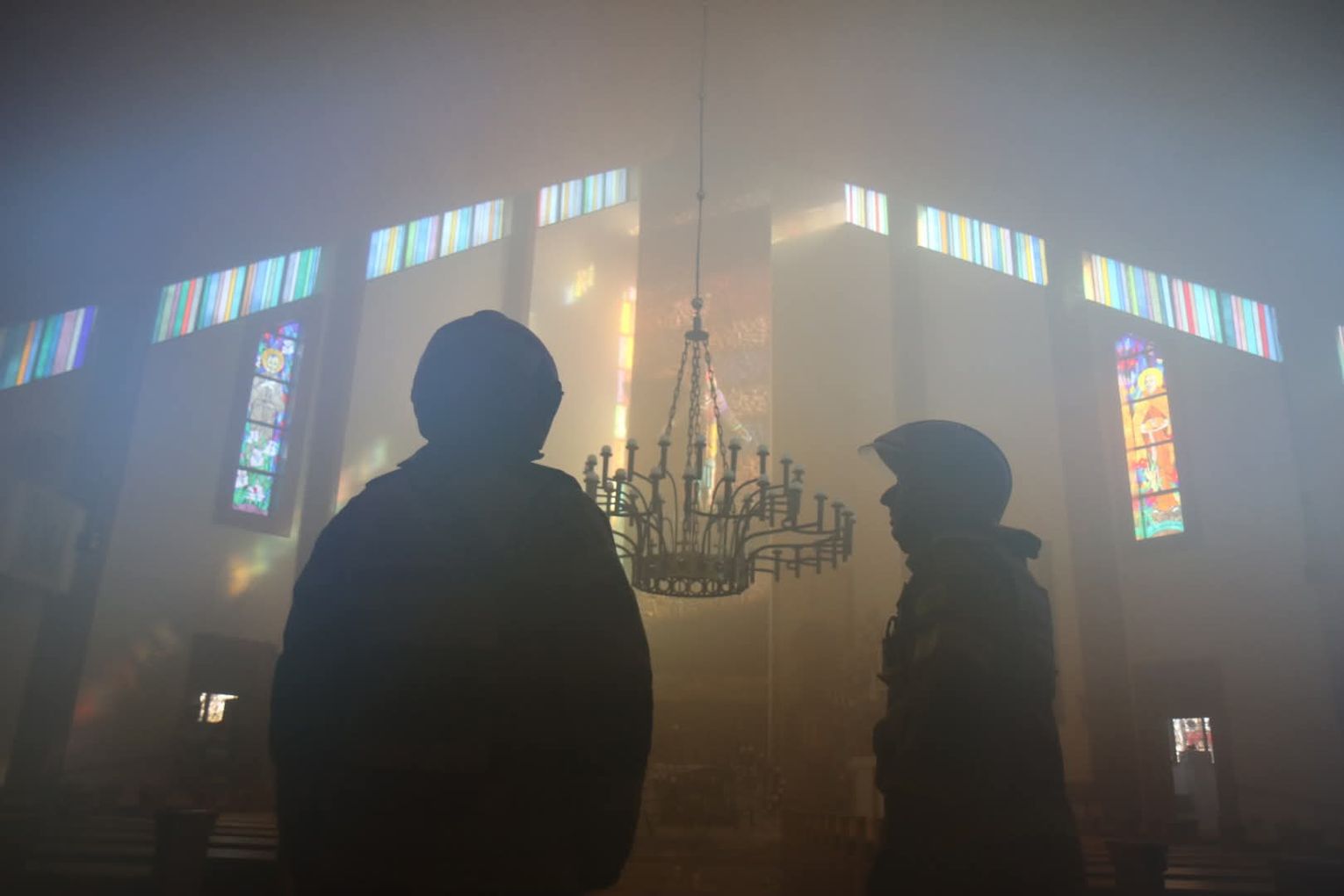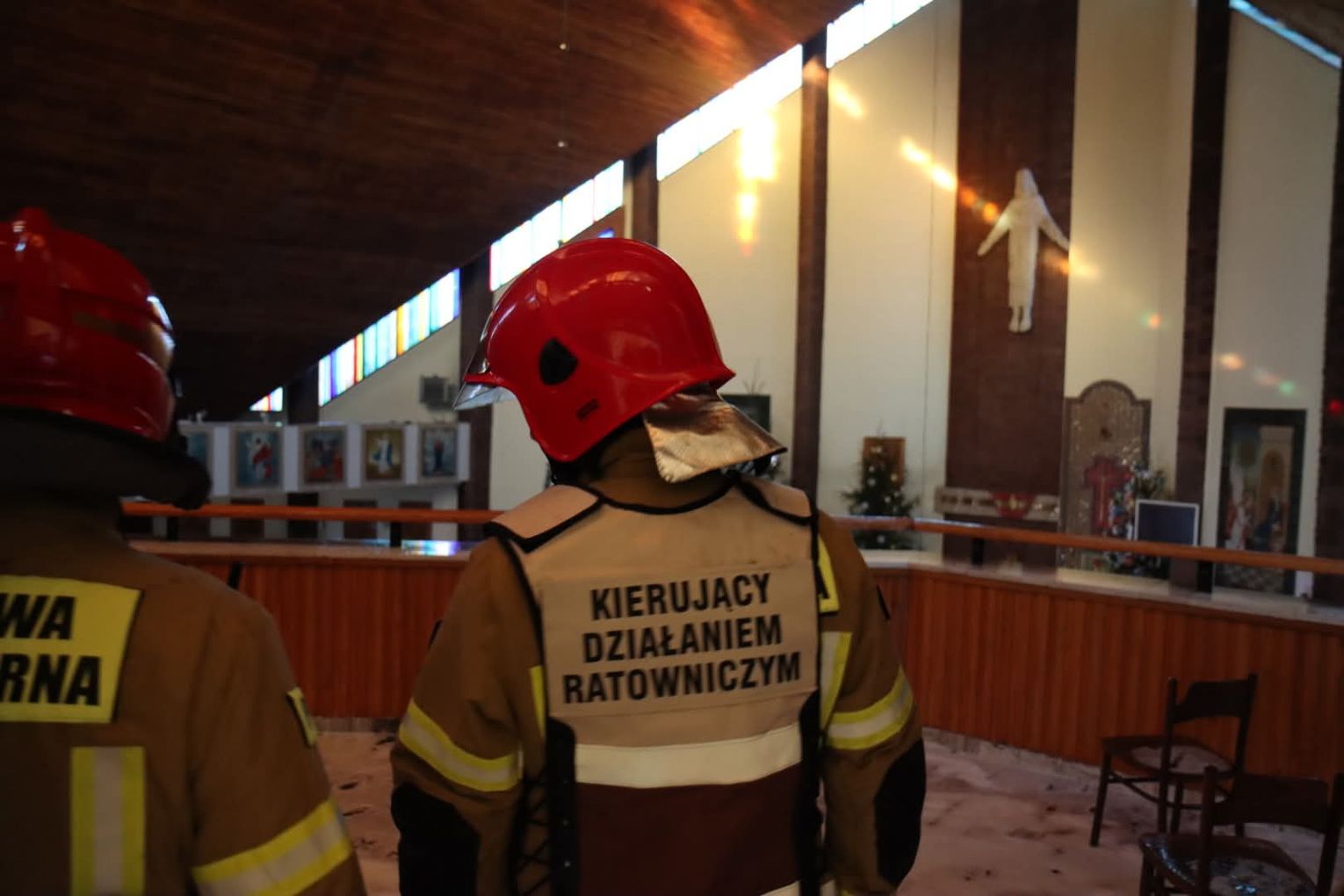 Mimo że ogień koncentrował się na poszyciu dachowym, strażacy prowadzili równolegle działania mające na celu ochronę bezcennego wnętrza świątyni. Prewencyjnie wyniesiono elementy ruchome, w tym figury świętych, obrazy oraz szaty liturgiczne, zabezpieczając je przed zniszczeniem. Choć wnętrze kościoła nie uległo spaleniu, ogromnym zagrożeniem stała się woda wykorzystywana do tłumienia płomieni. Ratownicy robili wszystko, aby zminimalizować zalania, szczególnie z myślą o dolnej kondygnacji budynku.