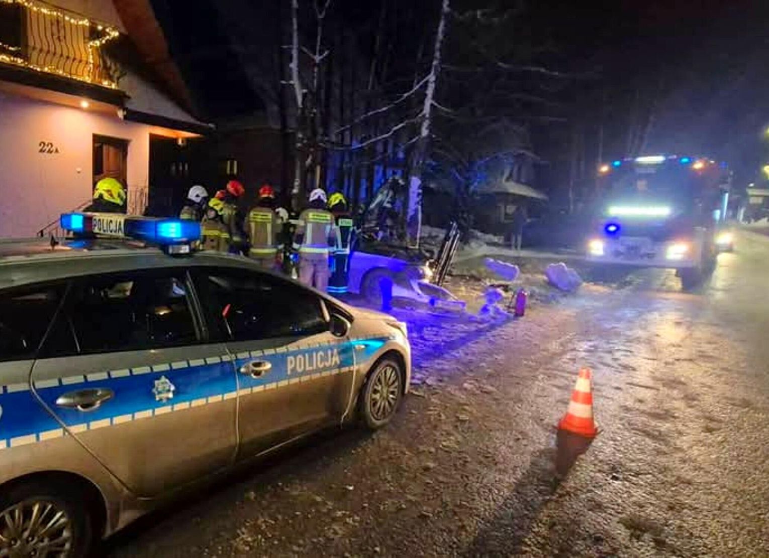 W sobotni wieczór 27 grudnia na terenie miejscowości Suche w powiecie tatrzańskim doszło do bardzo groźnego wypadku drogowego z udziałem jednego samochodu osobowego. Kierowca z nieznanych przyczyn stracił panowanie nad pojazdem, który wypadł z drogi i uderzył w przydrożne drzewo.