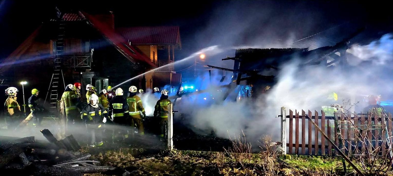 Pożar wybuchł w gęstej zabudowie, co zawsze stanowi ogromne wyzwanie dla jednostek ochrony przeciwpożarowej. Płomienie widoczne z odległości wielu kilometrów szybko objęły konstrukcję budynków gospodarczych, a wysoka temperatura i silny wiatr sprawiły, że żywioł zaczął zagrażać przyległemu budynkowi mieszkalnemu.