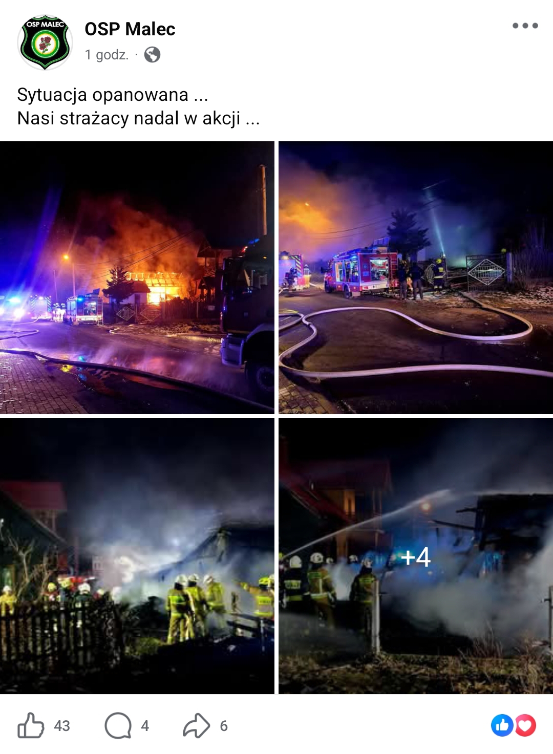 Po kilkudziesięciu minutach niezwykle intensywnych działań, dowódca akcji przekazał optymistyczne informacje o opanowaniu sytuacji. Strażakom udało się „odciąć” ogień od części mieszkalnej, zapobiegając jej całkowitemu zniszczeniu.