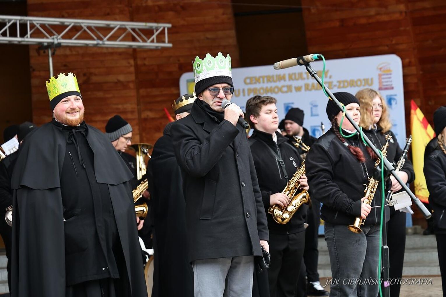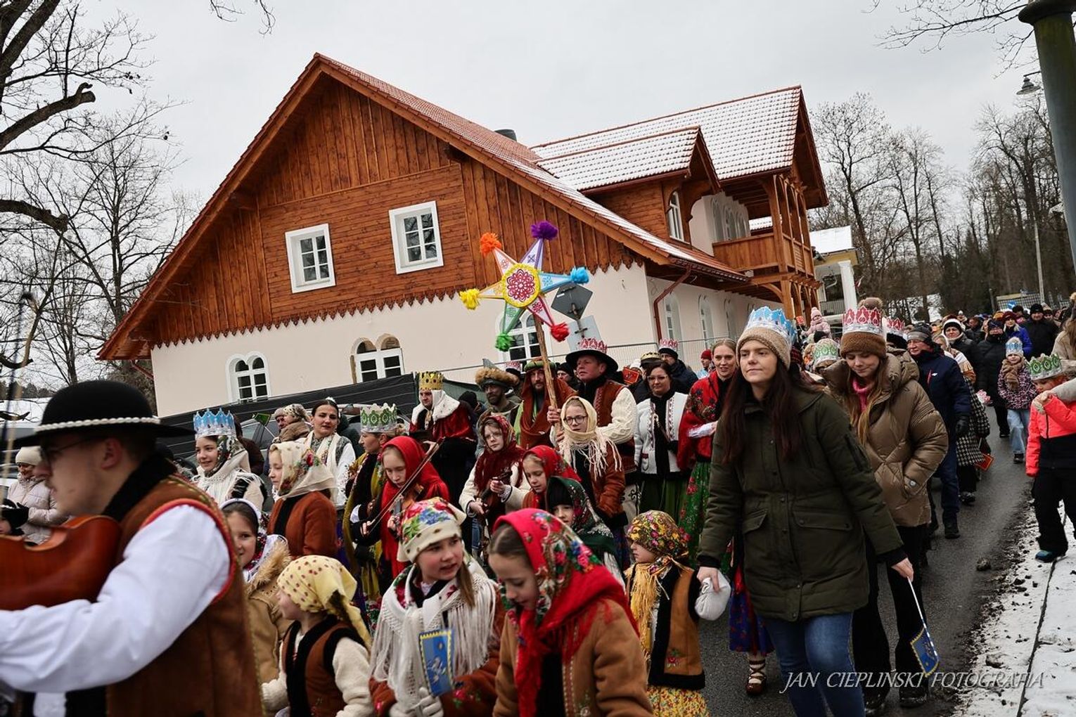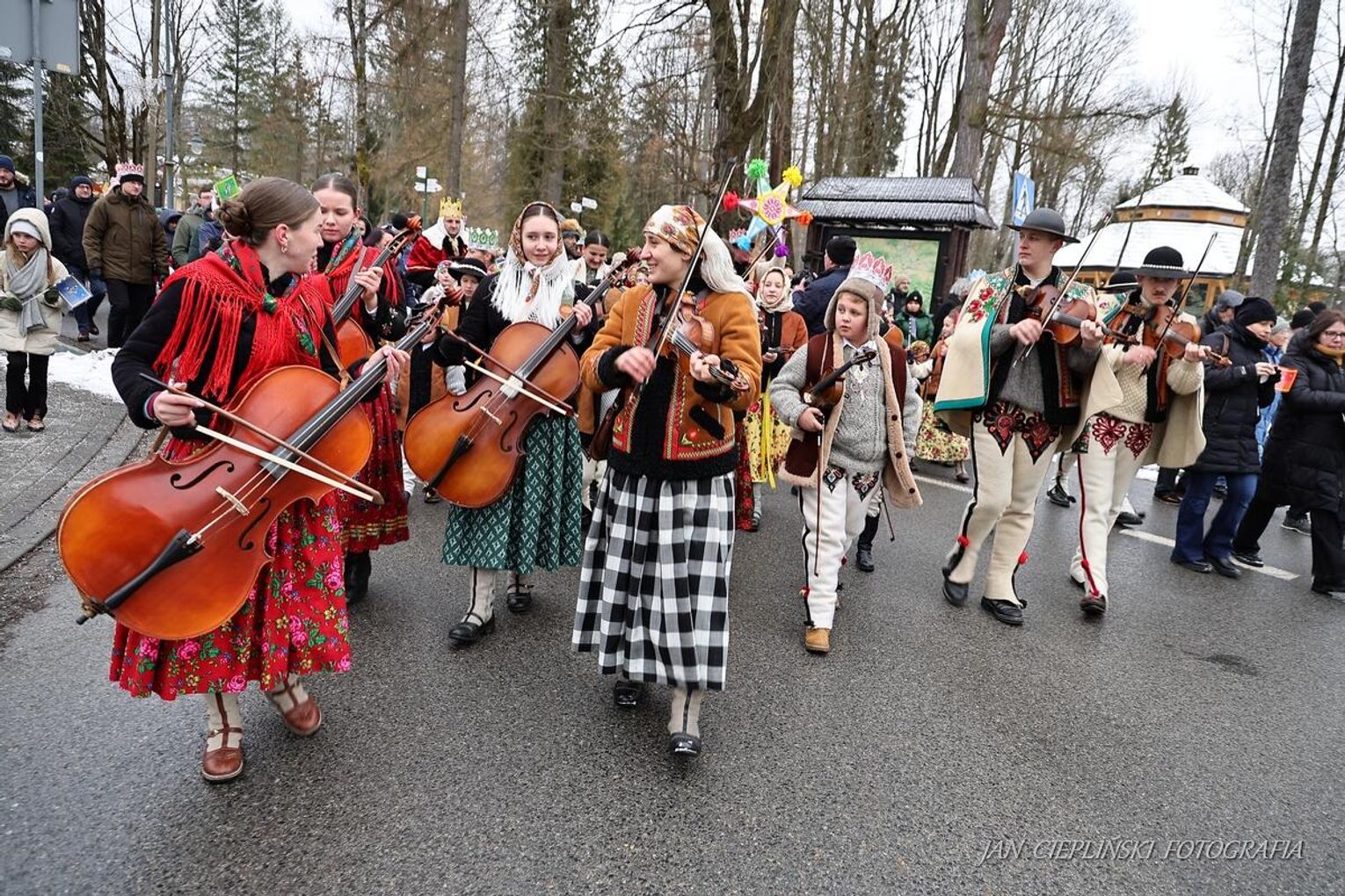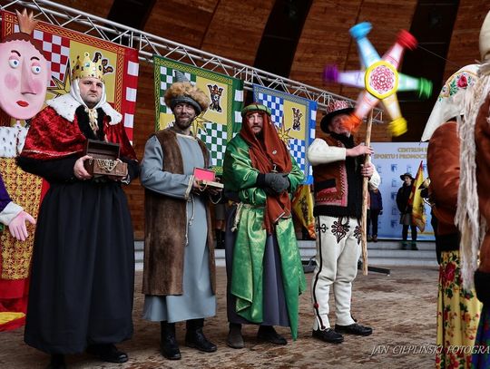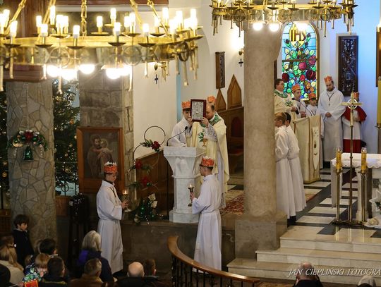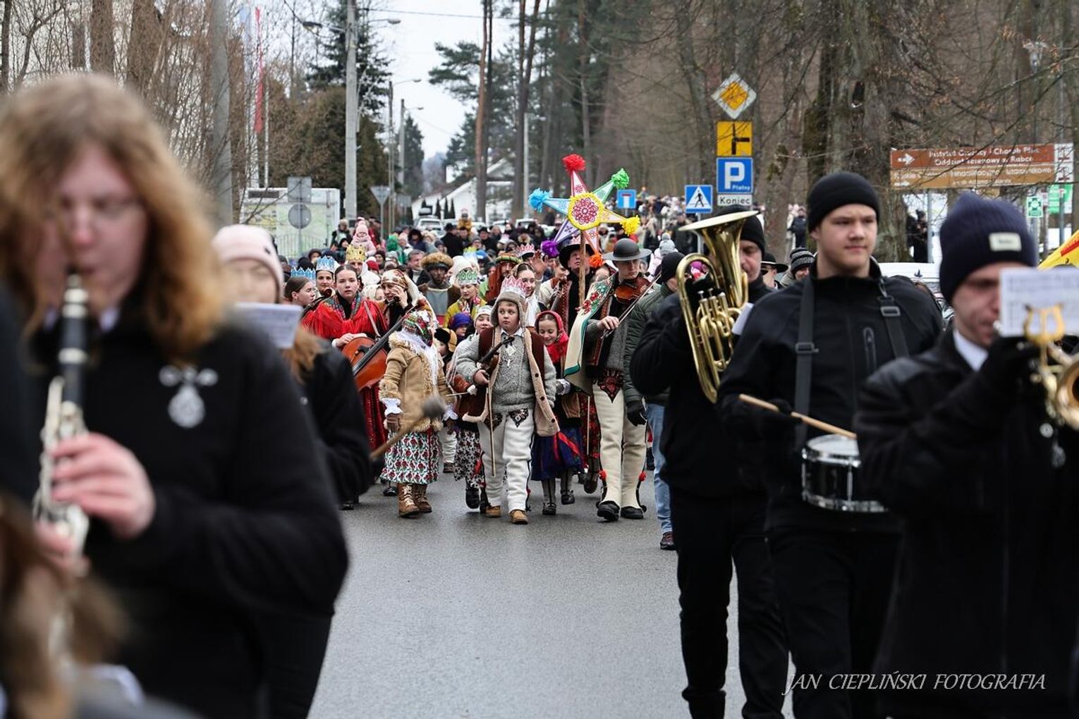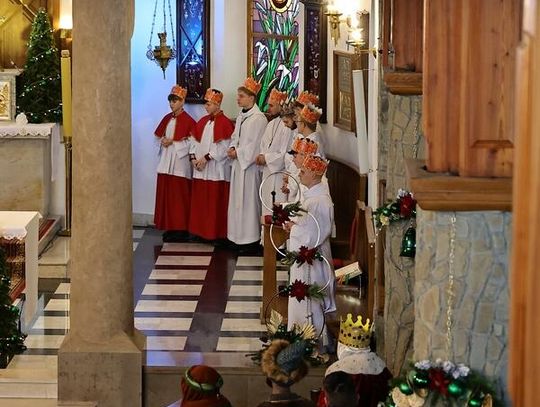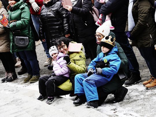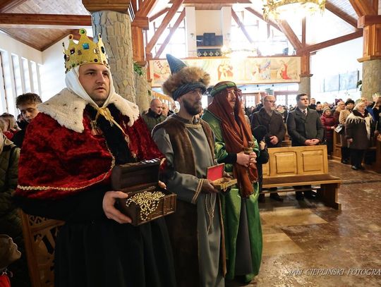 Po zakończeniu liturgii uformował się imponujący orszak, na czele którego stanęli symboliczni Trzej Królowie. W procesji ramię w ramię z duchowieństwem szli przedstawiciele władz samorządowych z Burmistrzem Rabki-Zdroju Leszkiem Świdrem na czele. Uczestnicy pochodu, zgodnie z tradycją, przyozdobili głowy tekturowymi koronami, a w dłoniach nieśli okolicznościowe chorągwie orszakowe.