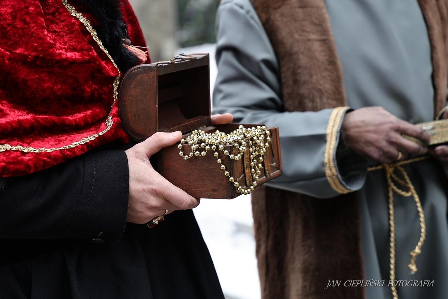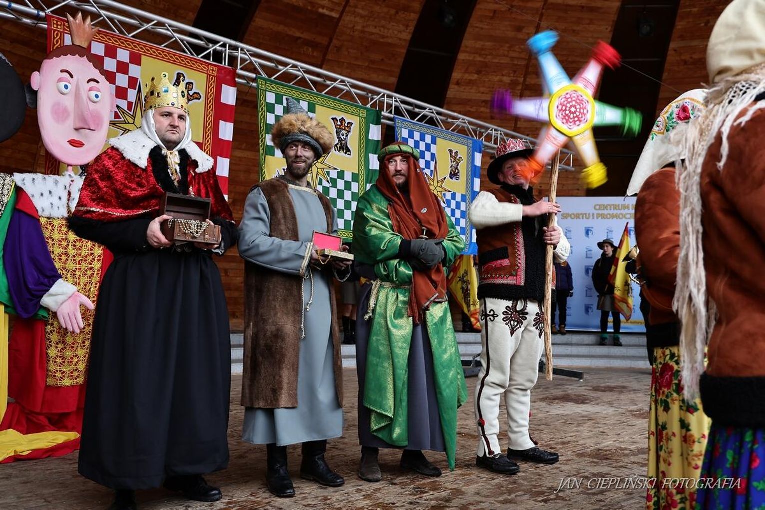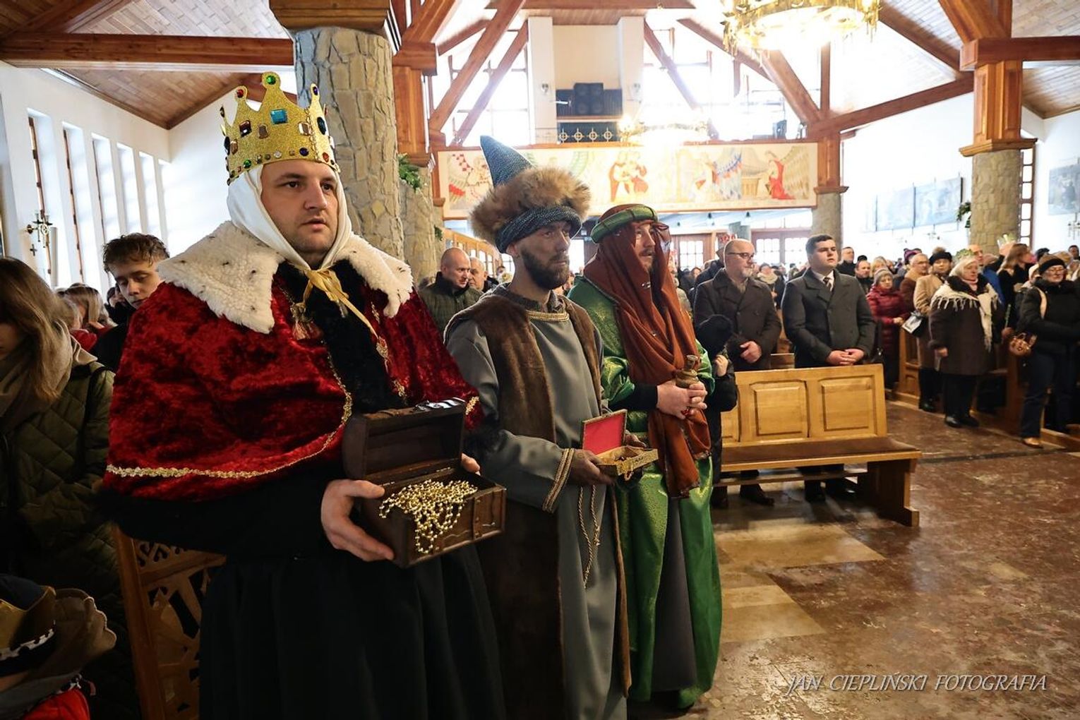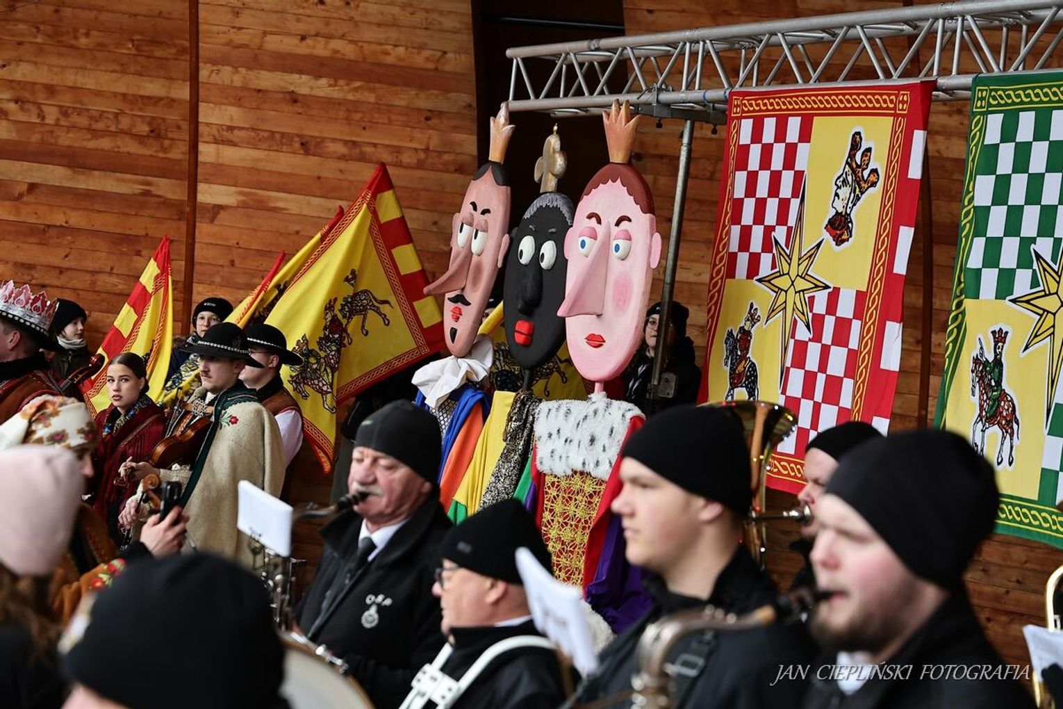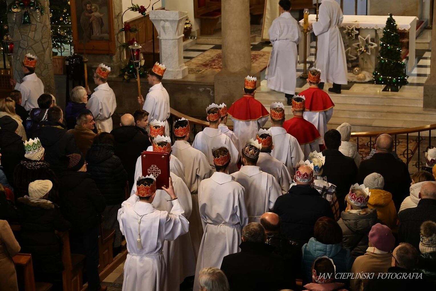 Po zakończeniu liturgii uformował się imponujący orszak, na czele którego stanęli symboliczni Trzej Królowie. W procesji ramię w ramię z duchowieństwem szli przedstawiciele władz samorządowych z Burmistrzem Rabki-Zdroju Leszkiem Świdrem na czele. Uczestnicy pochodu, zgodnie z tradycją, przyozdobili głowy tekturowymi koronami, a w dłoniach nieśli okolicznościowe chorągwie orszakowe.