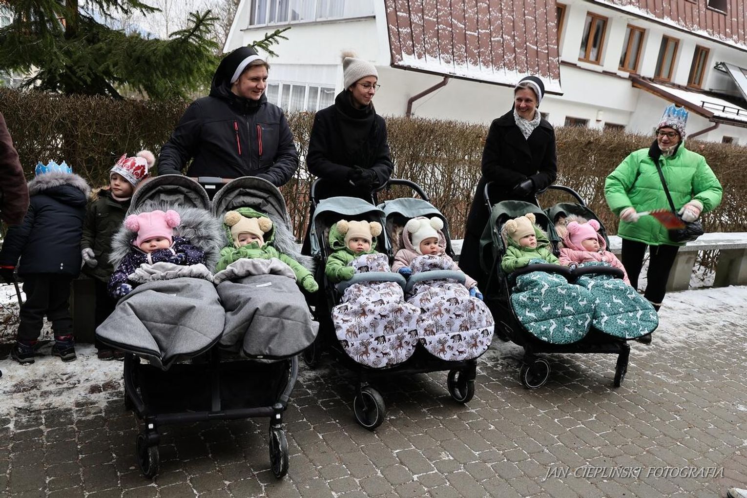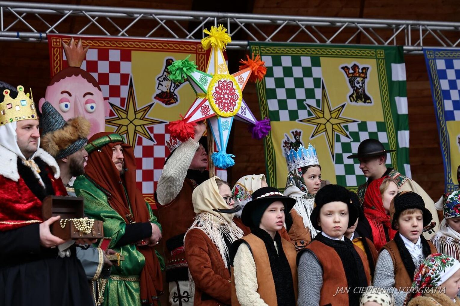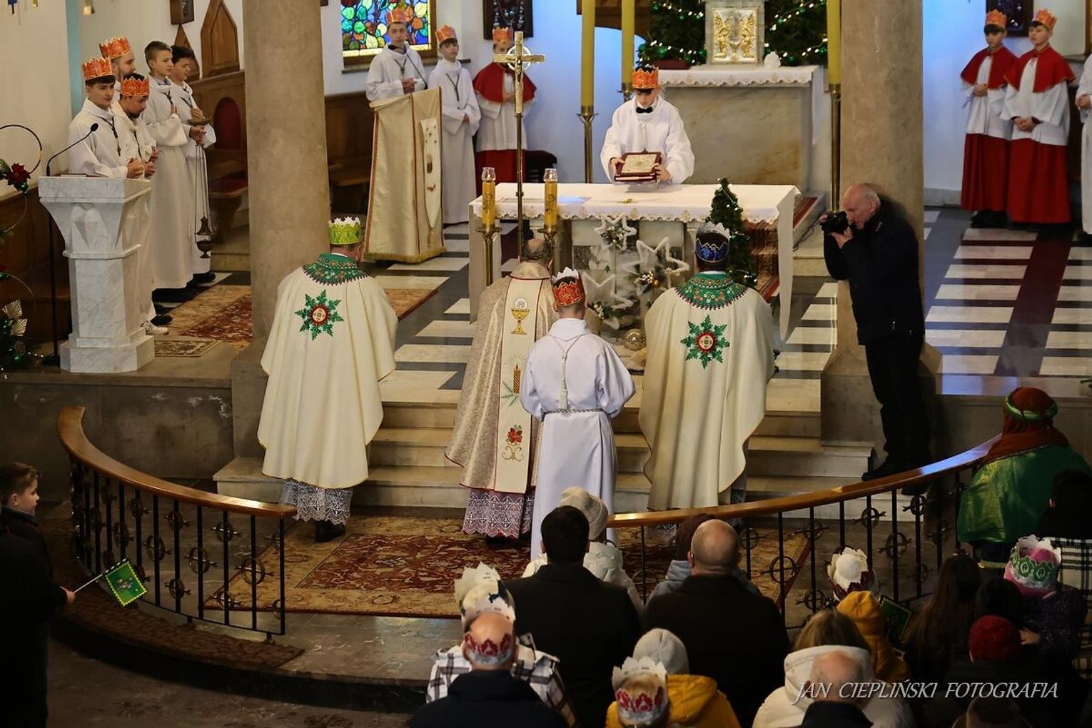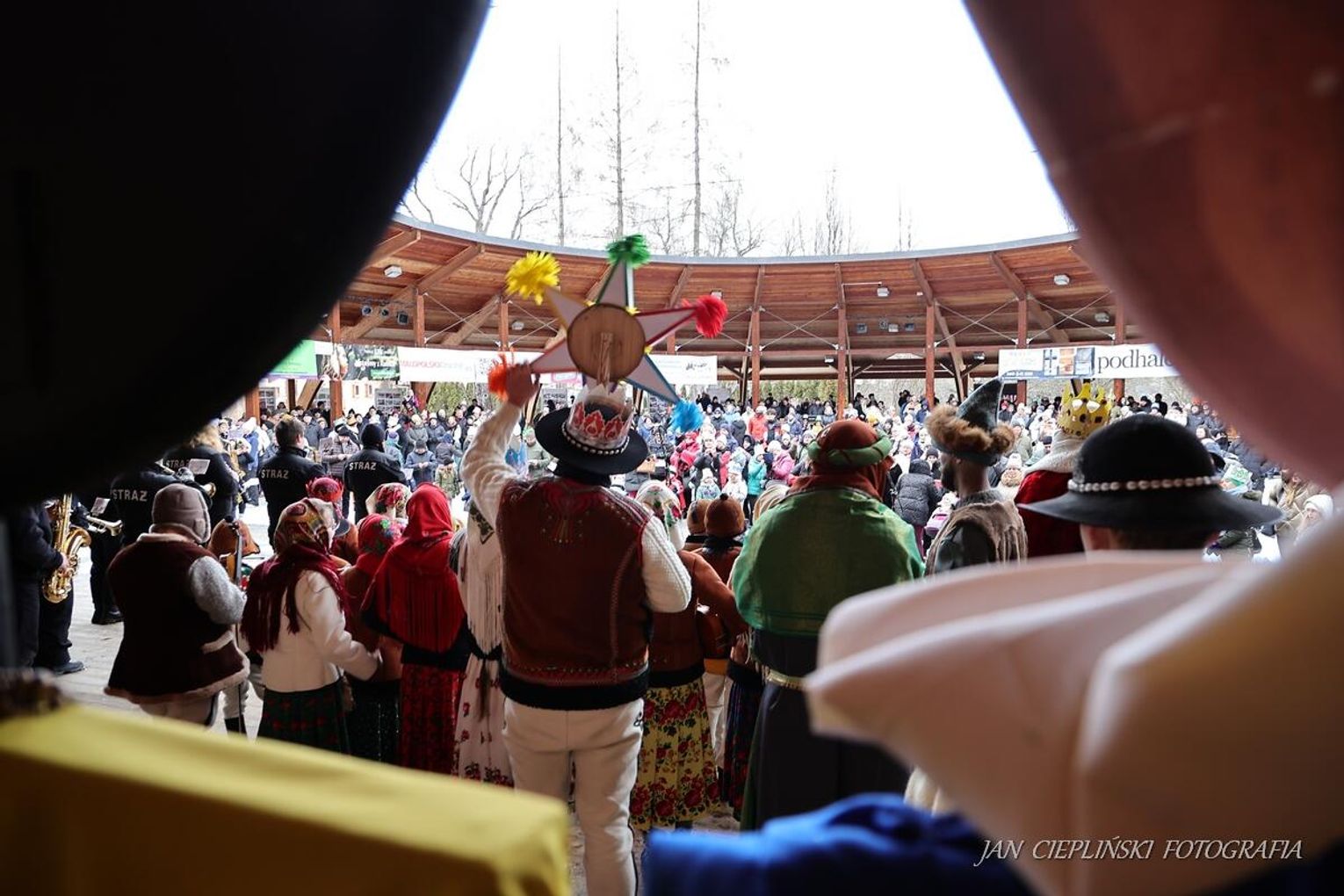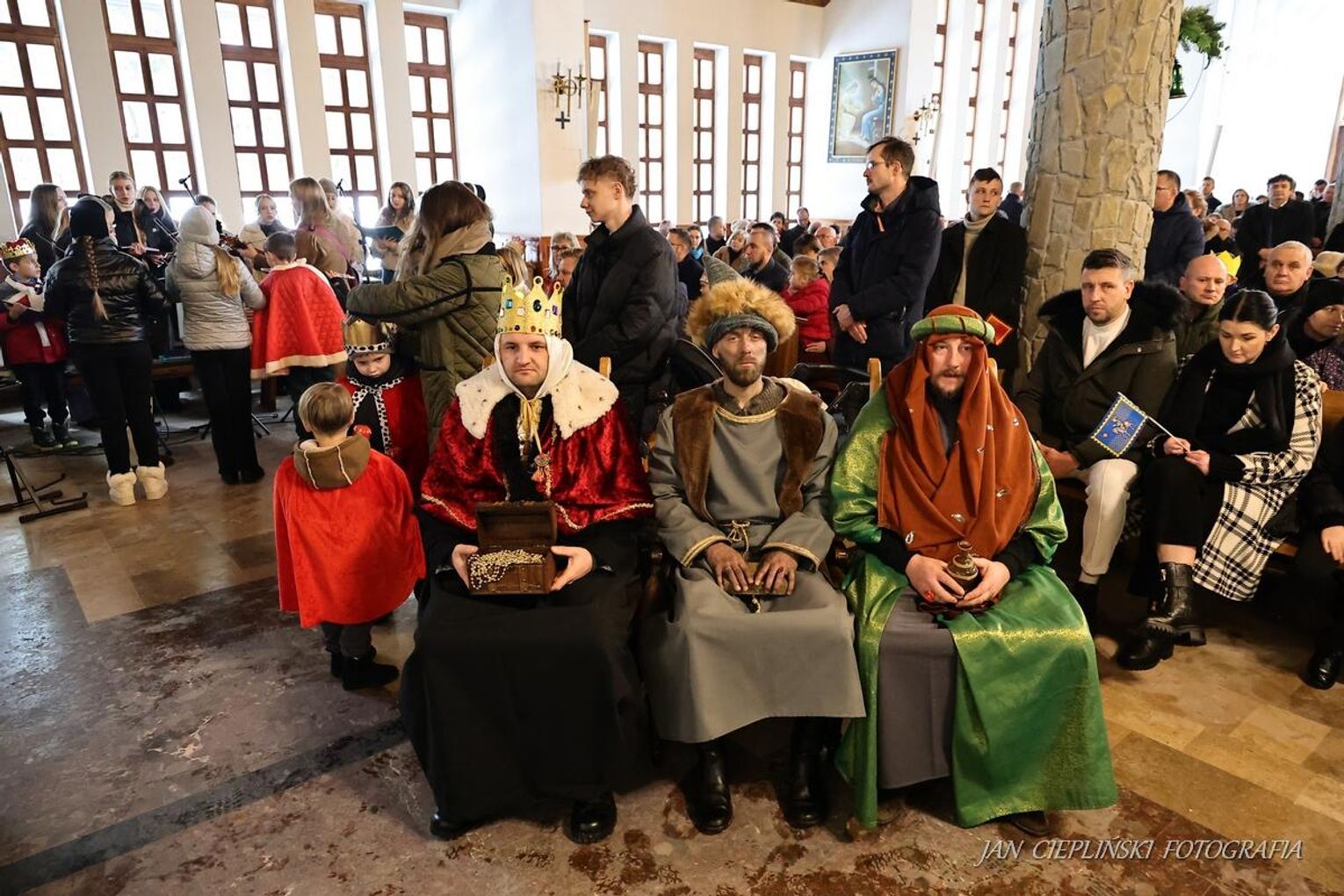 Po zakończeniu liturgii uformował się imponujący orszak, na czele którego stanęli symboliczni Trzej Królowie. W procesji ramię w ramię z duchowieństwem szli przedstawiciele władz samorządowych z Burmistrzem Rabki-Zdroju Leszkiem Świdrem na czele. Uczestnicy pochodu, zgodnie z tradycją, przyozdobili głowy tekturowymi koronami, a w dłoniach nieśli okolicznościowe chorągwie orszakowe.