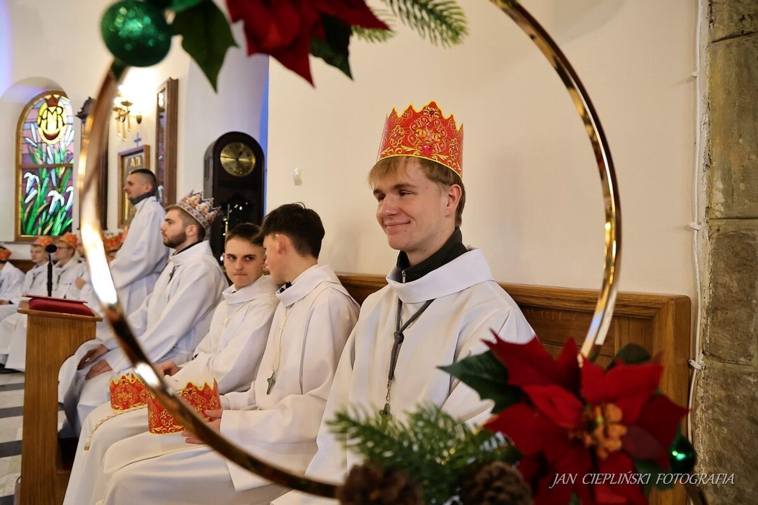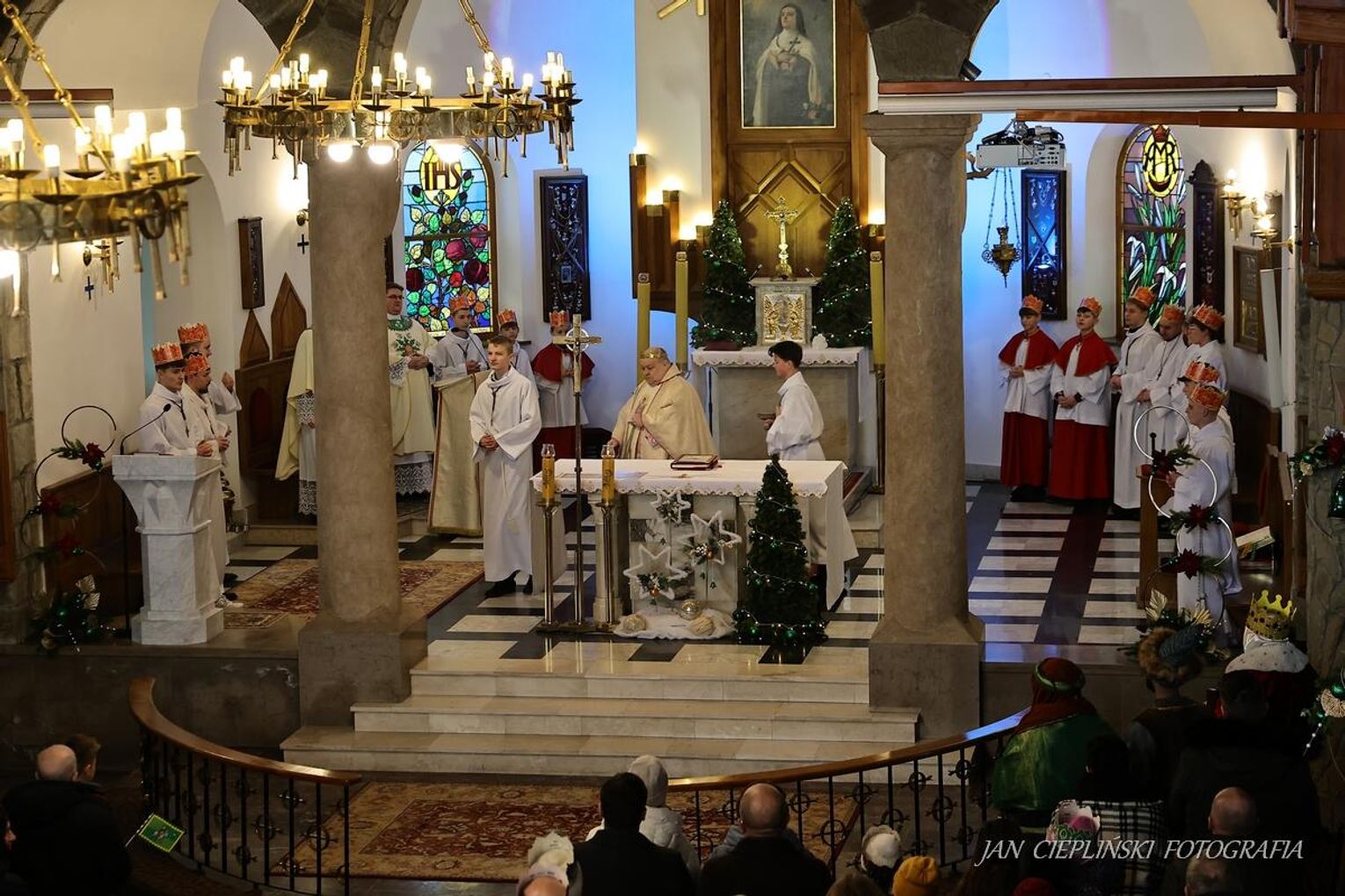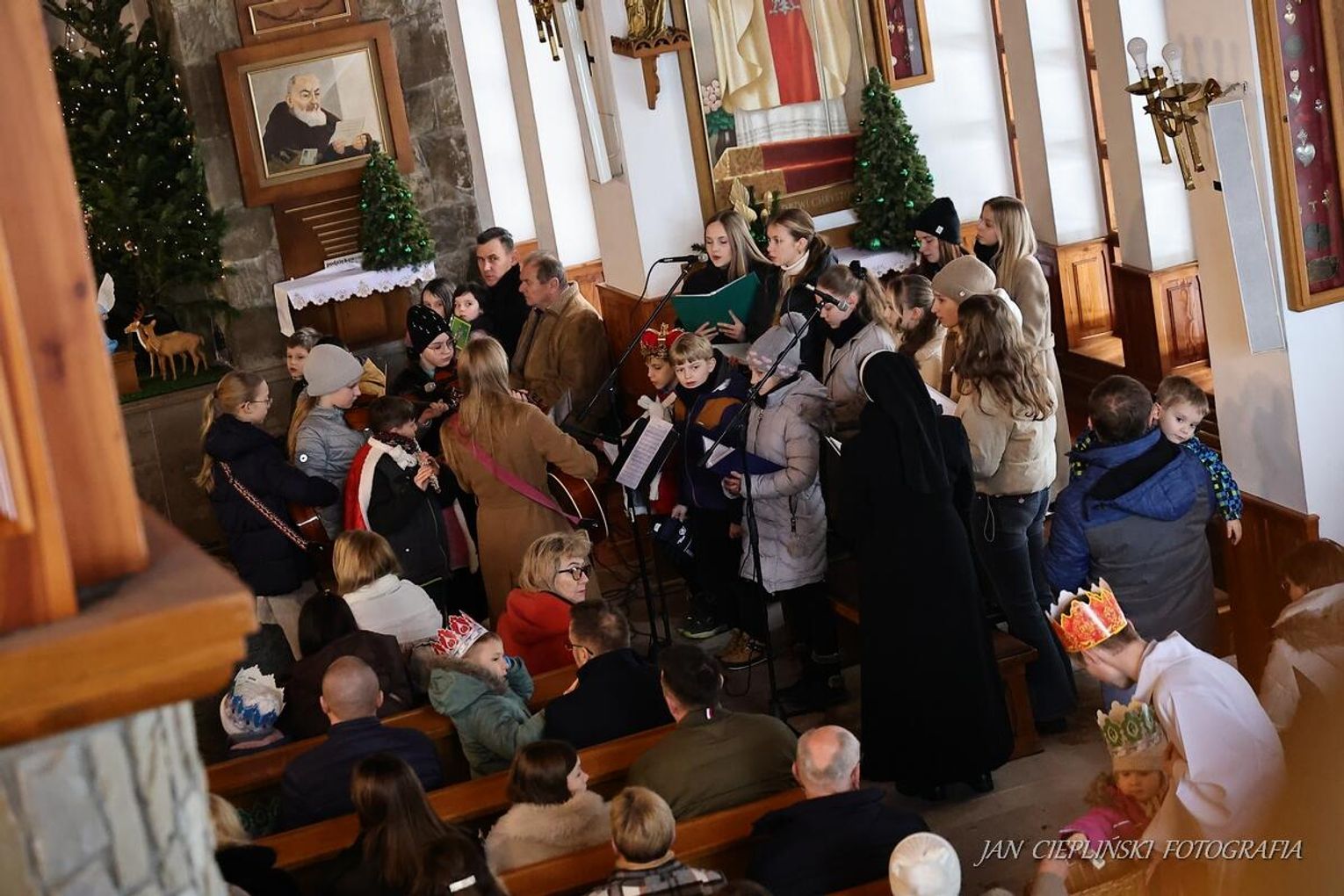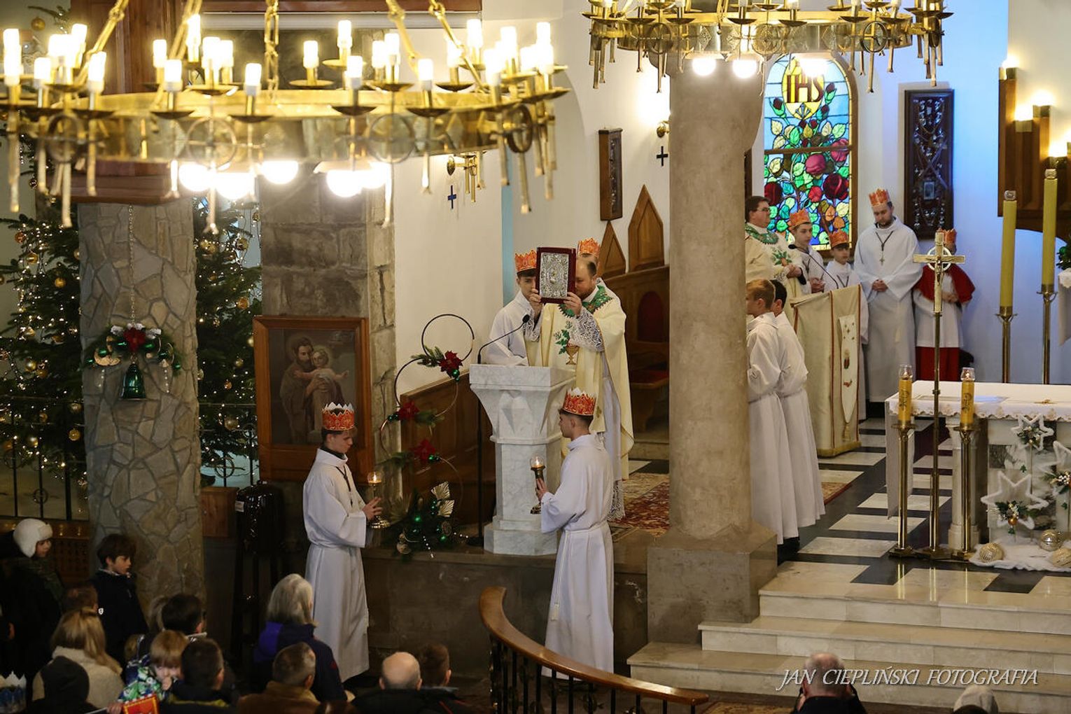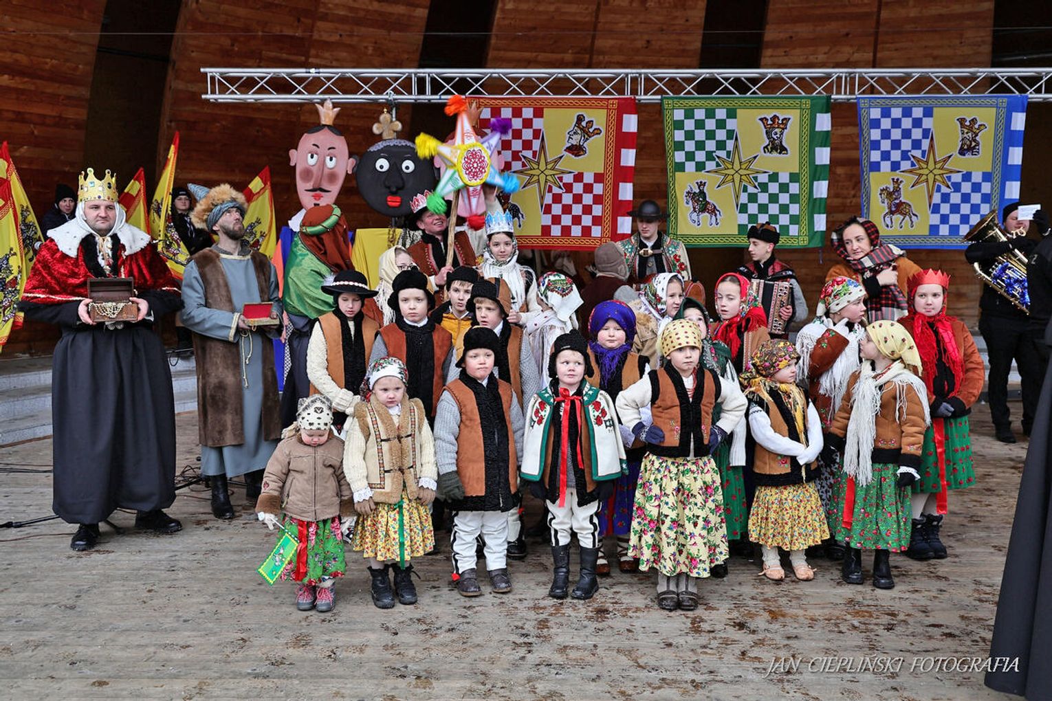 Po zakończeniu liturgii uformował się imponujący orszak, na czele którego stanęli symboliczni Trzej Królowie. W procesji ramię w ramię z duchowieństwem szli przedstawiciele władz samorządowych z Burmistrzem Rabki-Zdroju Leszkiem Świdrem na czele. Uczestnicy pochodu, zgodnie z tradycją, przyozdobili głowy tekturowymi koronami, a w dłoniach nieśli okolicznościowe chorągwie orszakowe.