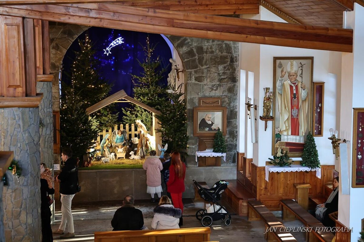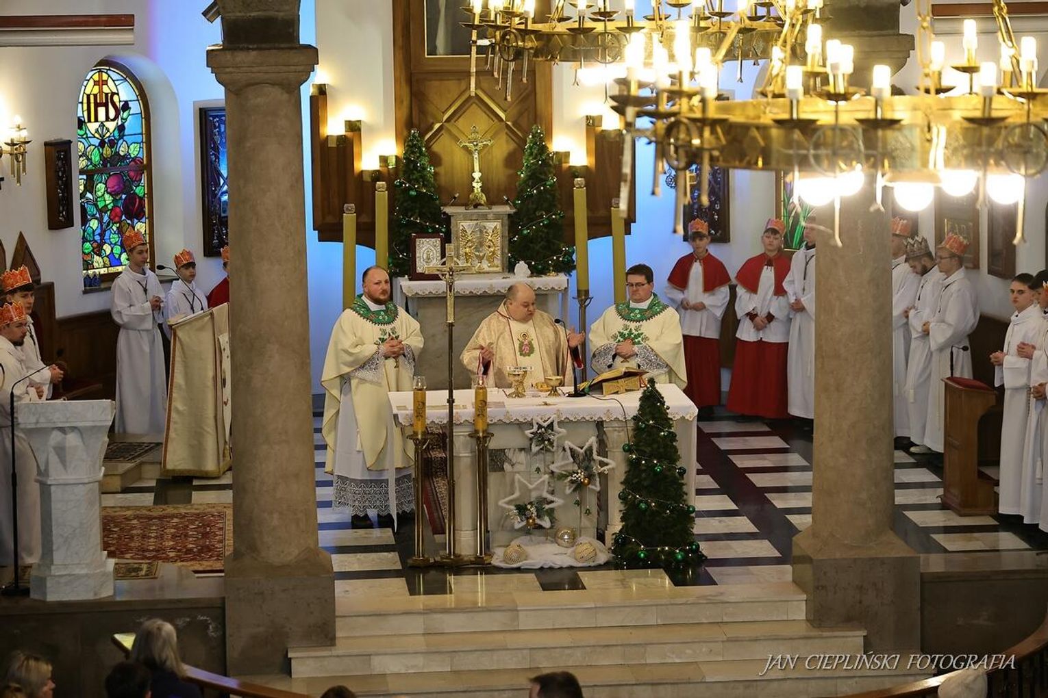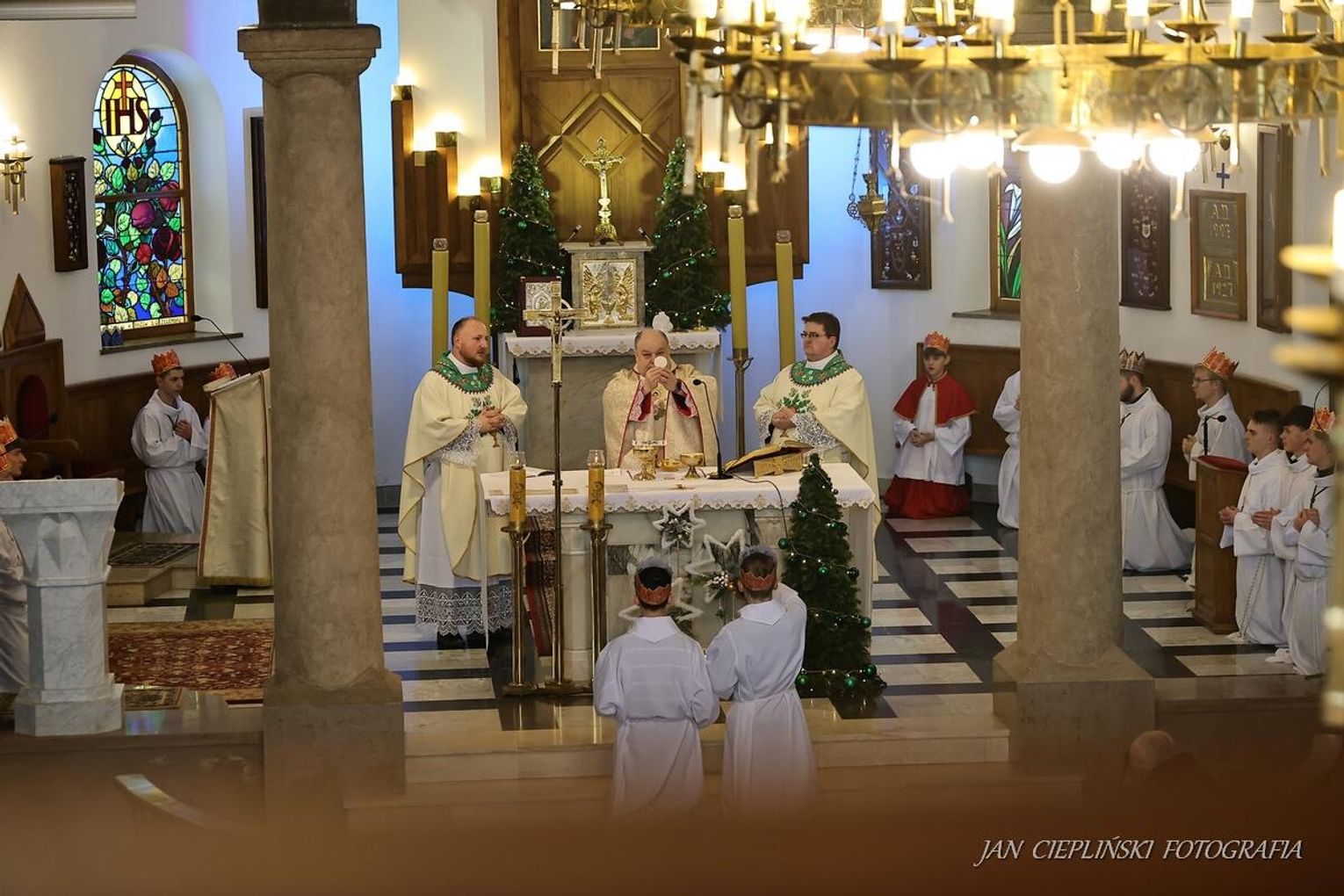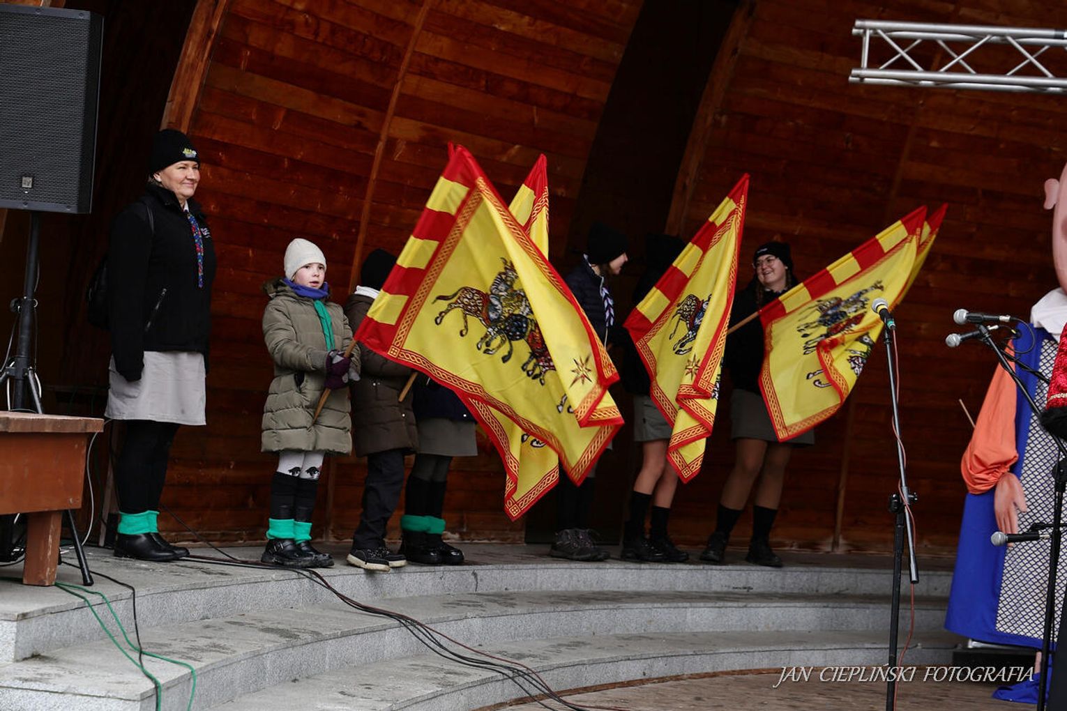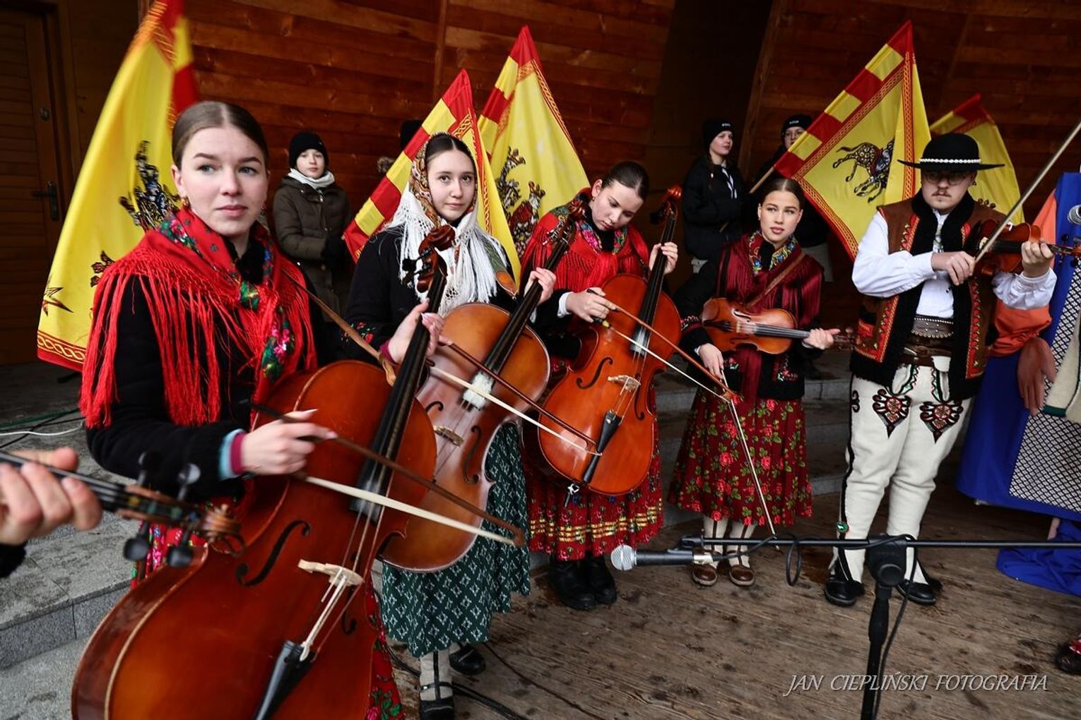 Po zakończeniu liturgii uformował się imponujący orszak, na czele którego stanęli symboliczni Trzej Królowie. W procesji ramię w ramię z duchowieństwem szli przedstawiciele władz samorządowych z Burmistrzem Rabki-Zdroju Leszkiem Świdrem na czele. Uczestnicy pochodu, zgodnie z tradycją, przyozdobili głowy tekturowymi koronami, a w dłoniach nieśli okolicznościowe chorągwie orszakowe.