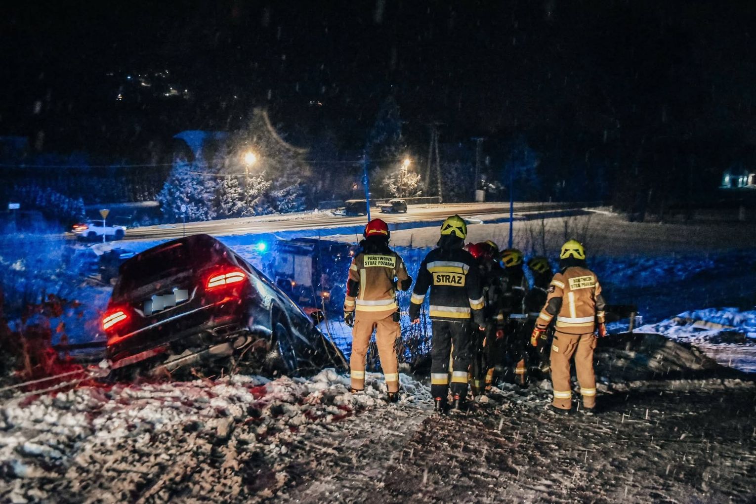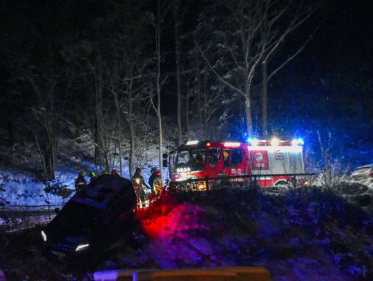 W środę wieczorem 7 stycznia przed godziną 18:00 przy ulicy Zakopiańskiej w Mszanie Dolnej służby zostały zadysponowane do nietypowego zdarzenia drogowego. W rejonie placu budowy nowej trasy kolejowej prowadzącej z Rabki Zaryte do Mszany Dolnej kierowca samochodu osobowego z nieznanych przyczyn stracił panowanie nad pojazdem, który zatrzymał się na stromej skarpie.