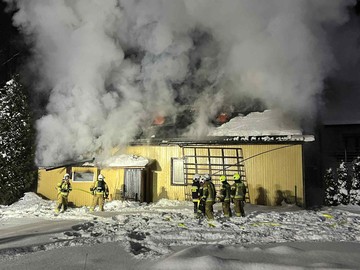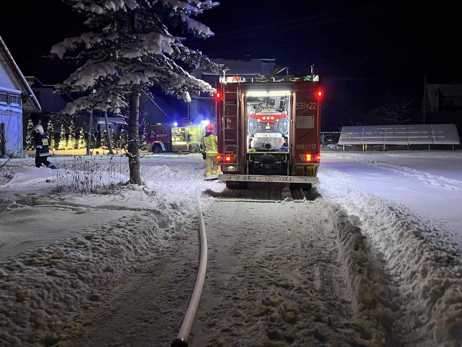 Trzon operacji gaśniczej stanowią profesjonalne składy z Jednostki Ratowniczo-Gaśniczej w Suchej Beskidzkiej. Akcja prowadzona jest w skrajnie trudnych warunkach zimowych, a wysoka temperatura oraz gęste zadymienie wymagają od ratowników pracy w specjalistycznych aparatach ochrony dróg oddechowych.