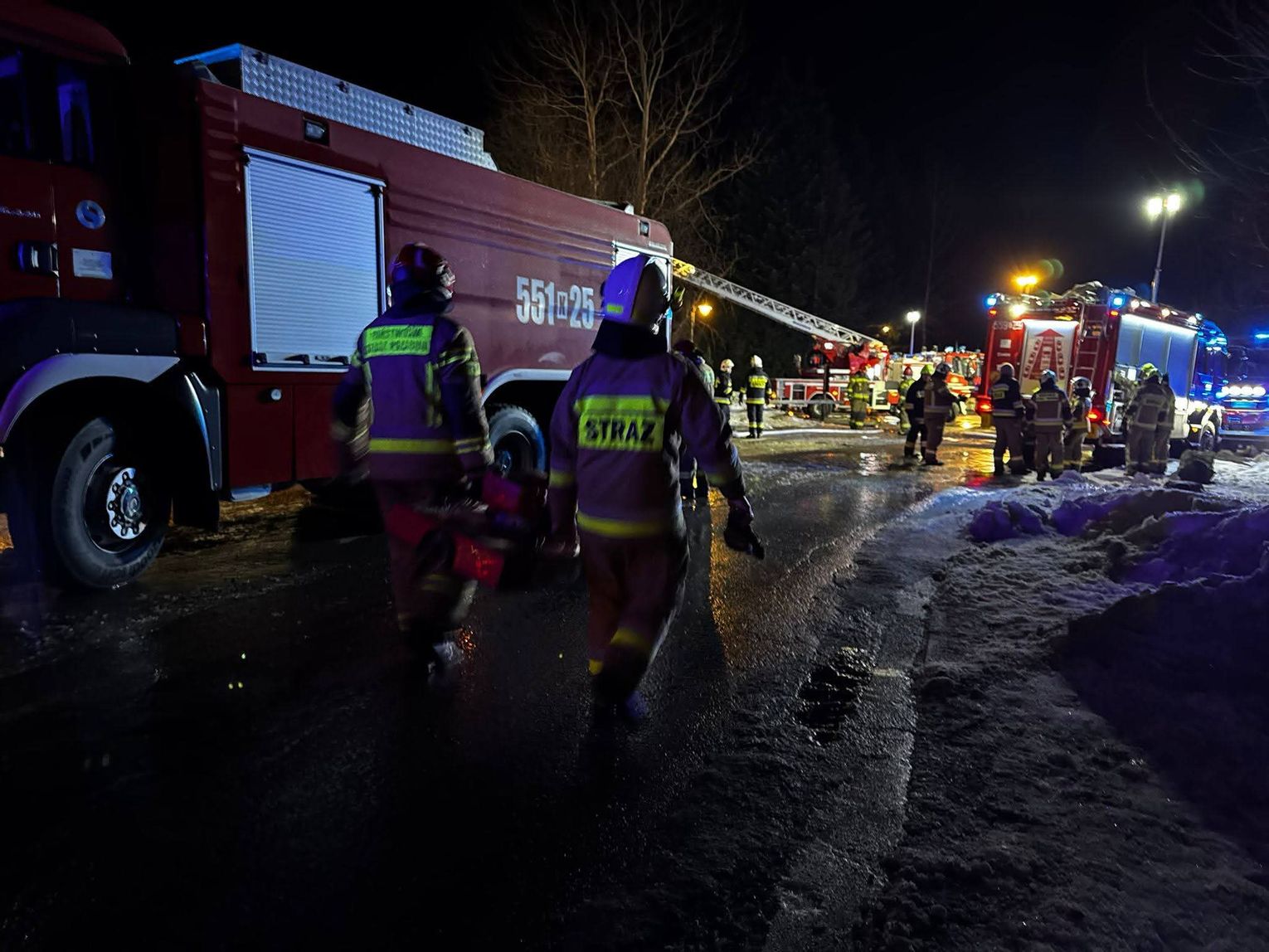 Sytuacja na miejscu była niezwykle dynamiczna i niebezpieczna ze względu na materiał, z którego wykonany był budynek. Ogień rozprzestrzeniał się błyskawicznie, obejmując kolejne kondygnacje obiektu. W wyniku zdarzenia siedem osób wymagało natychmiastowej pomocy medycznej, a trzy z nich zostały przetransportowane do pobliskich szpitali na dalszą diagnostykę.