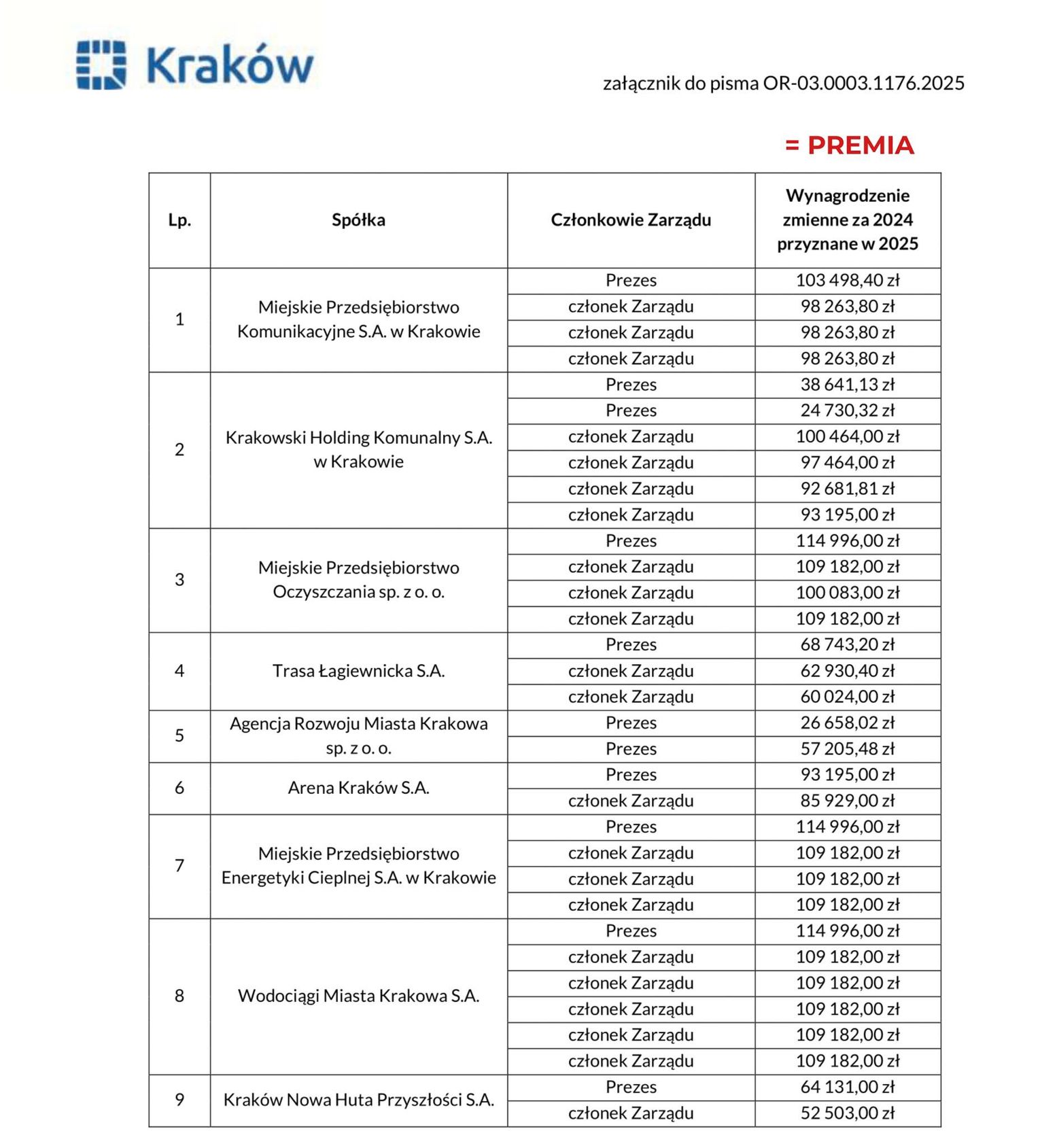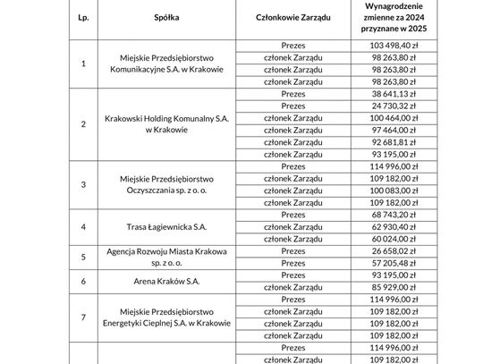 Zestawienie łącznej sumy wydanej na premie w 2025 roku pokazuje, że pojedyncze przypadki MPK czy MPO to jedynie fragment większej całości, która kosztowała podatników łącznie 2 953 676,16 zł. „Powyższe kwoty to tylko wierzchołek góry lodowej. Z odpowiedzi na moją interpelację wynika, że na premie dla zarządów miejskich spółek w 2025 roku wydano łącznie blisko 3 miliony złotych. Z naszych podatków” – alarmuje Gibała. Radny sugeruje, że pieniądze te powinny zostać przeznaczone na realne potrzeby infrastrukturalne, takie jak naprawa zniszczonych nawierzchni dróg, zamiast na gratyfikacje dla kadry, która nie potrafi skutecznie zarządzać finansami bez obciążania mieszkańców nowymi opłatami i podwyżkami.