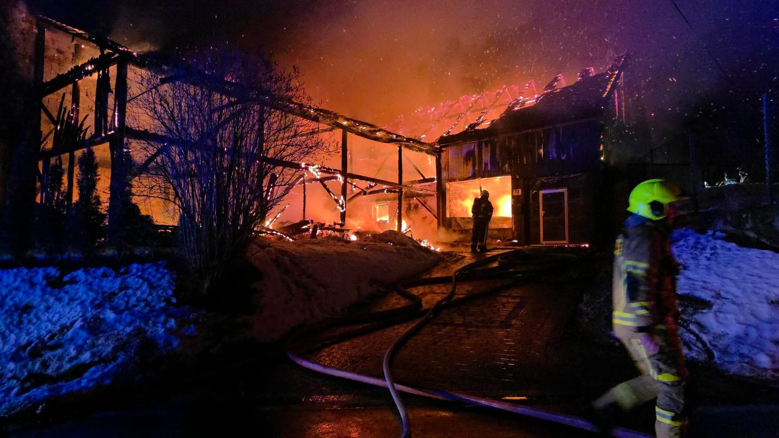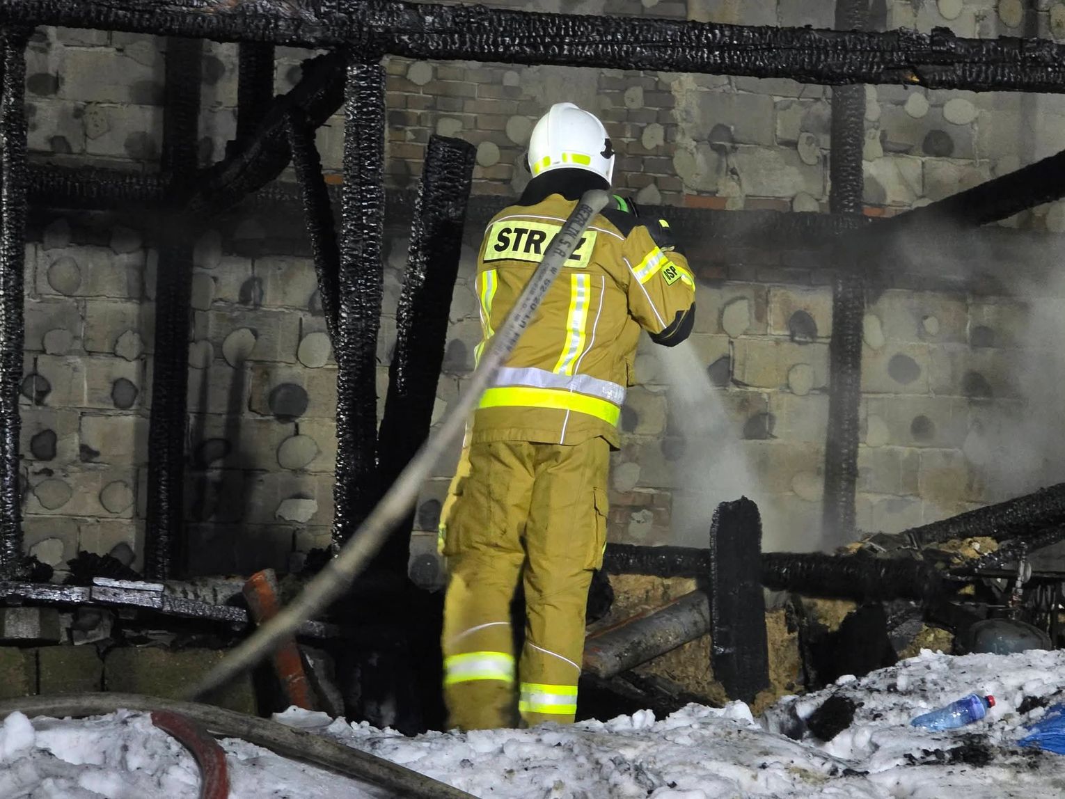 Mimo niezwykle trudnych warunków i dynamiki pożaru, strażakom udało się uratować główną część sąsiedniego budynku mieszkalnego, choć nie obyło się bez strat materialnych. Ogień zdołał nadpalić elewację domu oraz fragmenty jego konstrukcji zewnętrznej, zanim udało się go całkowicie odizolować od płonącego budynku gospodarczego. Budynek gospodarczy, od którego zaczął się pożar, uległ całkowitemu spaleniu, pozostawiając jedynie zgliszcza wymagające wielogodzinnego dogaszania.