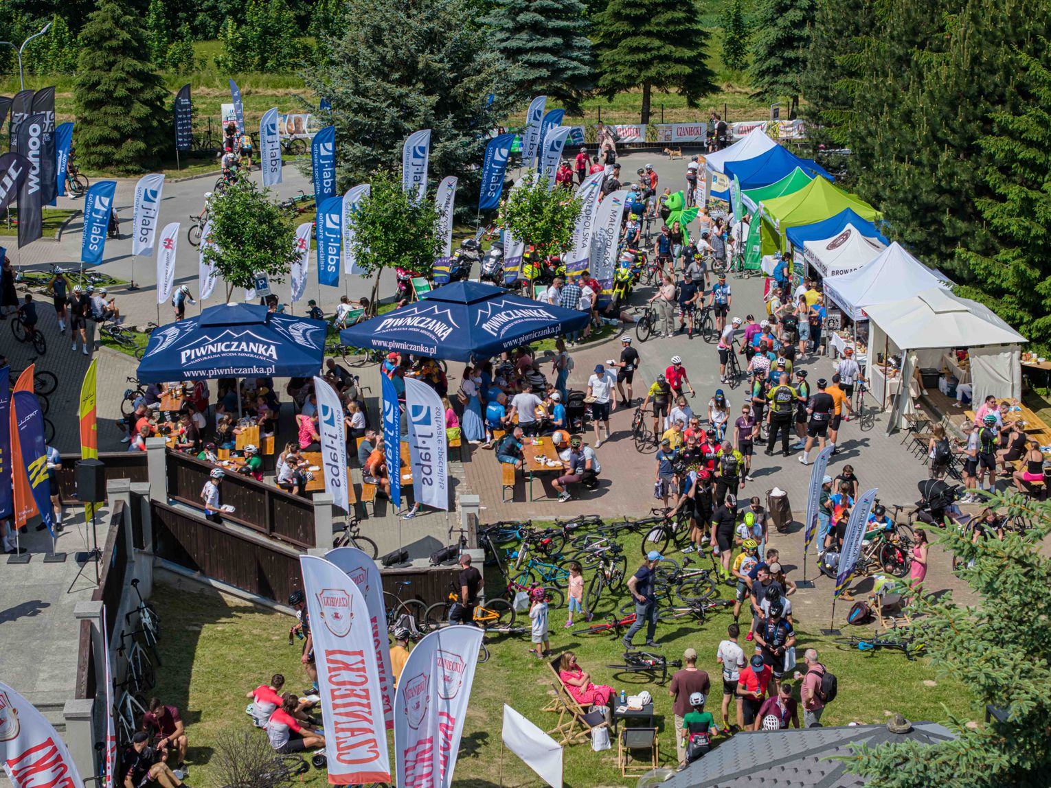 • Miasteczko wyścigu pełne rowerowych i regionalnych stoisk