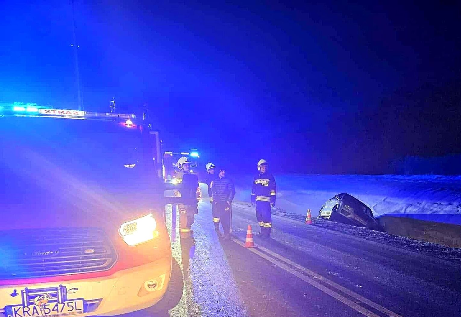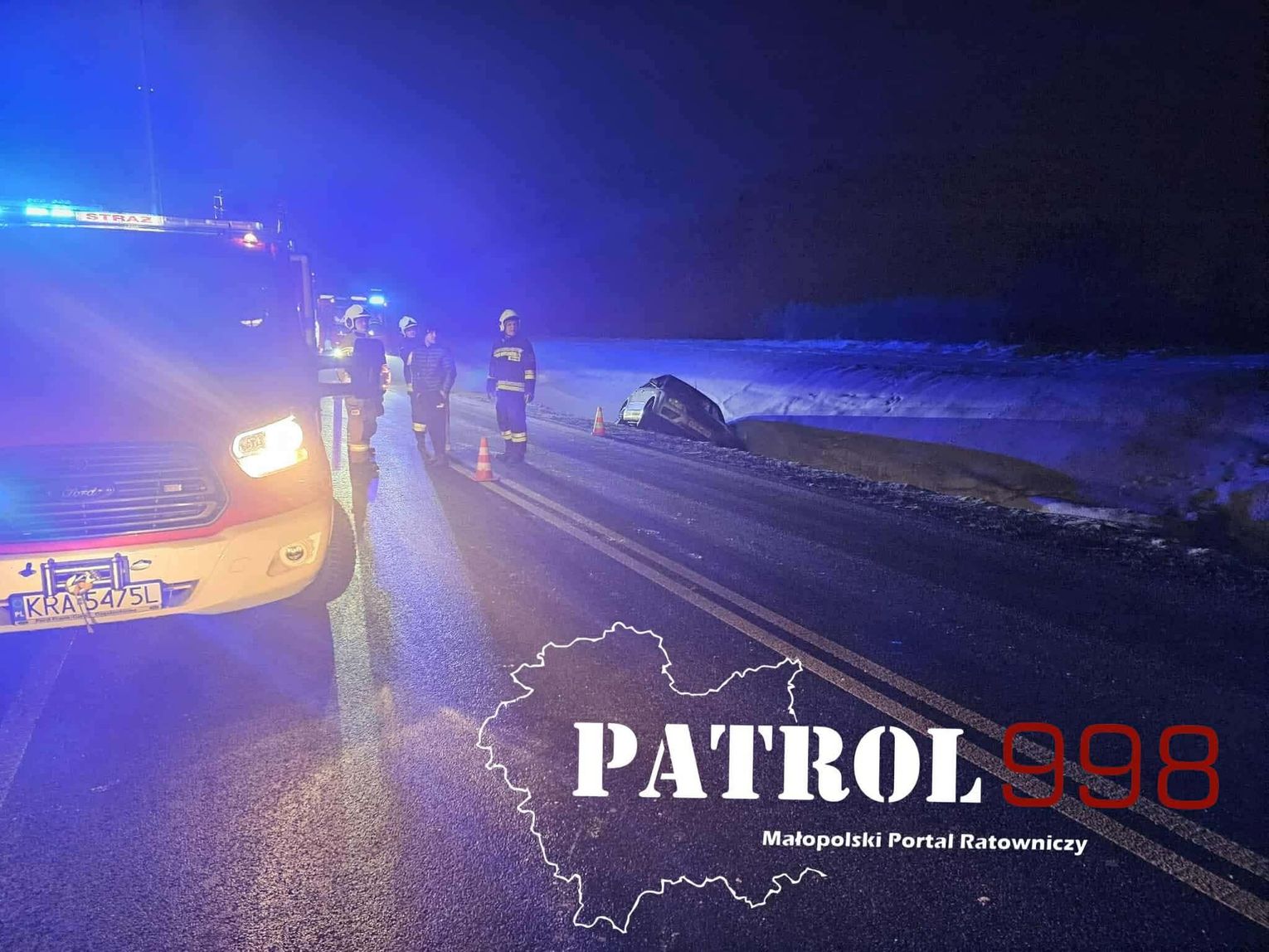 Drugie zdarzenie miało miejsce na obwodnicy Skały. Kierowca samochodu osobowego z nieznanych przyczyn stracił panowanie nad pojazdem, który wypadł z drogi i wylądował w rowie. Aktualnie droga jest całkowicie zablokowana, a na miejscu działają służby ratunkowe: zastępy straży pożarnej, Zespół Ratownictwa Medycznego oraz funkcjonariusze policji, którzy ustalają okoliczności i przyczyny wypadku.